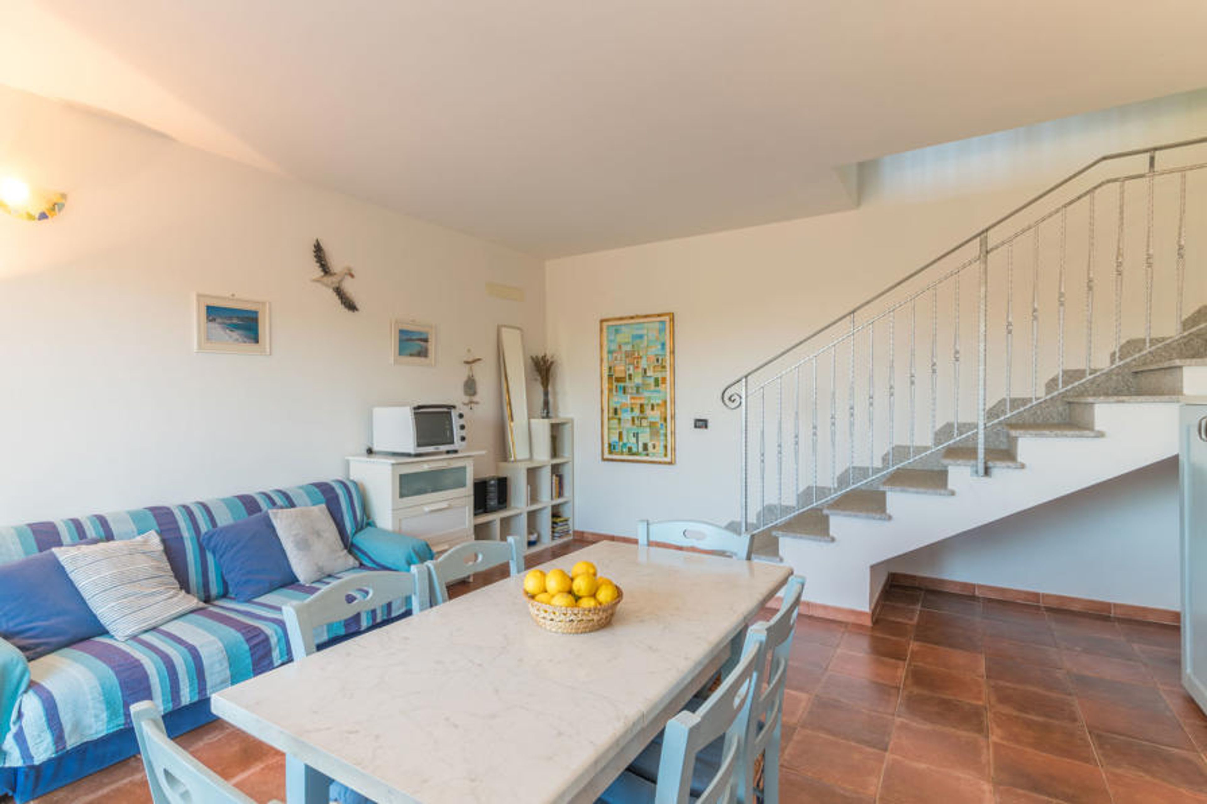 "Capo Testa", 3-room terraced house 83 m2. Comfortable and cosy furnishings: living/dining room with TV. Exit to the terrace. Kitchenette (mini-oven, 4 gas rings, microwave). Shower/bidet/WC. Upper floor: 1 room with 2 beds. Exit to the balcony. 1 double bedroom. Exit to the balcony. Shower/bidet/WC. No heating option. Balcony, terrace partly roofed. Terrace furniture, barbecue (portable). Partial view of the sea and the garden. Facilities: washing machine, iron, children's high chair, baby cot (extra), hair dryer. Parking (1 car). Please note: non-smoking house, parking space for small car only. When there are less than the maximum number of guests staying at the property, not all of the bedrooms will be available for use. IT090063C2000P6312