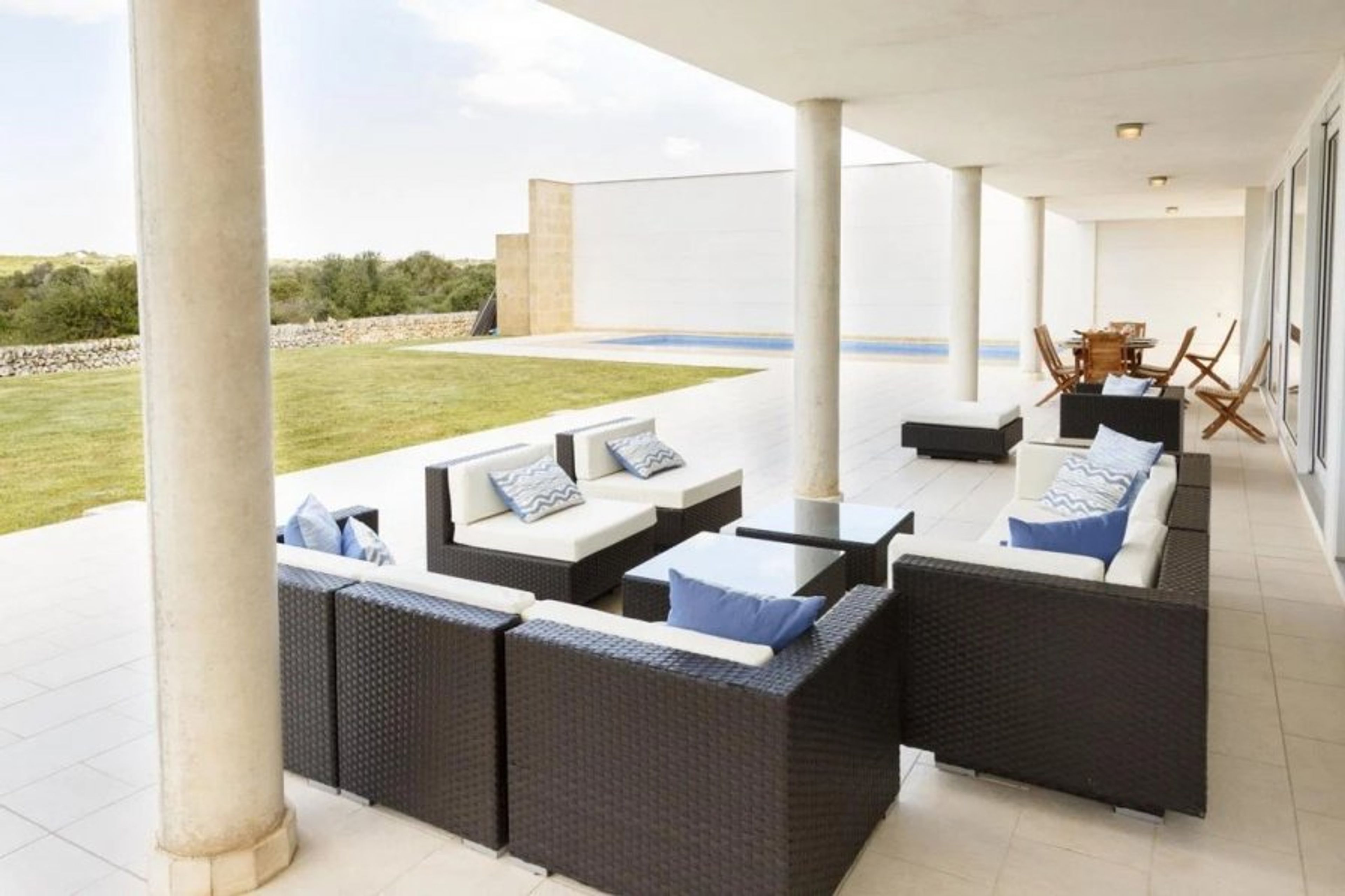 The villa is located in a private access area which gives it particular privacy. Situated in Binibeca, a small fishing village located about 8 kilometres south of Mahon in municipality of San Luis. The fishing village of Binibeca was built in 1972 and, being one of the most touristic places on the island, is completely restored. Its narrow streets and whitewashed houses (which look like a postcard) form a labyrinth in which you will want to lose yourself for a long time. The nearest beach is Binibeca beach, less than 2km away, natural with fine white sand surrounded by a pine forest. In addition to this beach, in the vicinity there are several coves: Biniancolla, Binisafuller, Biniparratx and Binidalí.