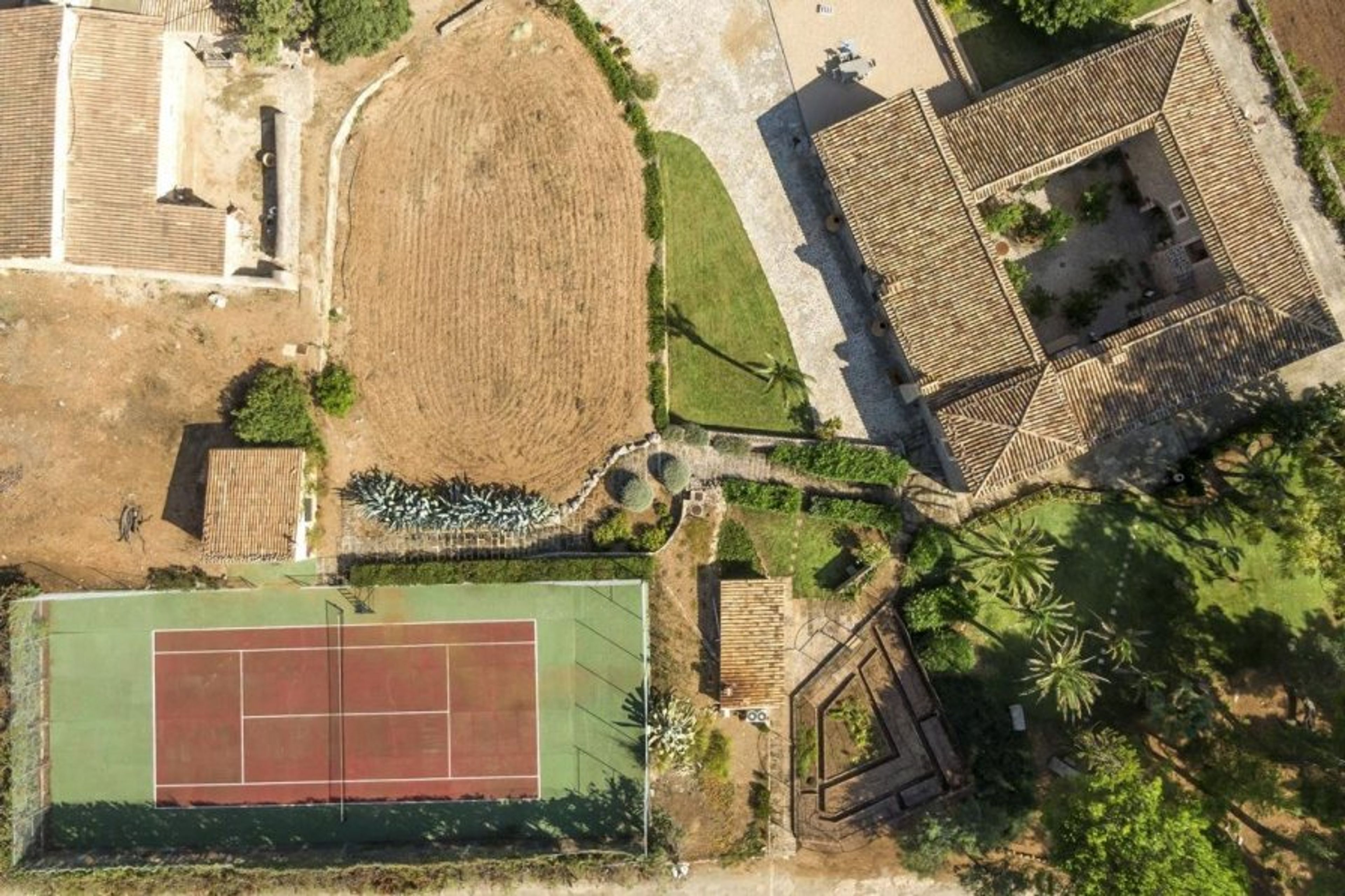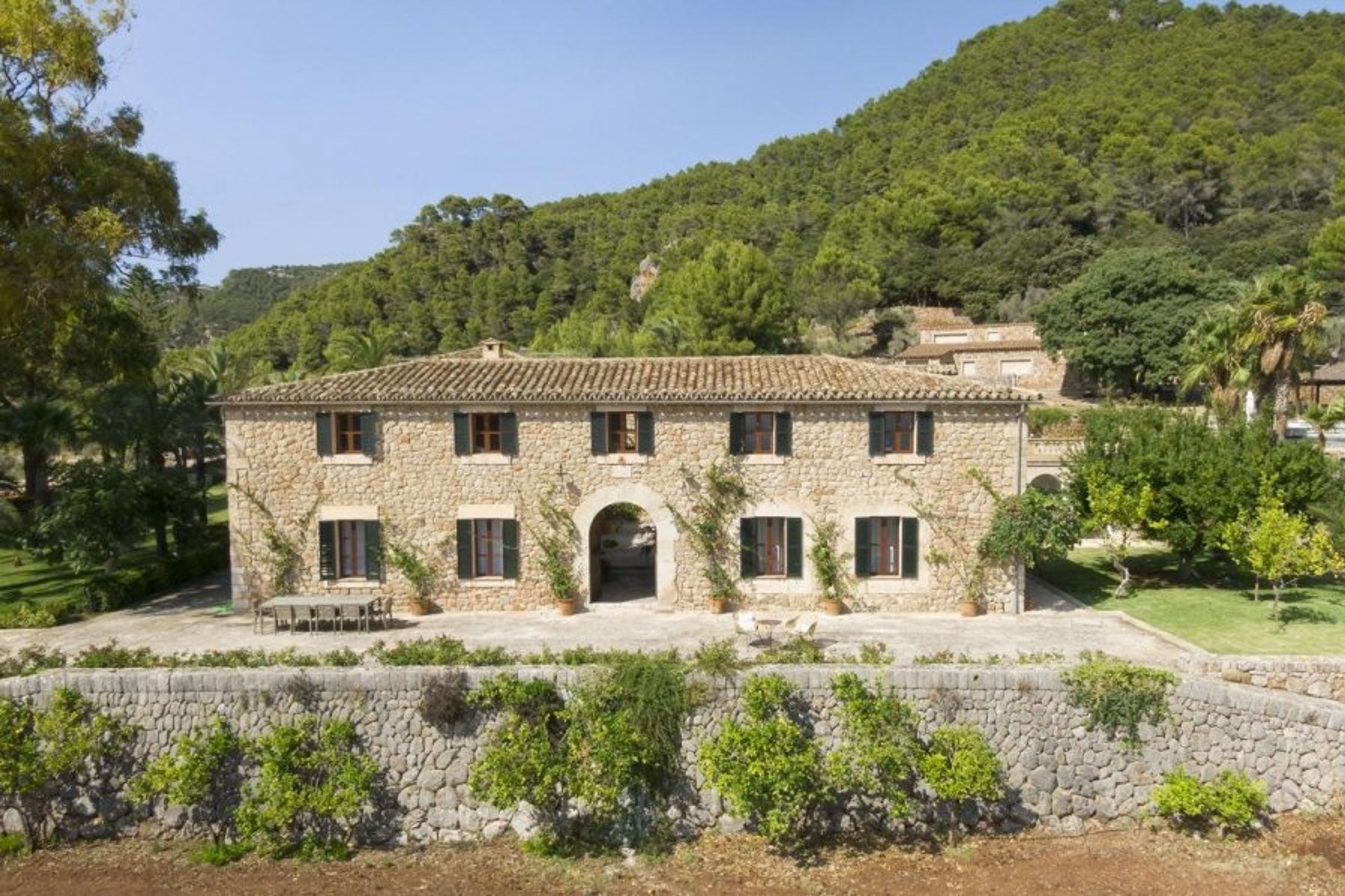 The property is on a sizable estate that can be reached from the neighboring town of Valldemossa through a long, private road.