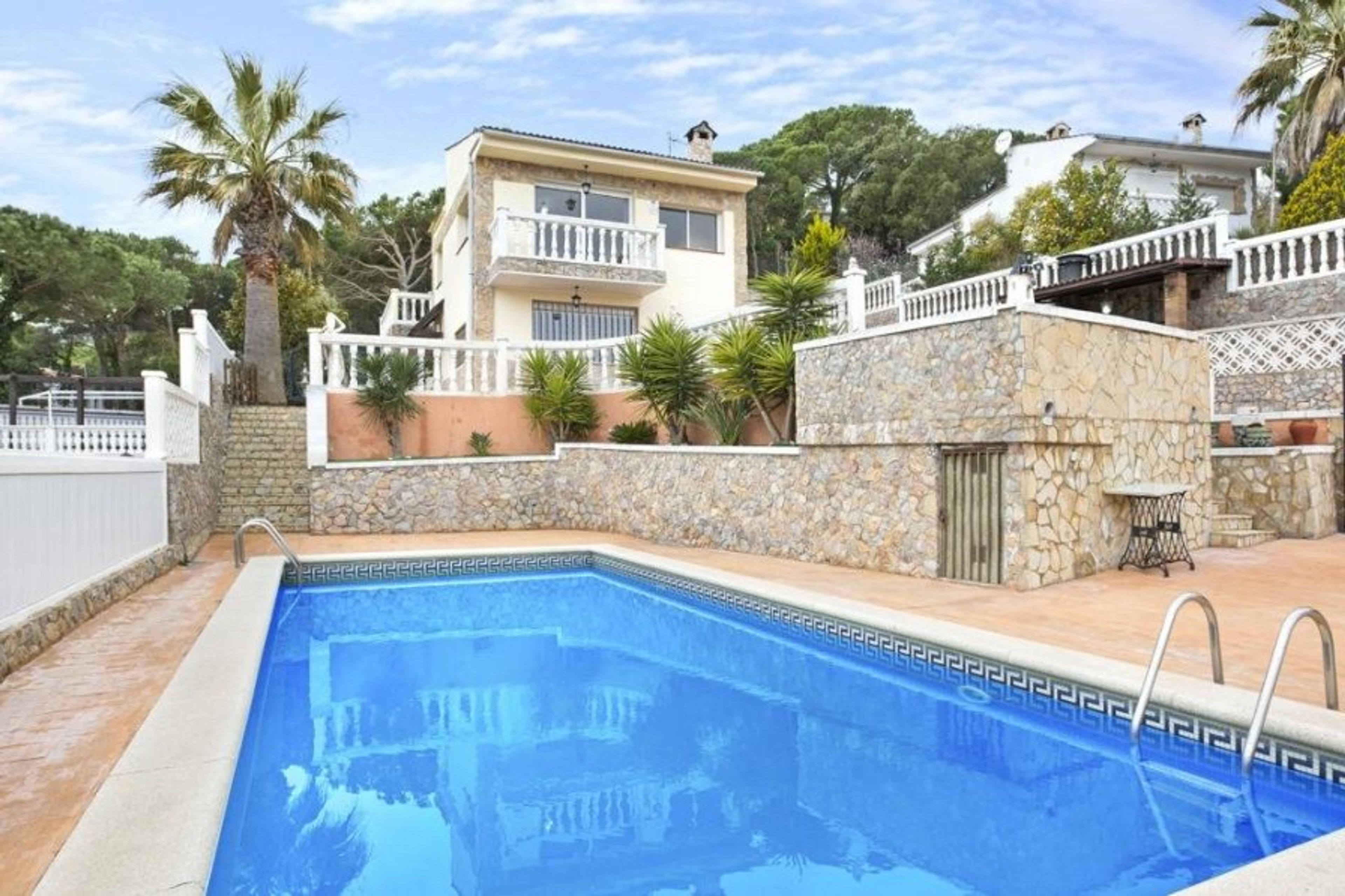 The villa is a traditional house of 170 m2 + 800 m2 of land, located in a quiet residential area of Lloret de Mar (Serra Brava), just 3.5 km from the beach. The house is spread over two floors. There are six bedrooms and two bathrooms, and it can accommodate up to 13 people