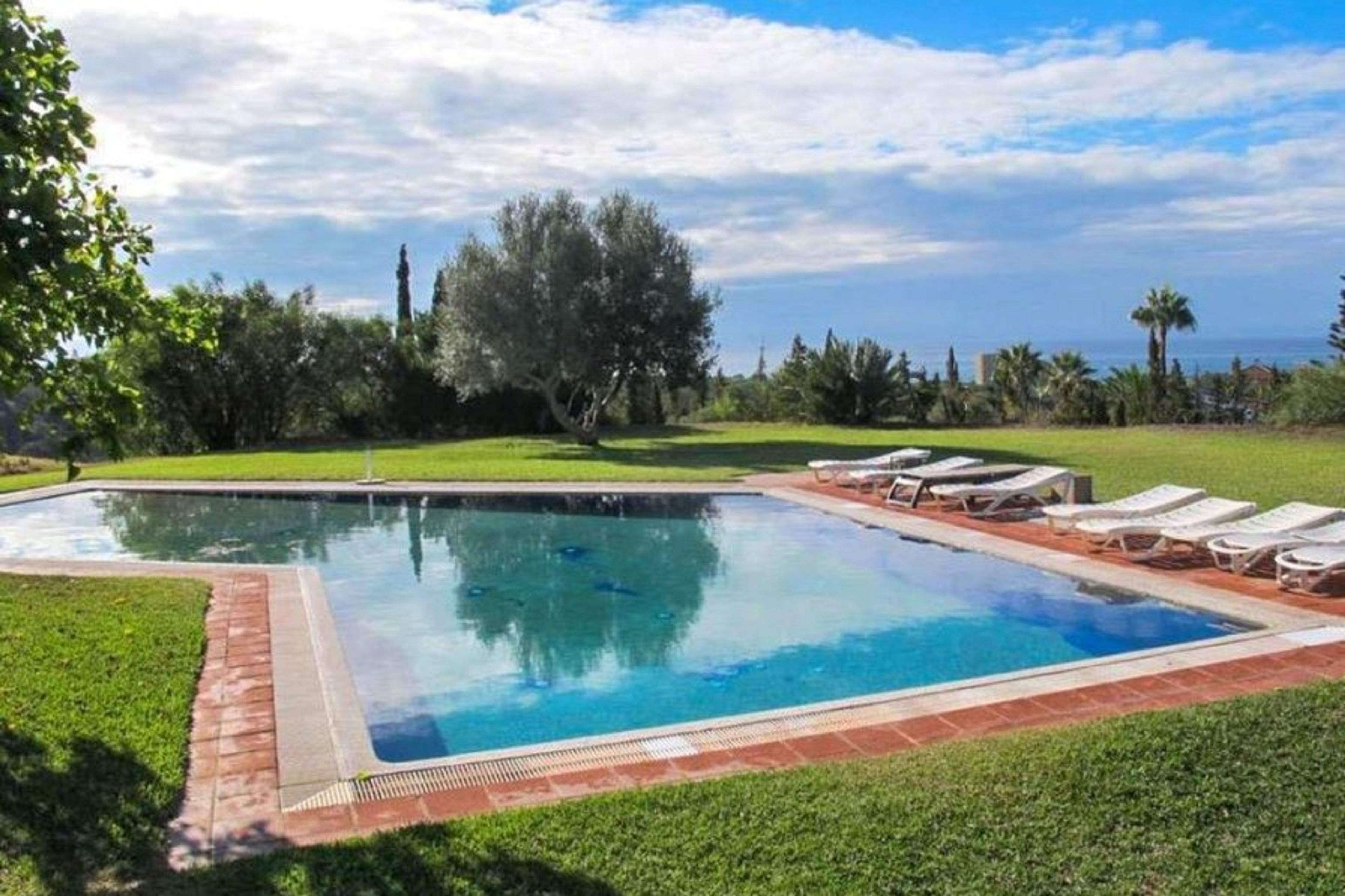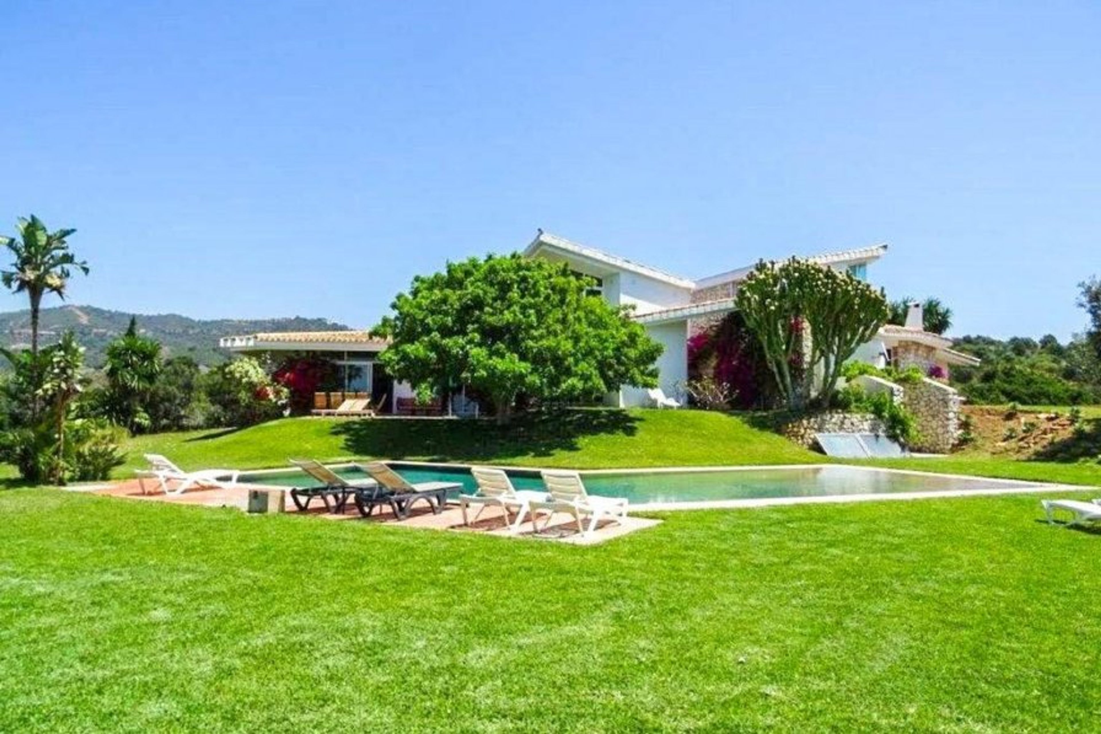 The private pool is a stunning deep blue that slopes gently at one side - swim peacefully and enjoy the calm atmosphere. Sunbeds are placed along one side, ideal for soaking up the Spanish sunshine. The lush garden is filled with lemon trees, olive groves, colourful flowers and cacti.