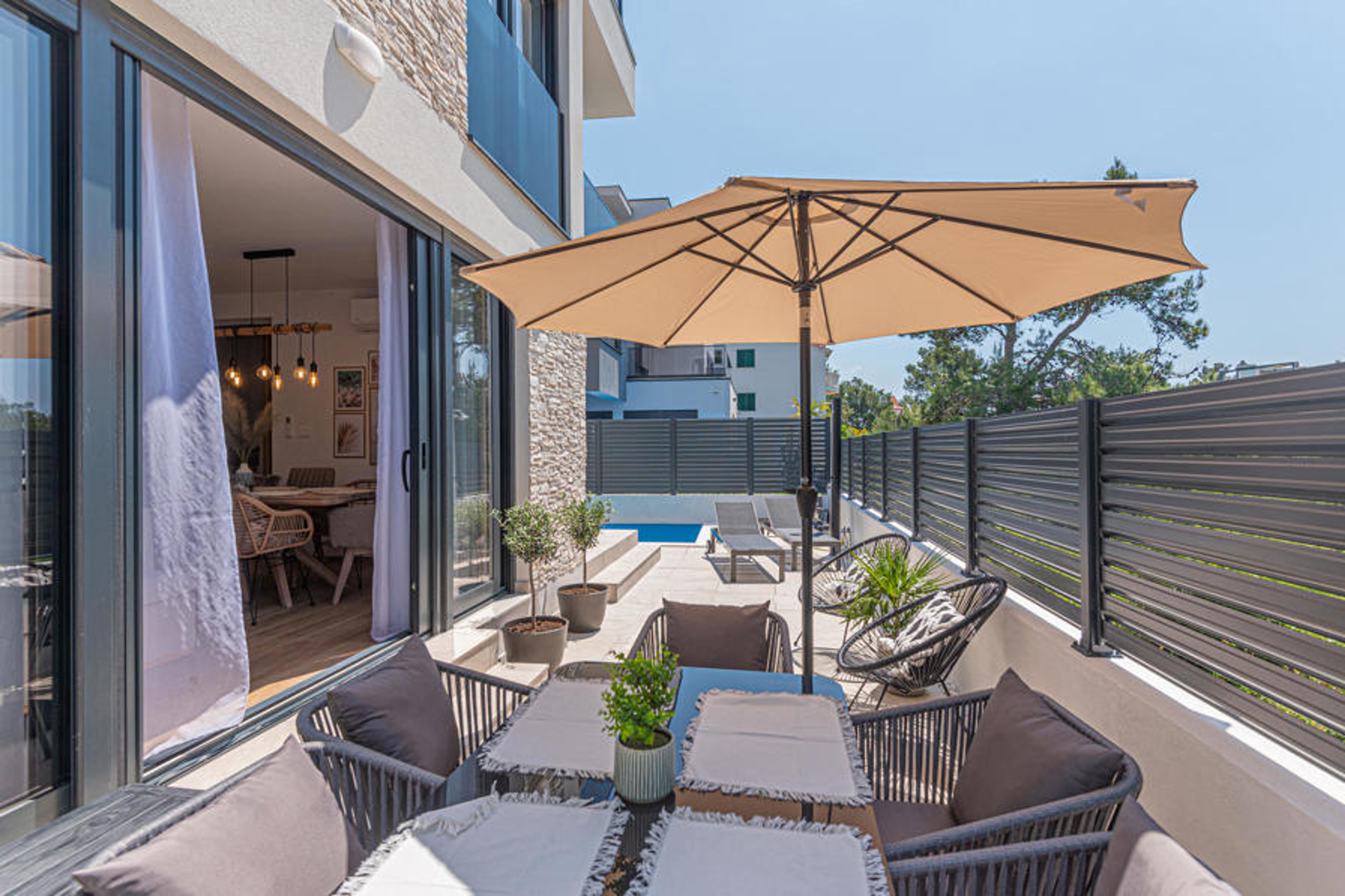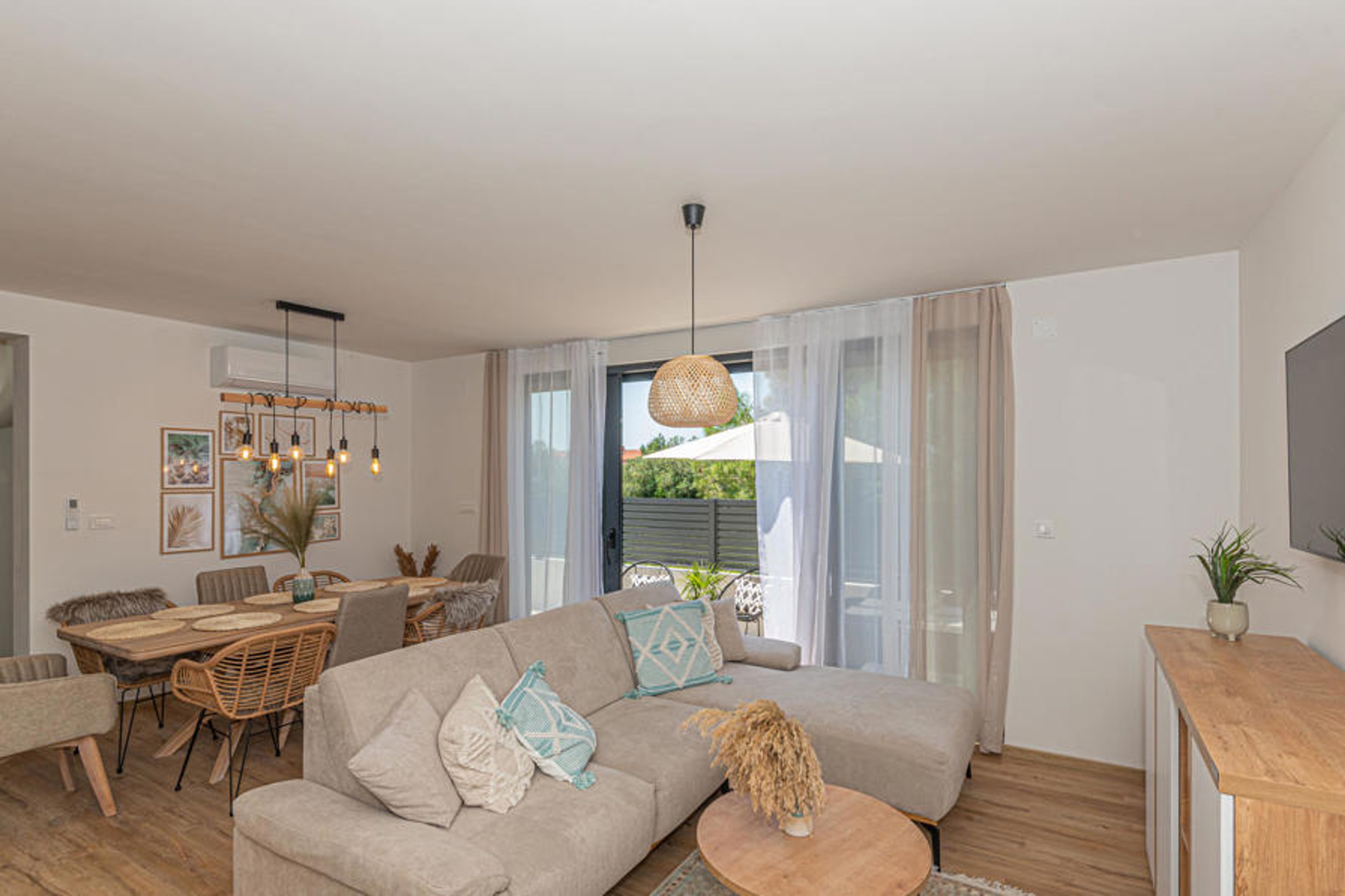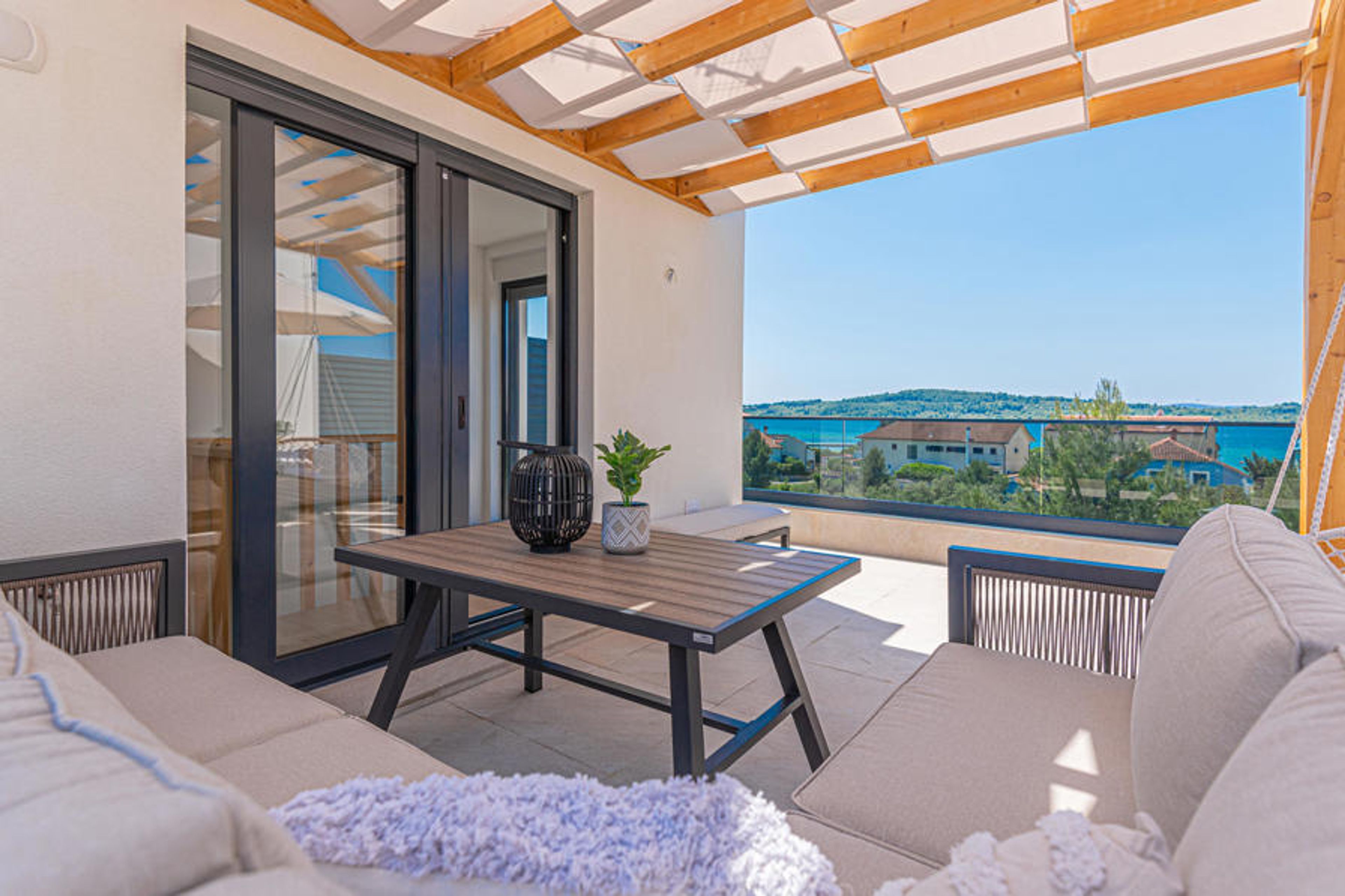 The sandy beach is just a few steps away from this house. Visit the Krka National Park with its seven waterfalls and the island of Visovac and the town of ibenik with its numerous historic fortresses.