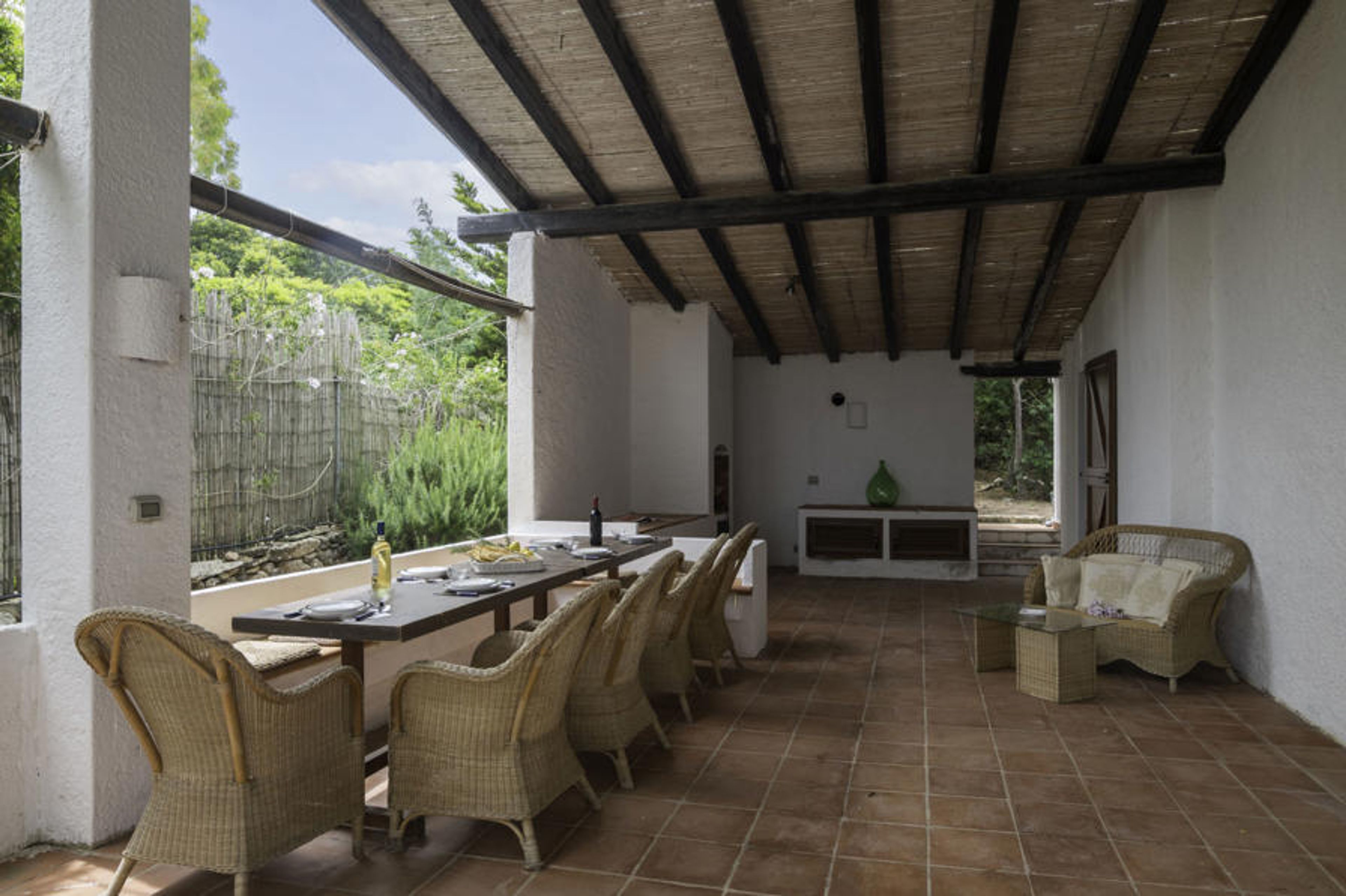 "Bolina", 4-room house 120 m2. Simple and cosy furnishings: living/dining room with 1 sofabed and open-hearth fireplace (only for decoration), TV and fan. Exit to the terrace. 1 room with 1 x 2 bunk beds, fan. 1 room with 2 beds and fan. 1 double bedroom with shower/WC. Exit to the veranda. Open kitchen (oven, 4 gas rings, toaster, kettle, microwave). Exit to the terrace. Shower/bidet/WC. No heating option. Balcony, large terrace 80 m2, roofed, garden. Terrace furniture, barbecue. Partial view of the sea and the garden. Facilities: washing machine, iron, children's high chair, baby cot (extra), hair dryer. Internet (WiFi, free). Please note: one double bedroom is outside the apartment. Maximum 1 pet/ dog allowed. TV only IT. When there are less than the maximum number of guests staying at the property, not all of the bedrooms will be available for use. IT090063C2000S9528
