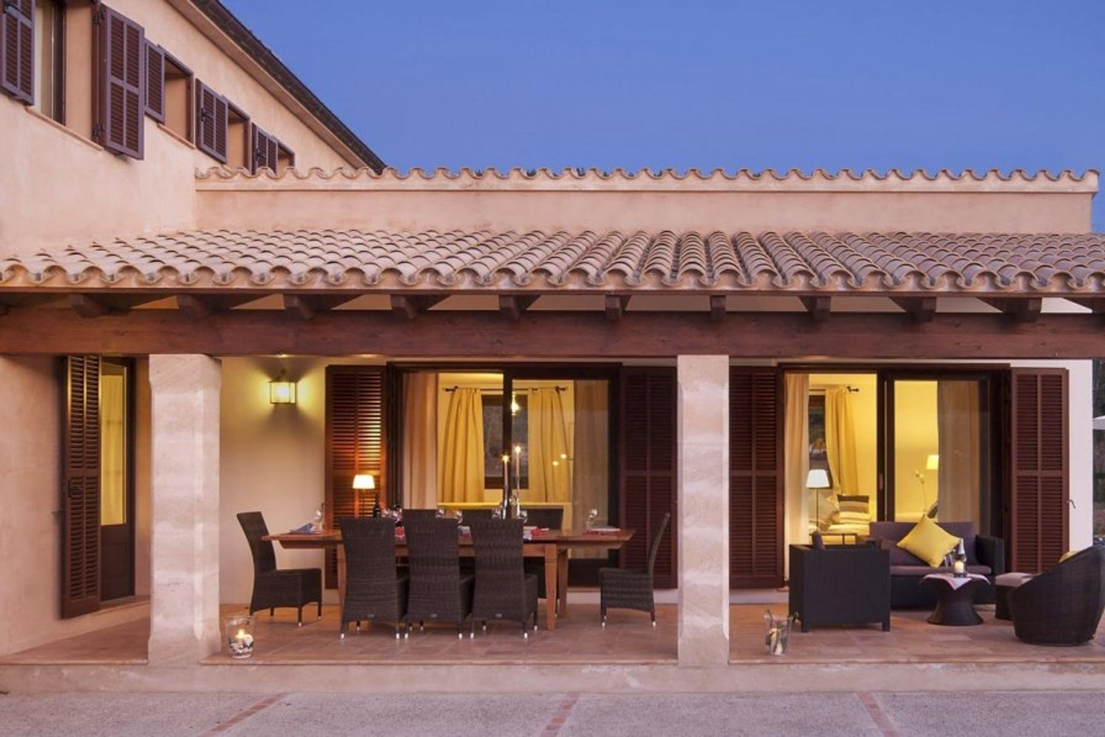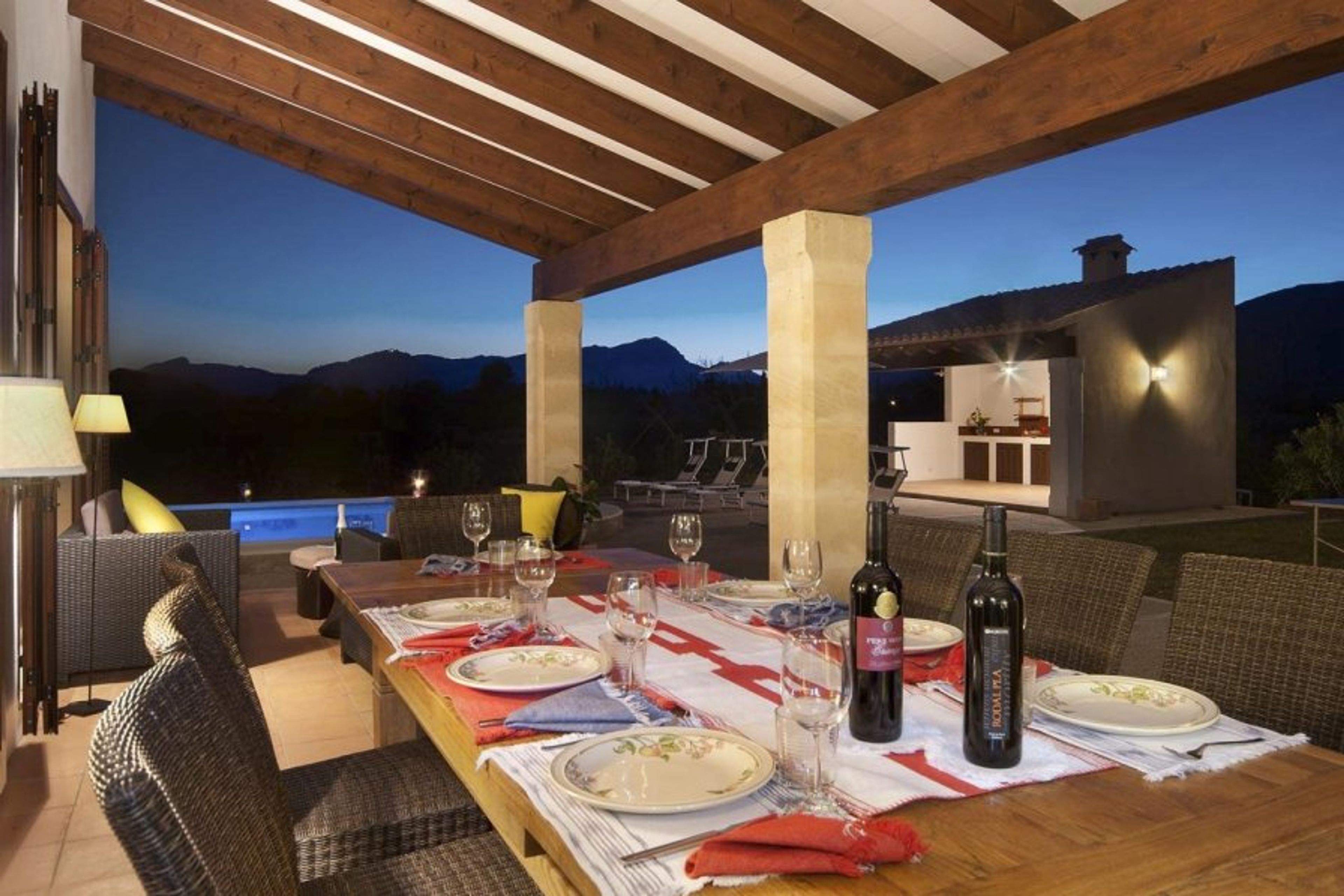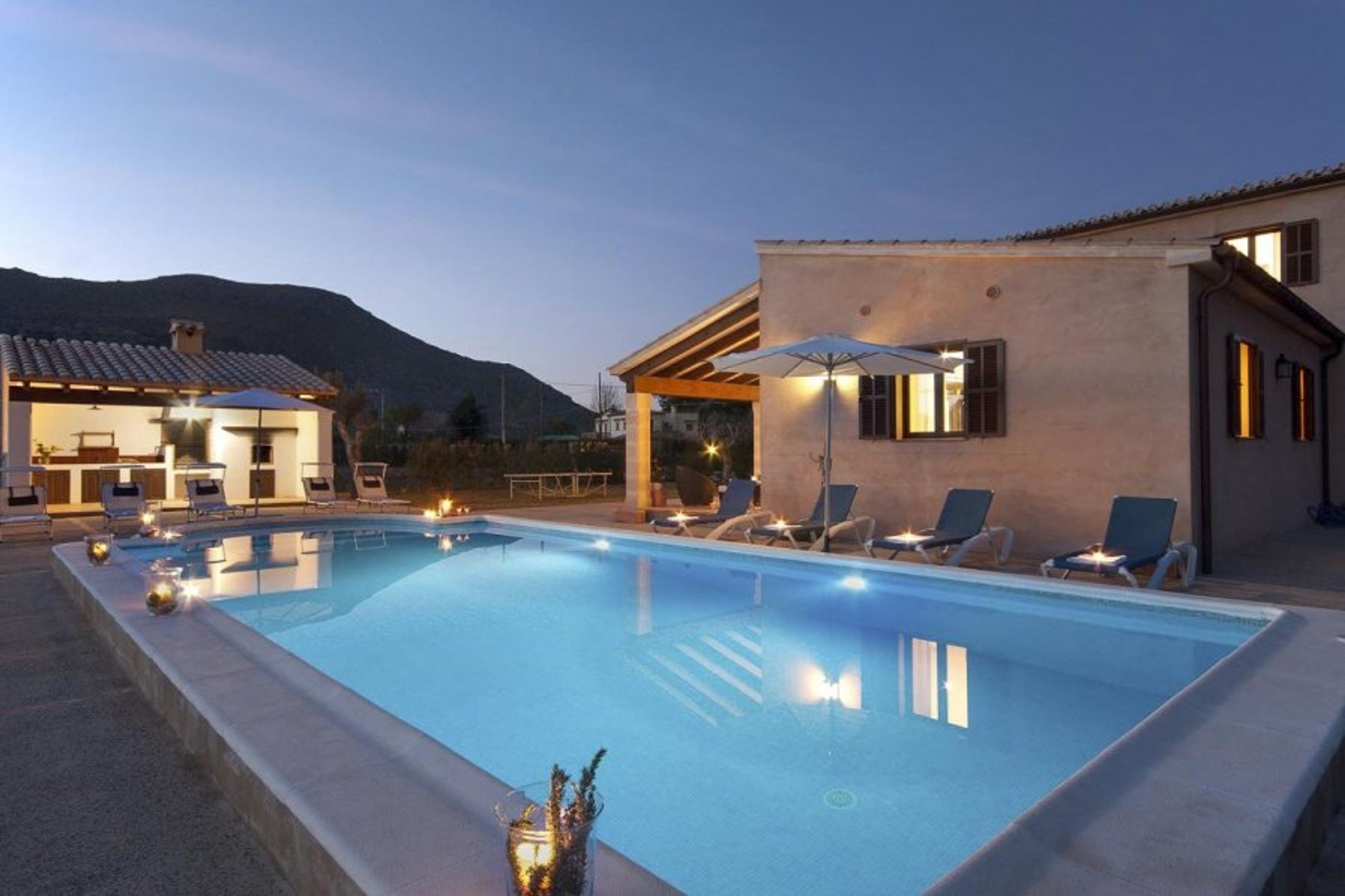 The large garden of this gorgeous villa comprises a fabulous pool, outdoor barbeque and even table tennis. In the foothills of the Serra de Tramuntana, a UNESCO World Heritage Site, the landscape in which this property lies is utterly picturesque and provides for simply stunning sunsets every night, as the sun dips below the mountains on the horizon. While away the evening and enjoy these famous sunsets with a meal on the large terrace overlooking the private pool and lawn.
