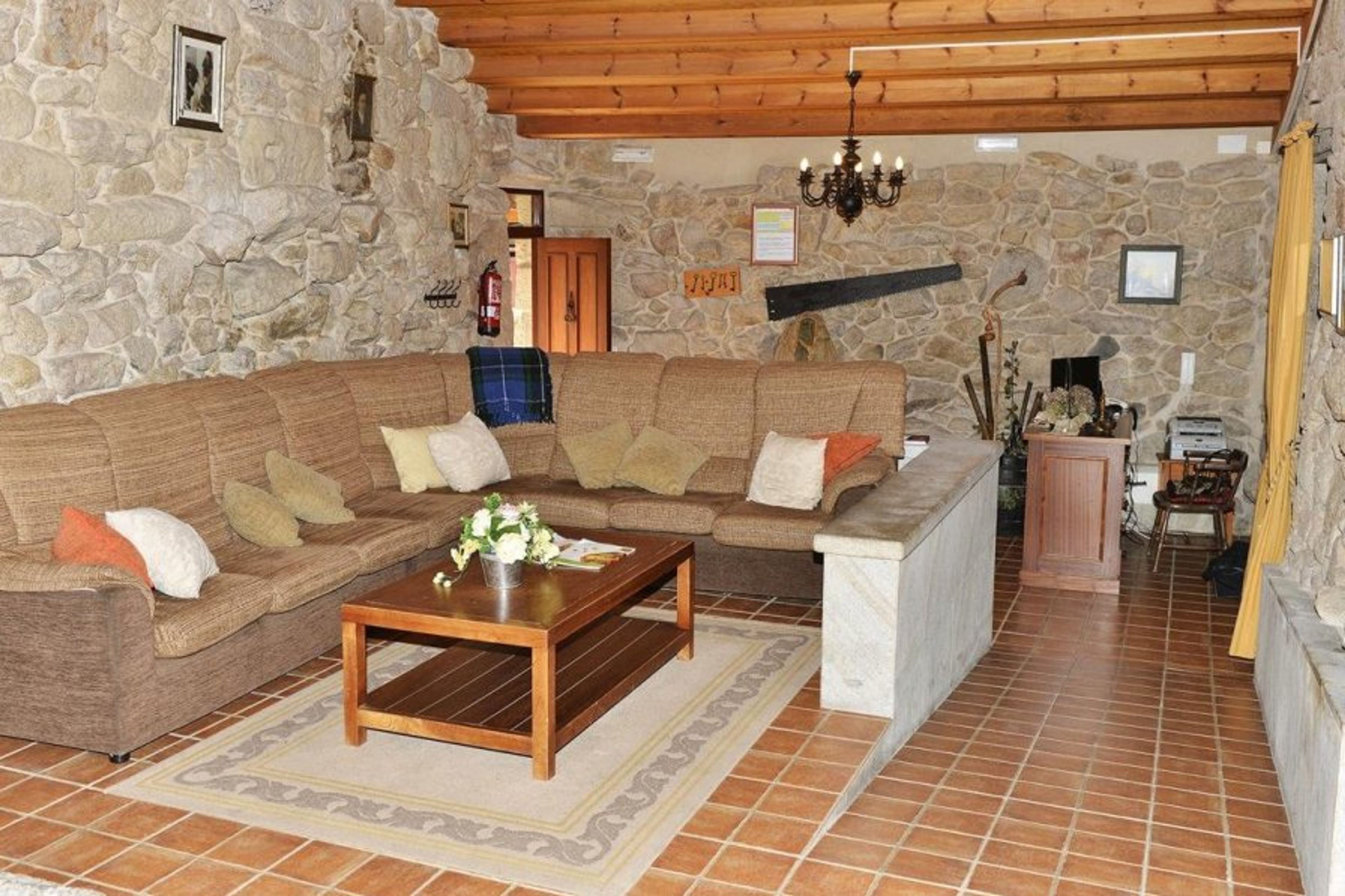 Inside, the owners have decorated the space tastefully with historical pieces inherited from previous generations of the family. The result is a rustic-chic aesthetic, with beautiful exposed stone walls, lots of wooden furniture and superb attention to detail. In the living room, there is a cosy brown corner sofa and an old-fashioned fireplace.