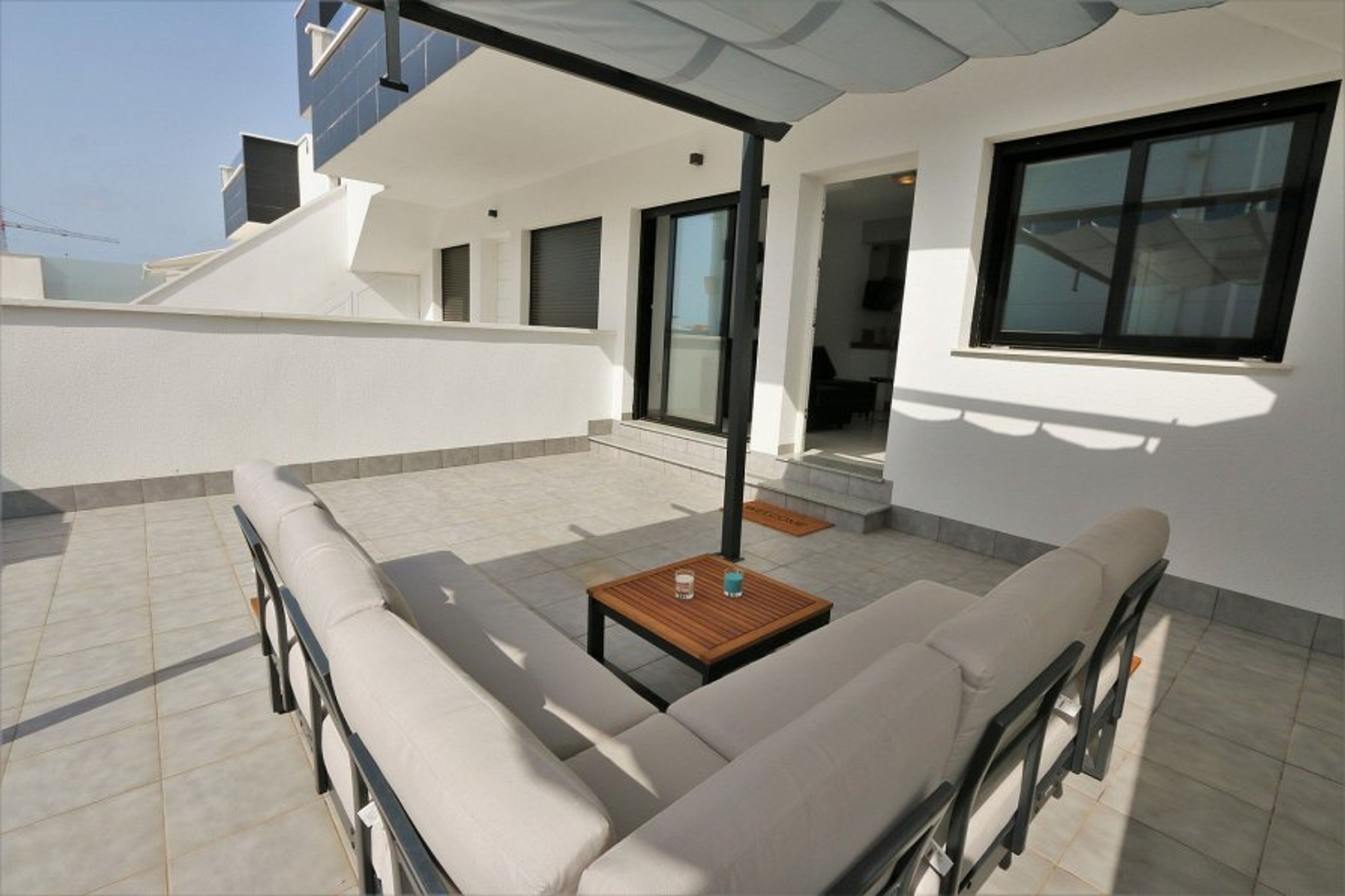 The apartment is situated in a quiet residential area of San Pedro del Pinatar (Lo Pagan) on the ground floor. A large front terrace and also a sheltered rear terrace with access to the communal pool.
