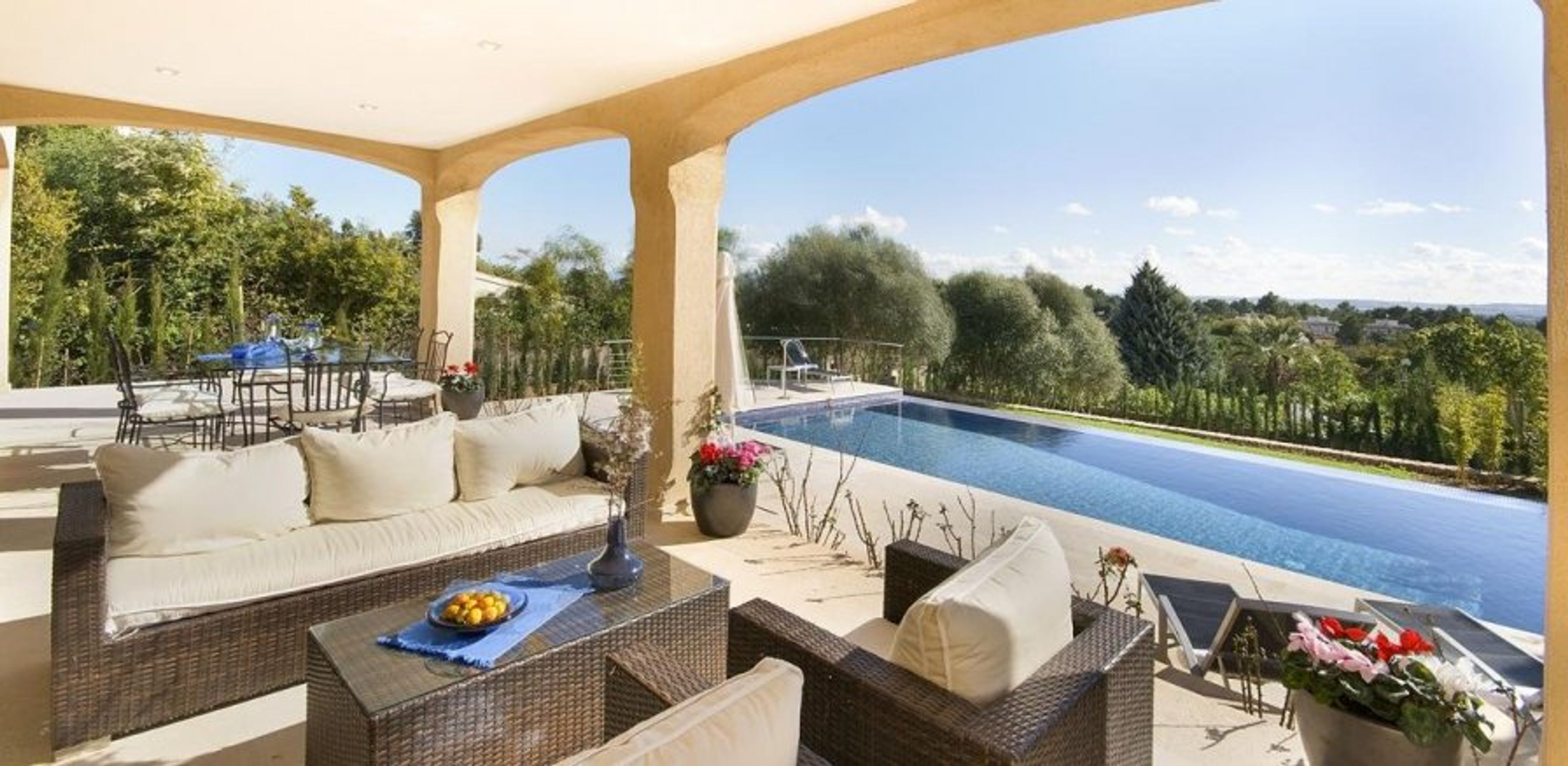 Stepping into the garden you'll feel totally enveloped in nature, including a few orange and lemon trees. From another fabulous glass dining table and cosy seating area on the terrace, to the vast lawn and the many sun loungers around the pool, there is something to satisfy every appetite in this gorgeous outdoor space.
