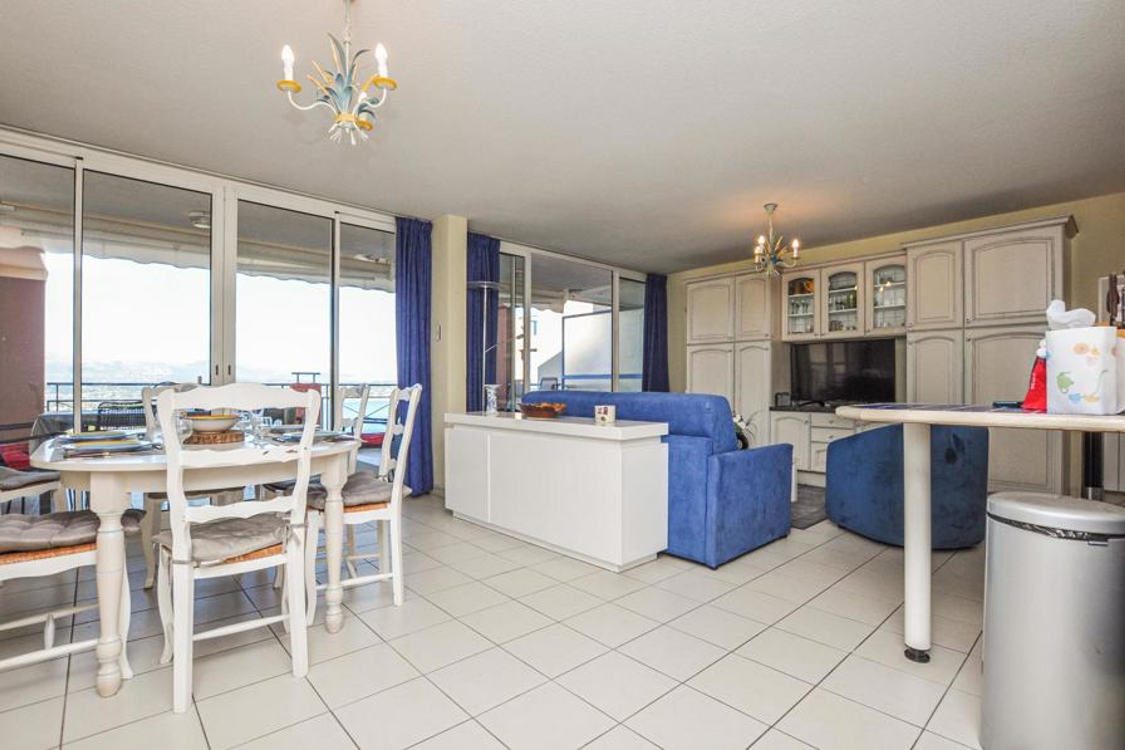 Sun, beach and sea - what more could you want? This cosy holiday apartment in an apartment complex offers you everything you need for a relaxing holiday on the Côte d'Azur. Enjoy the first rays of sunshine in the morning on your spacious terrace overlooking the sea. Have breakfast in the open air and then relax on the sun lounger before heading to the communal pool. The pool is supervised in summer so that your children can play safely.