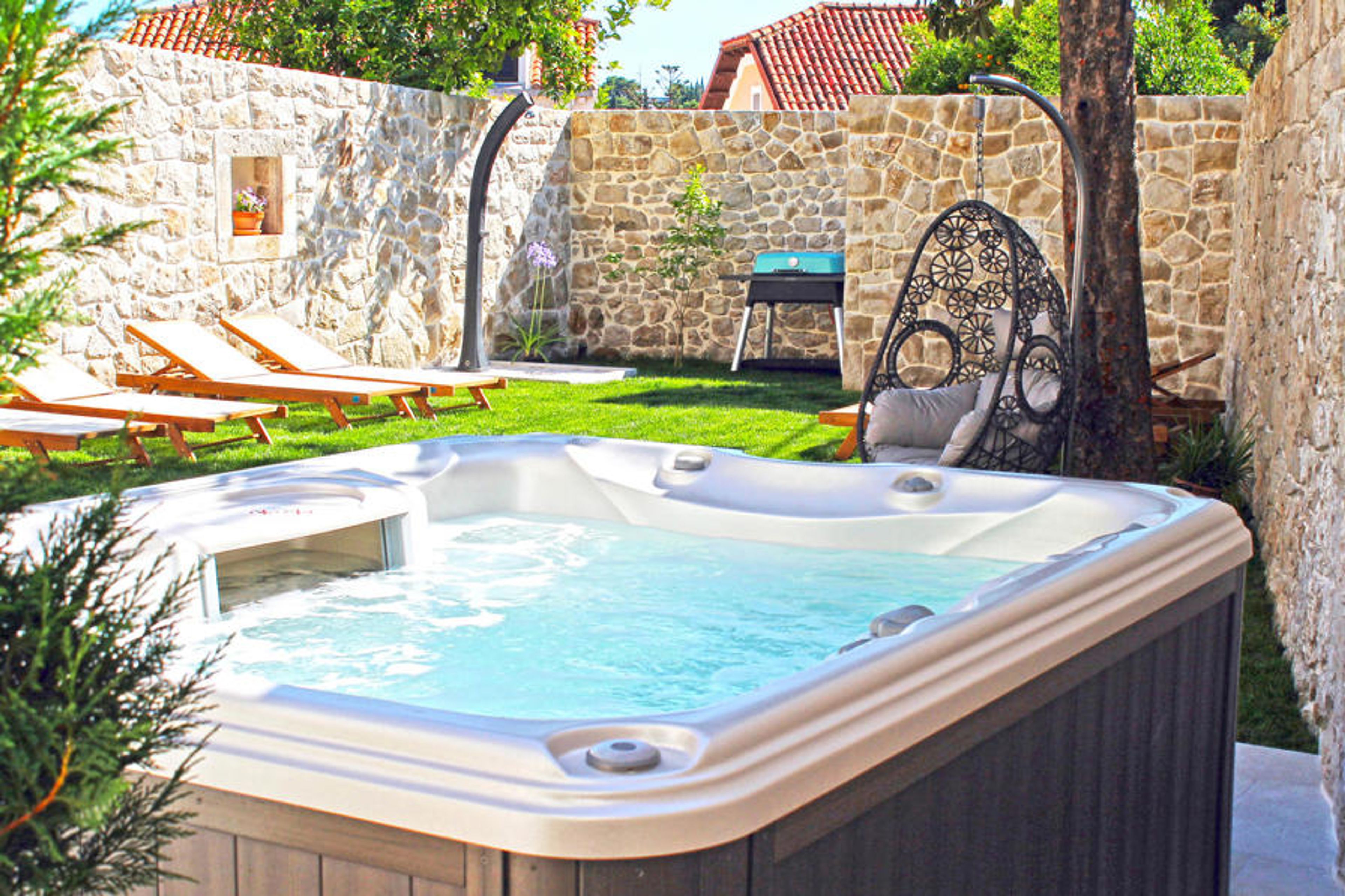 The attractive outdoor area of the house invites you to spend a lot of time outdoors. Relax in the deck chairs with your favorite reading, delight the whole family with a delicious dinner from the grill, and end the day with a dip in the outdoor hot tub.