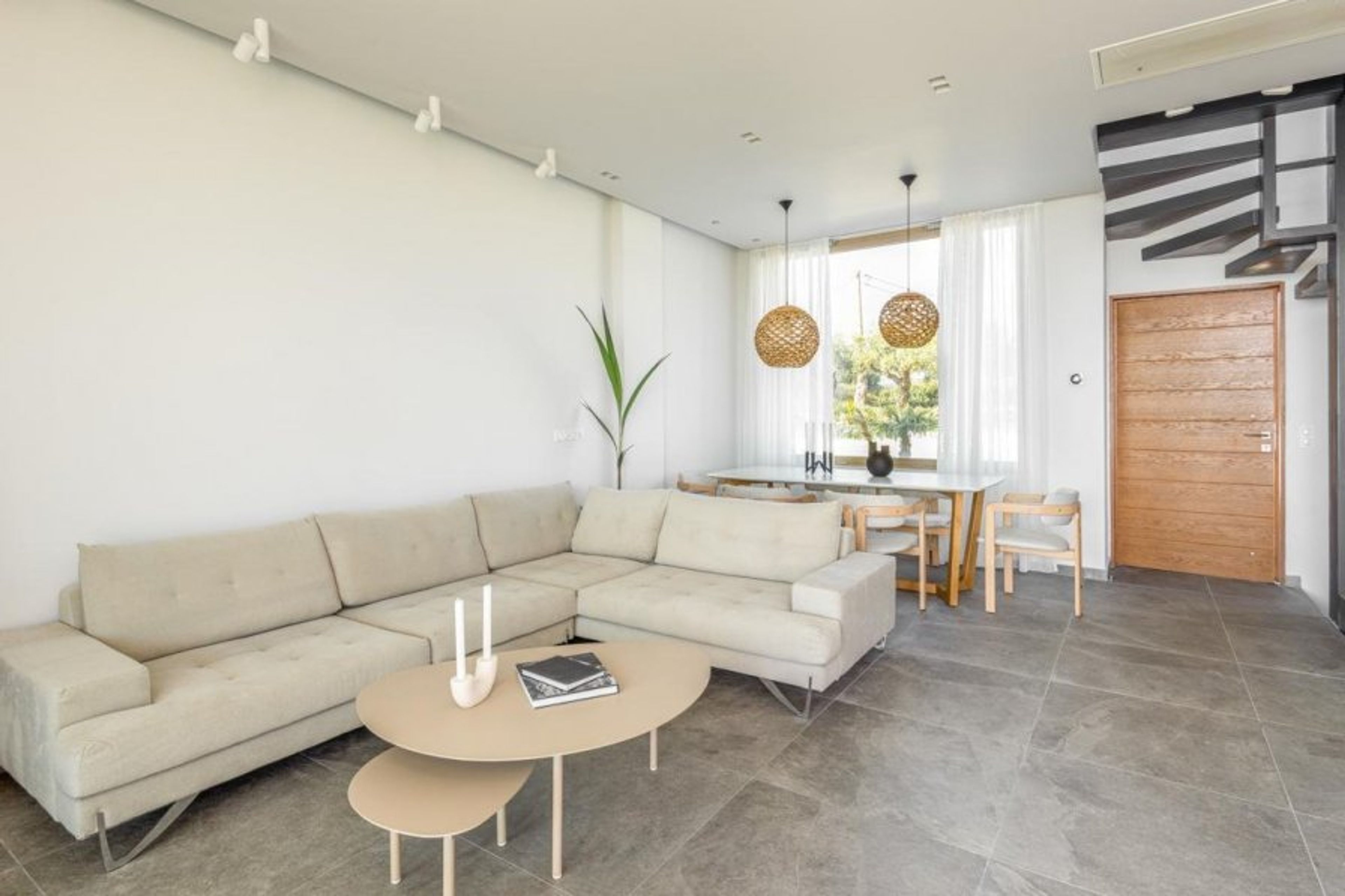 Open-concept living and dining space with access to the terrace;