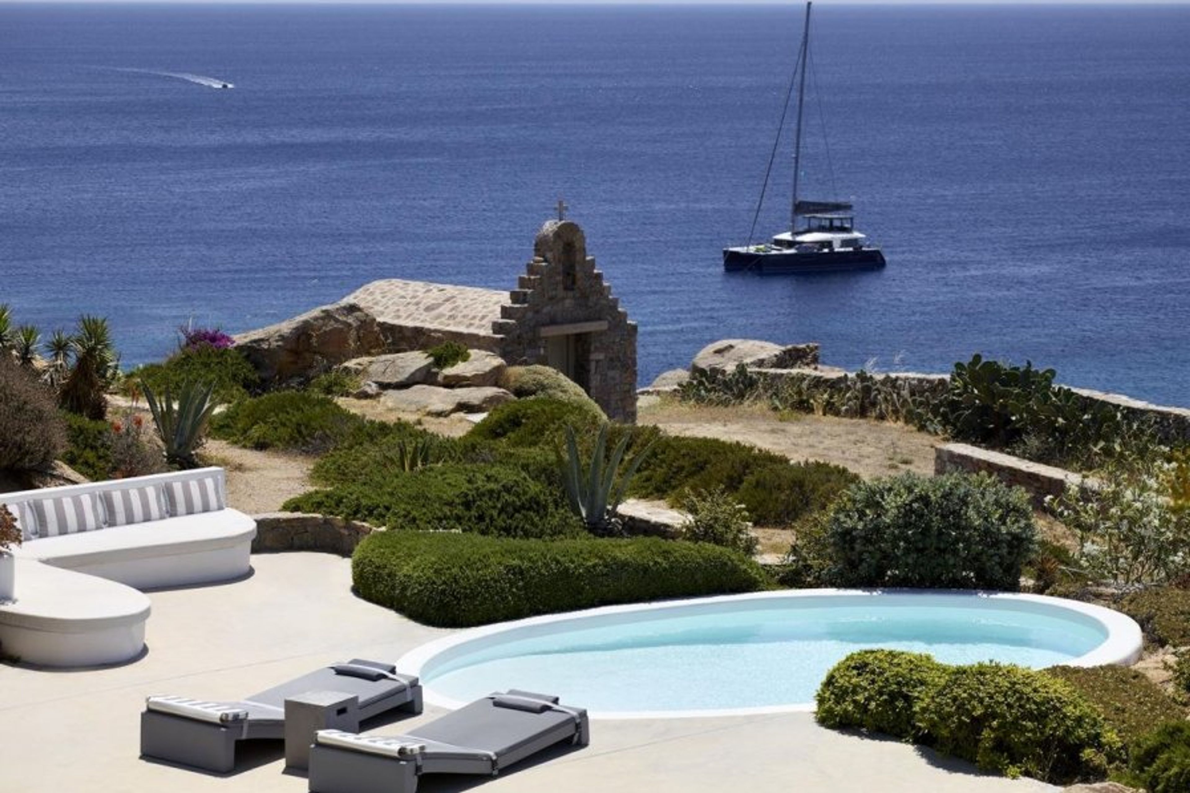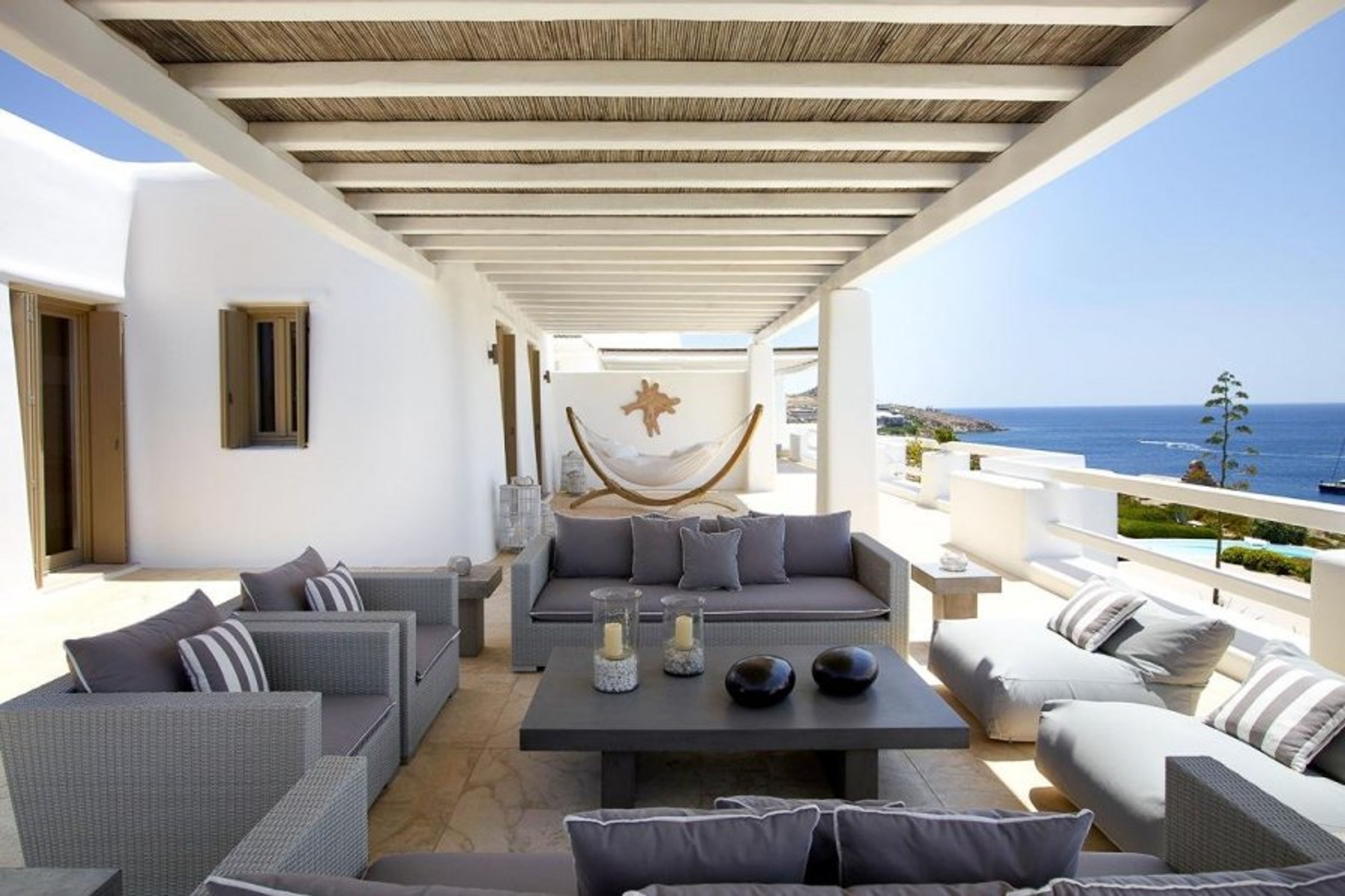 The charming, traditional Mykonian style elements flow through this stunning estate, blending perfectly with the contemporary, minimalistic features and design.