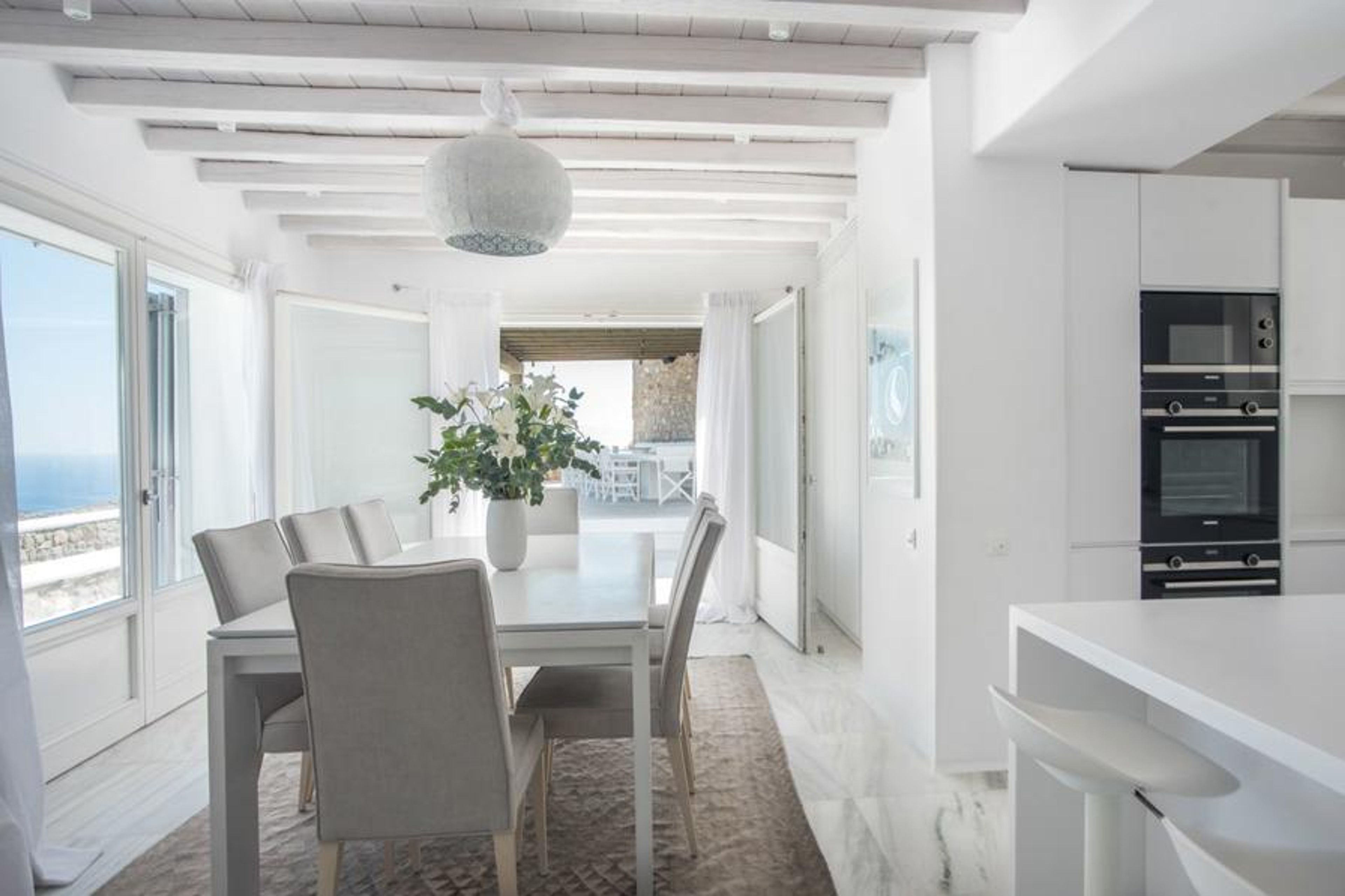 Constructed with traditional Cycladic whitewashed walls, local stones, tiled paving, and teak decking, Villa Nigul's outdoor spaces exude elegance. Indoors, the design is contemporary and classic, with attention to detail evident in the use of natural woods, wicker, hand-cut marble, and a sophisticated colour palette of whites, greys, and beiges. Floor-to-ceiling windows flood the villa with natural light and offer stunning sea views.