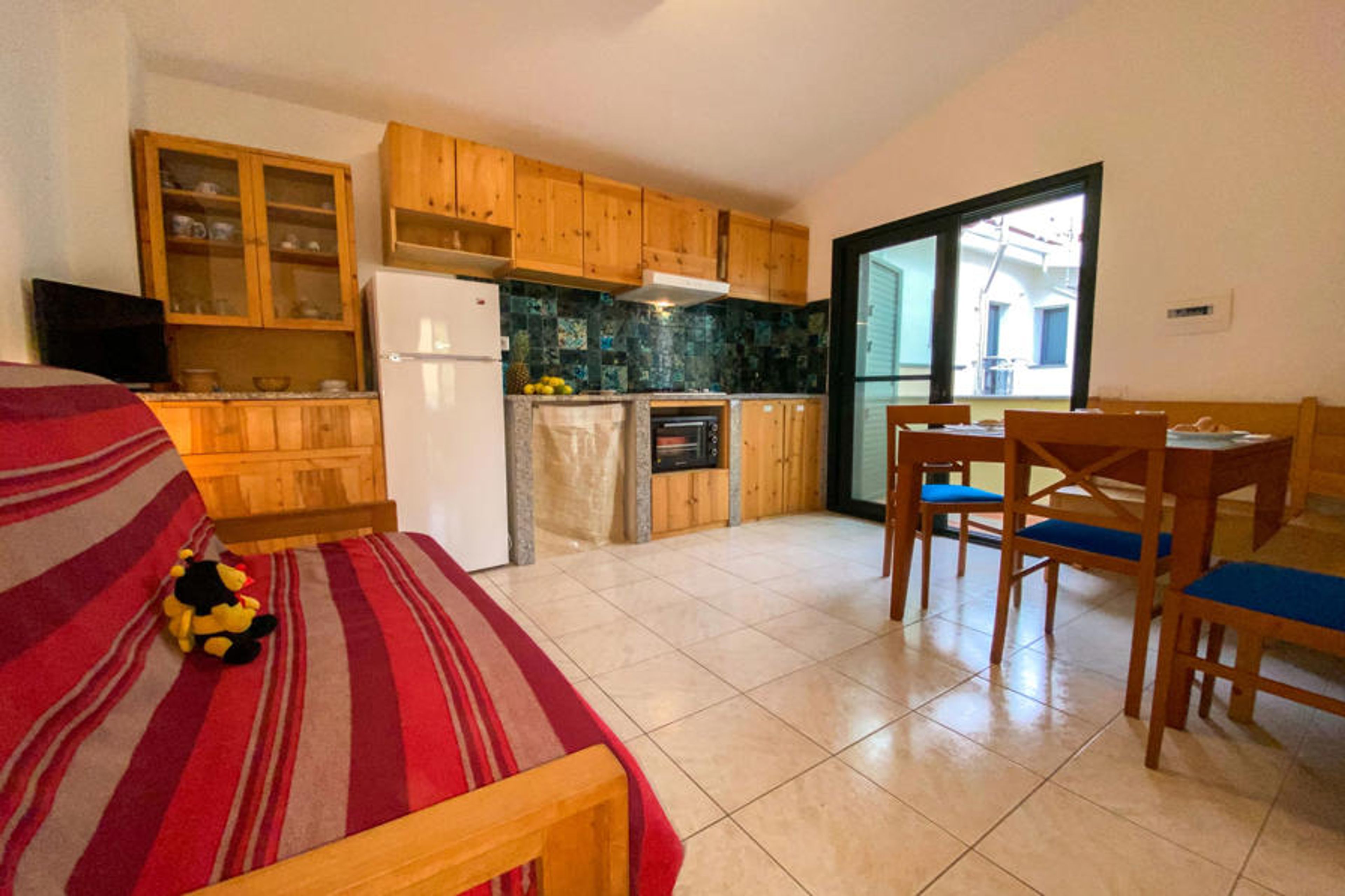 "Blue House", 2-room apartment 35 m2 on 1st floor. Simple and cosy furnishings: living/dining room with sliding door, window onto the courtyard with 1 double sofabed (140 cm, length 190 cm), dining table and TV. 1 double bedroom, window onto the courtyard. Exit to the terrace. Kitchenette (oven, 4 gas rings, freezer). Shower/bidet/WC. Boiler (50 litres). No heating option. Terrace. Terrace furniture. Facilities: washing machine, iron, baby cot for up to 2 year olds, hair dryer. Internet (WiFi, free). Please note: non-smoking house. IT091085C2000P2217