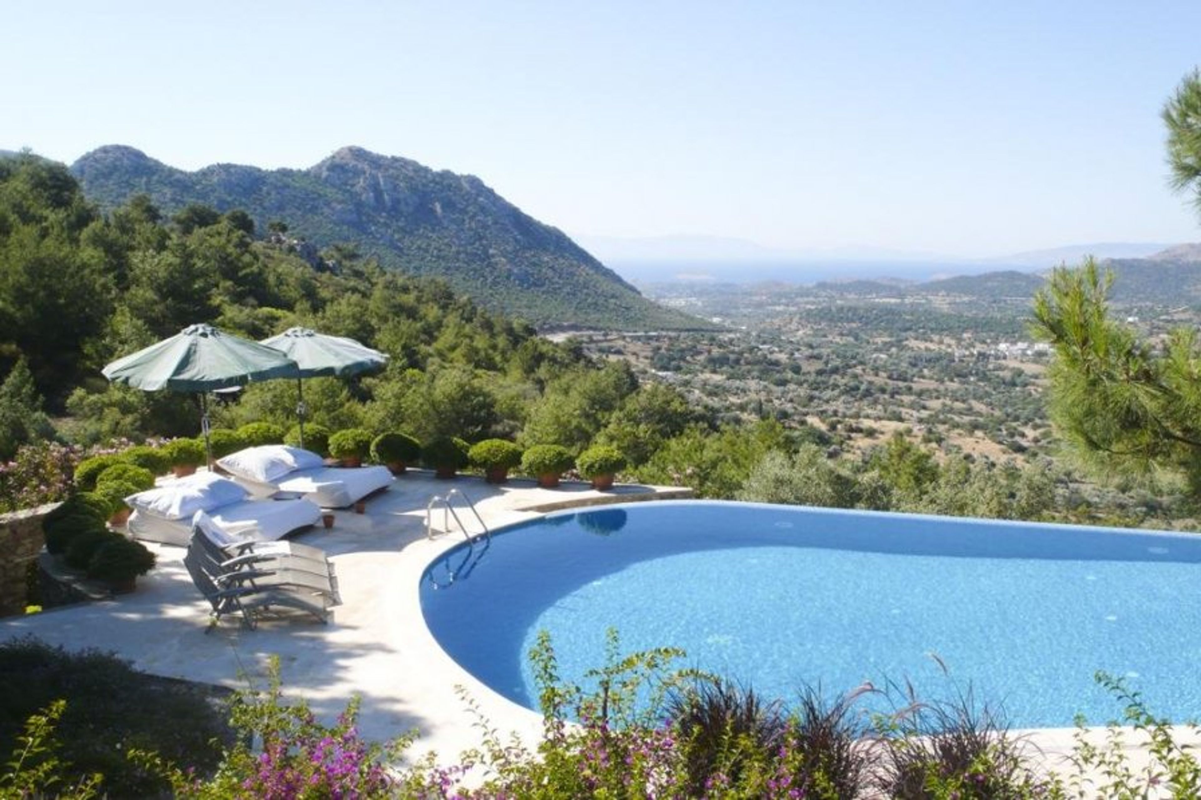 The villa is a spacious luxury stone villa, in a peaceful and private property, enjoys a front line position overlooking a picturesque valley with the blue Aegean Sea backdrop in harmony with the horizon.