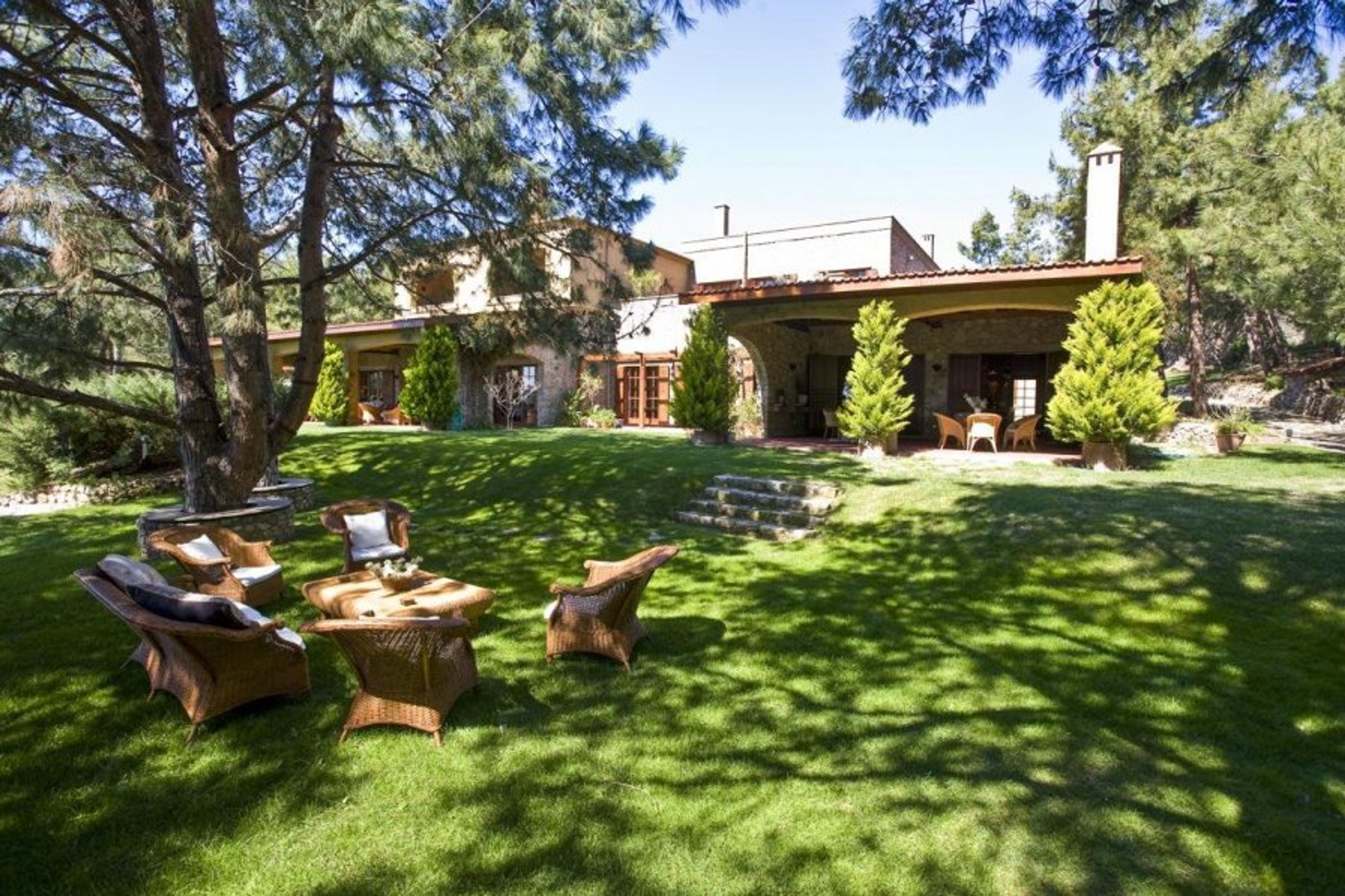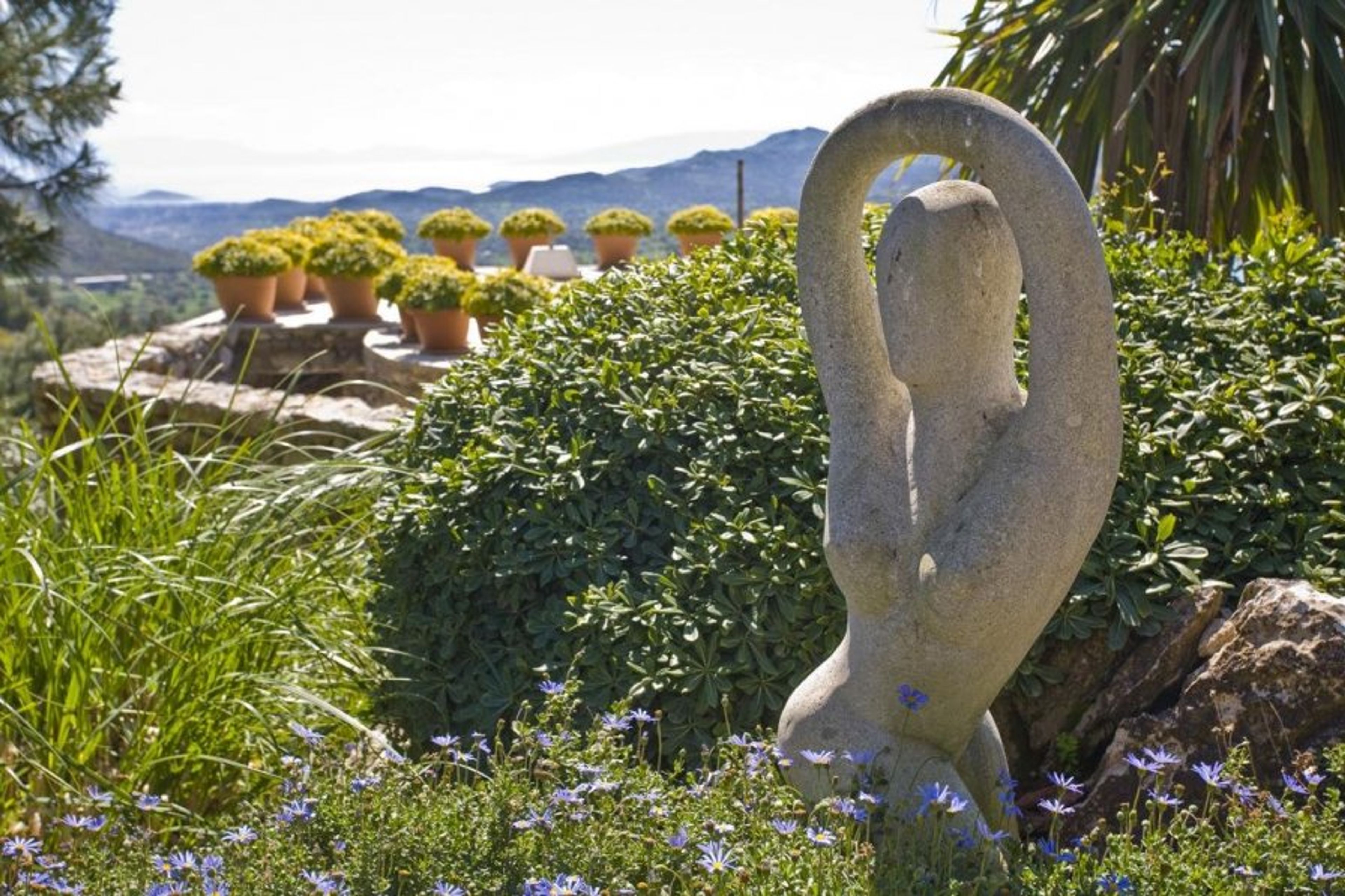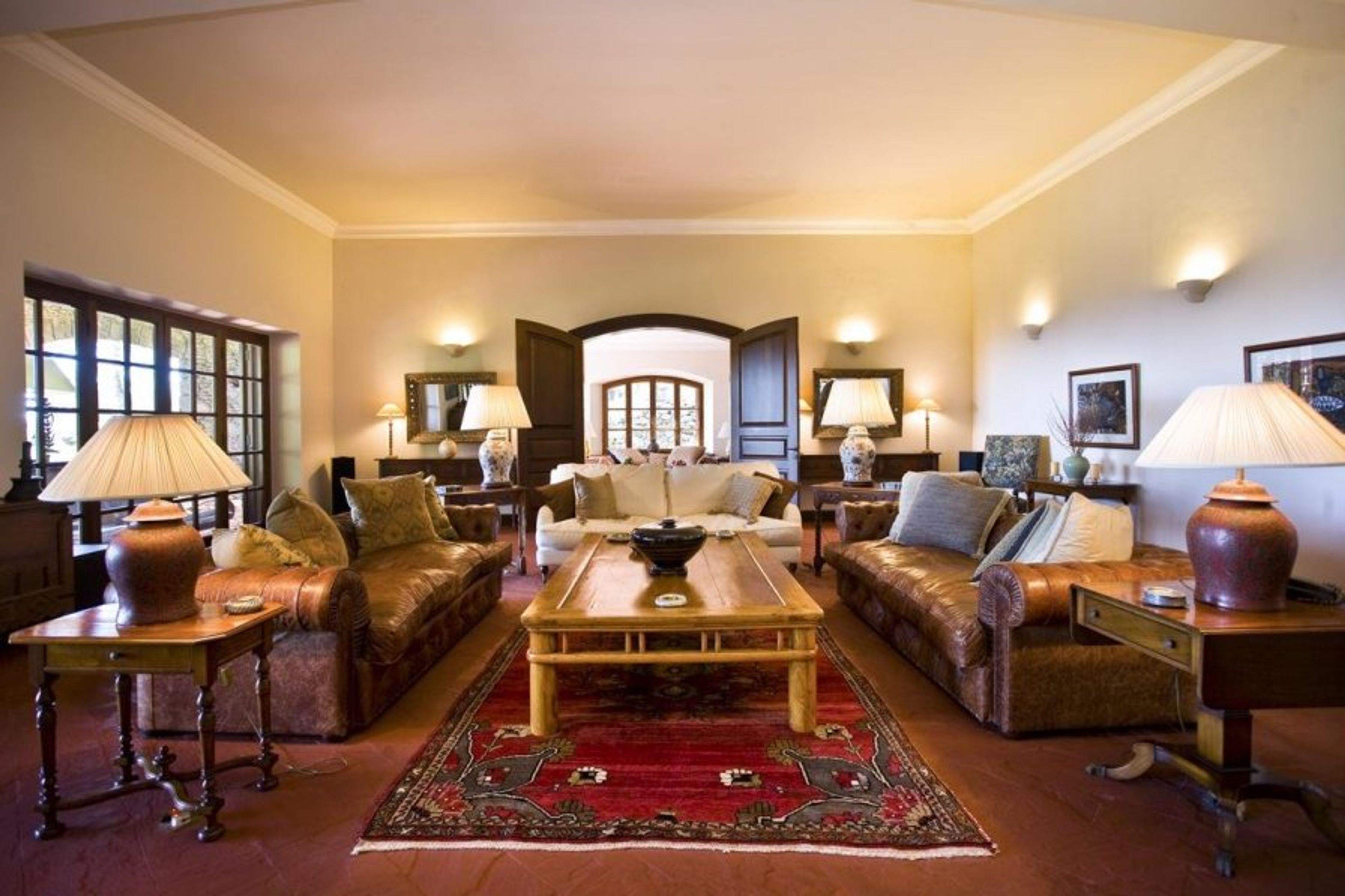 Strolling down the cypress-studded driveway which starts from an ancient water reservoir, you’re greeted by the impressive main entrance of the villa.
