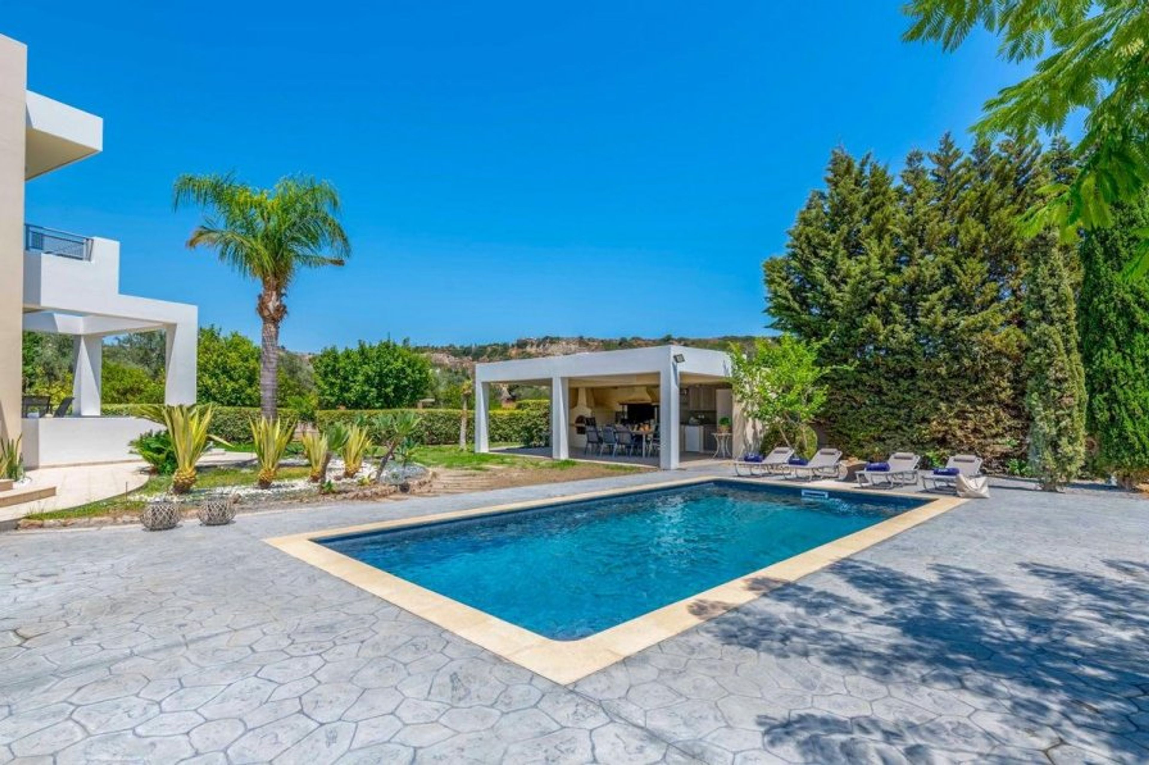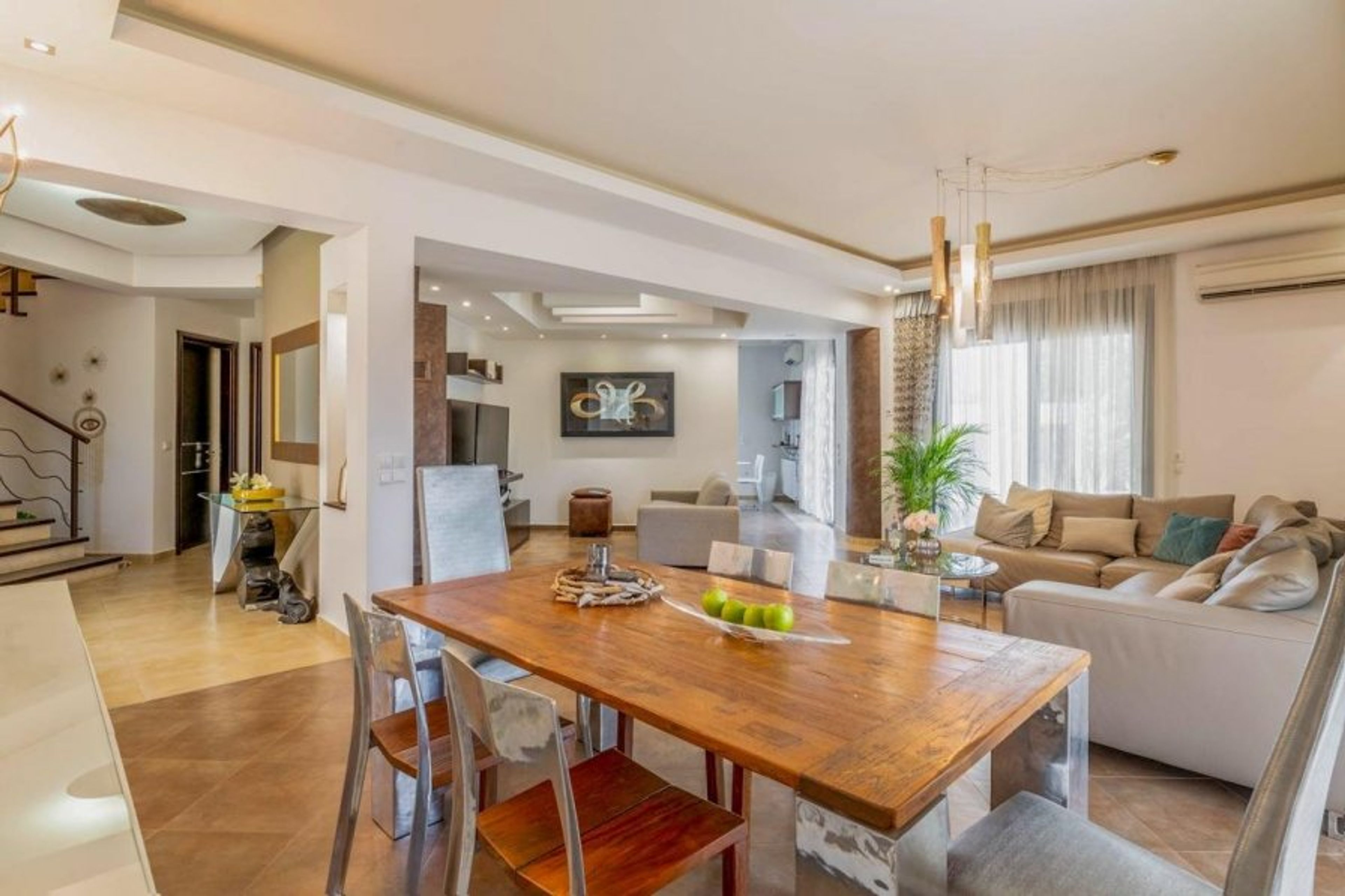 The villa's numerous windows and doors let in a plenty of natural light.