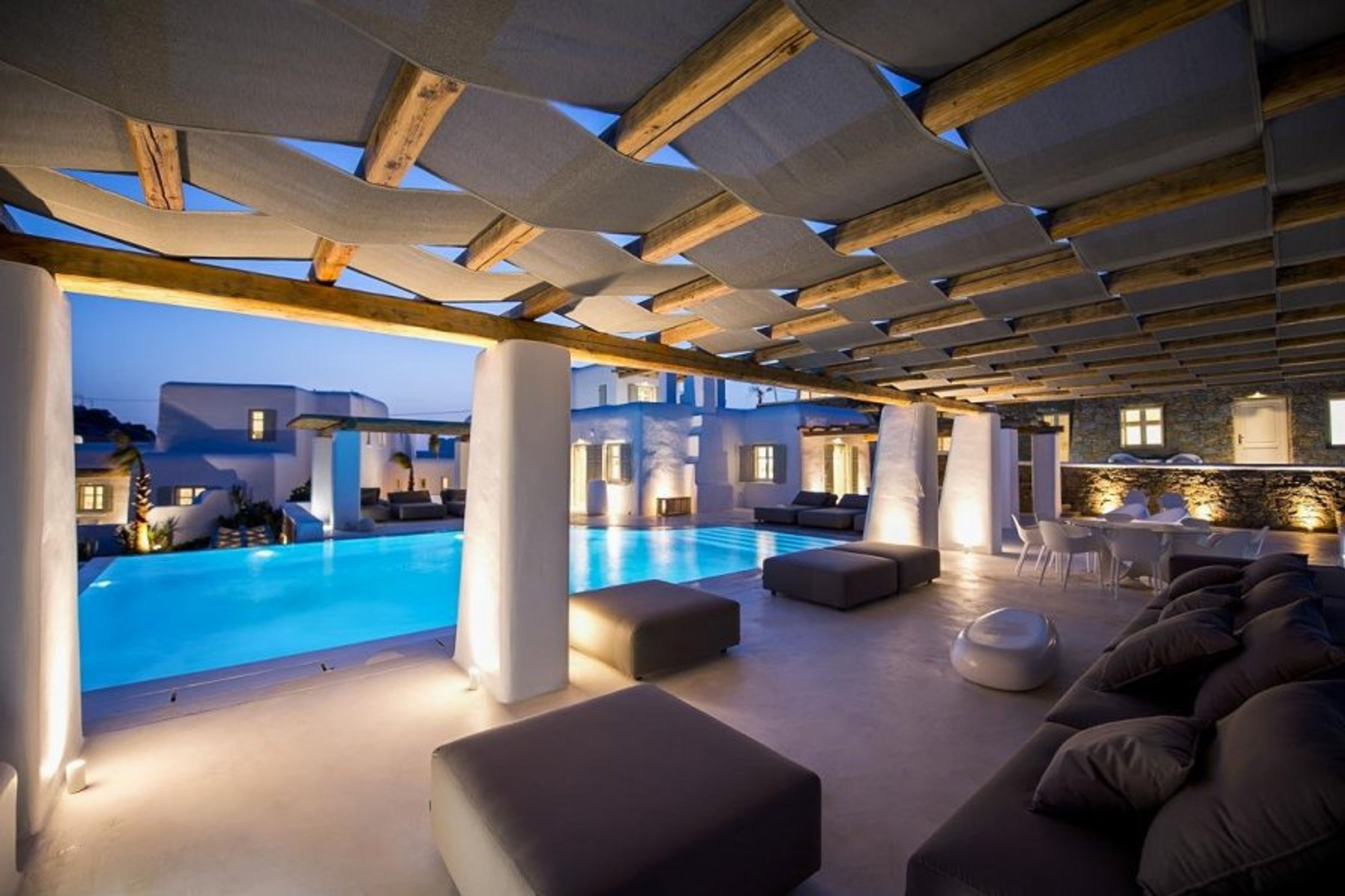 Only ten minutes separate this magnificent home from Mykonos Town, and twenty minutes separate it from the picturesque beaches of Psarou, Ornos, St. John, and Agios Stefanos.