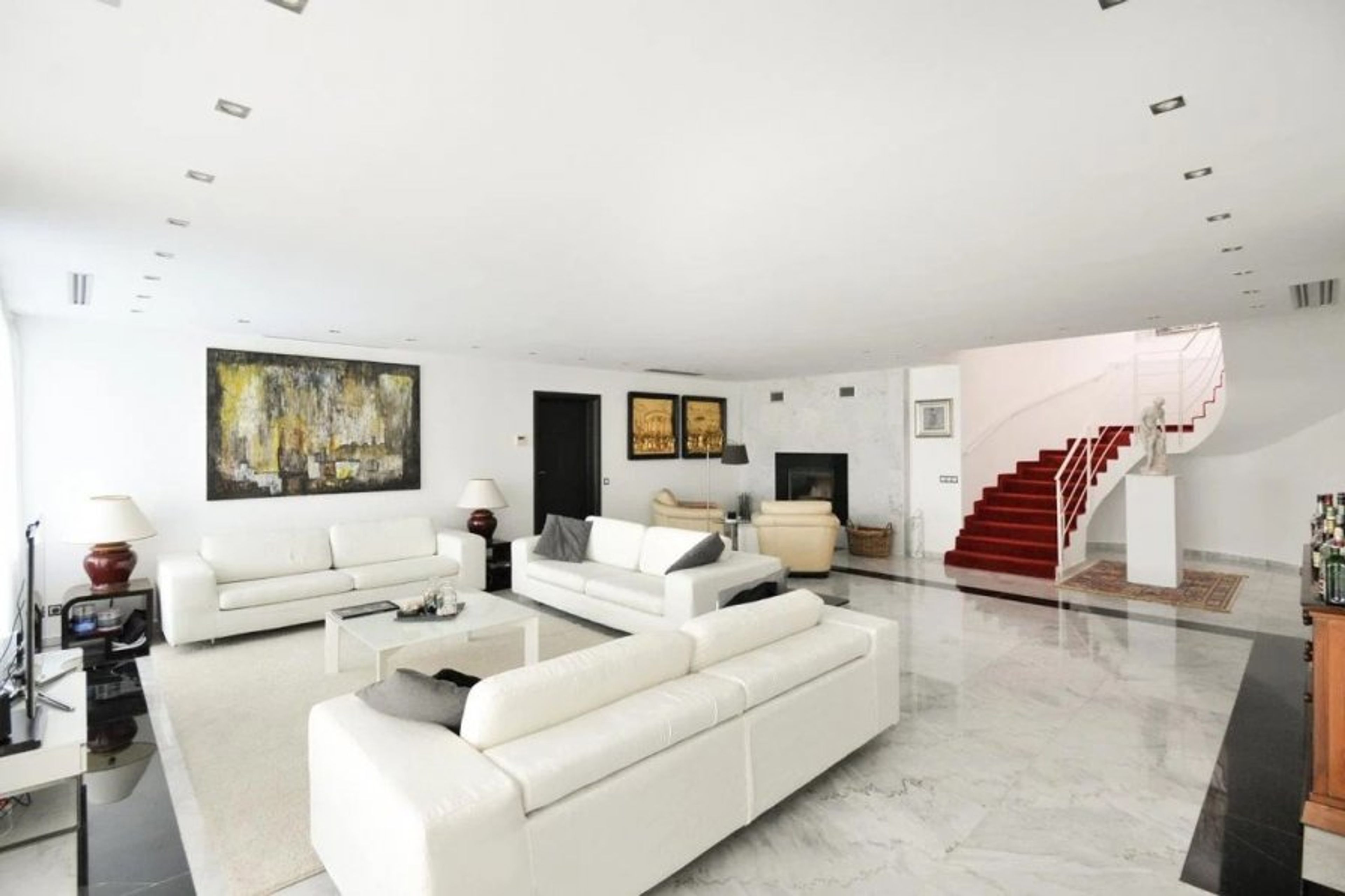 On the top level, guests will find four double bedrooms, each with an en-suite bathroom, and an additional lounge area suitable for taking in the views. Two of the bedrooms even have balconies with sea views. The master bedroom suite is located on the second storey and has a lavish marble bathtub, dressing and living areas, as well as access to a sizable private terrace.