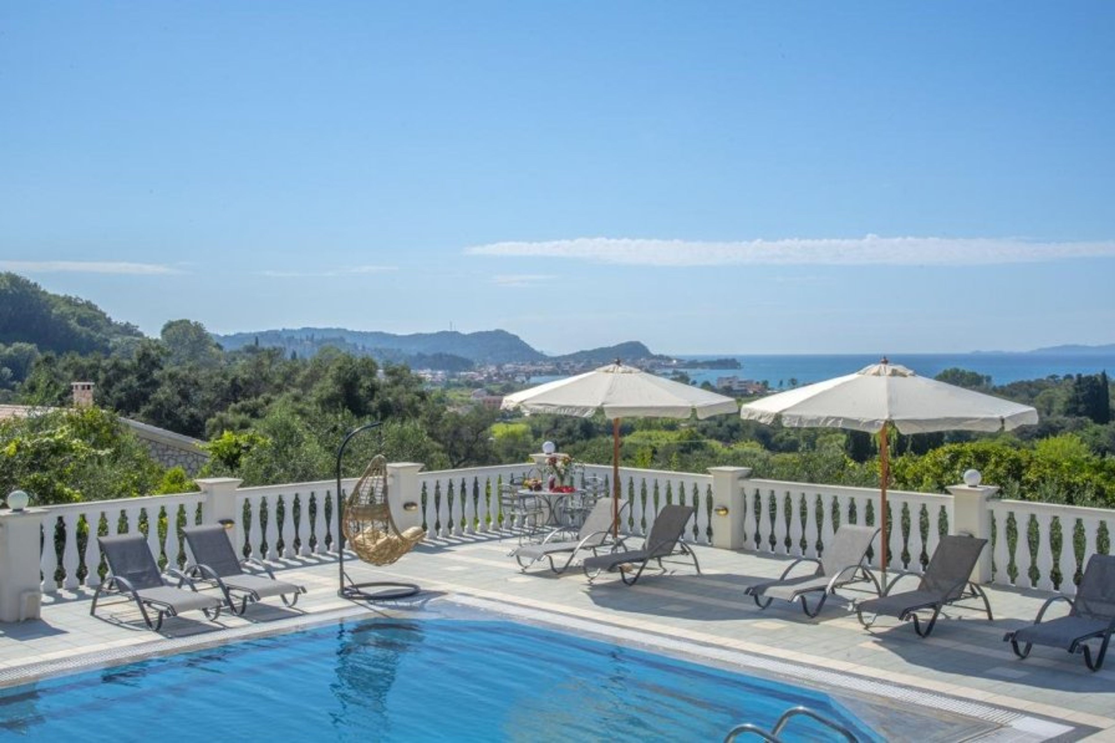 The swimming pool at Villa is an absolute delight. It is enormous and surrounded by numerous loungers, parasols, and an egg chair, making it the ideal spot to enjoy the sunshine, your vacation read, and the breathtaking views.