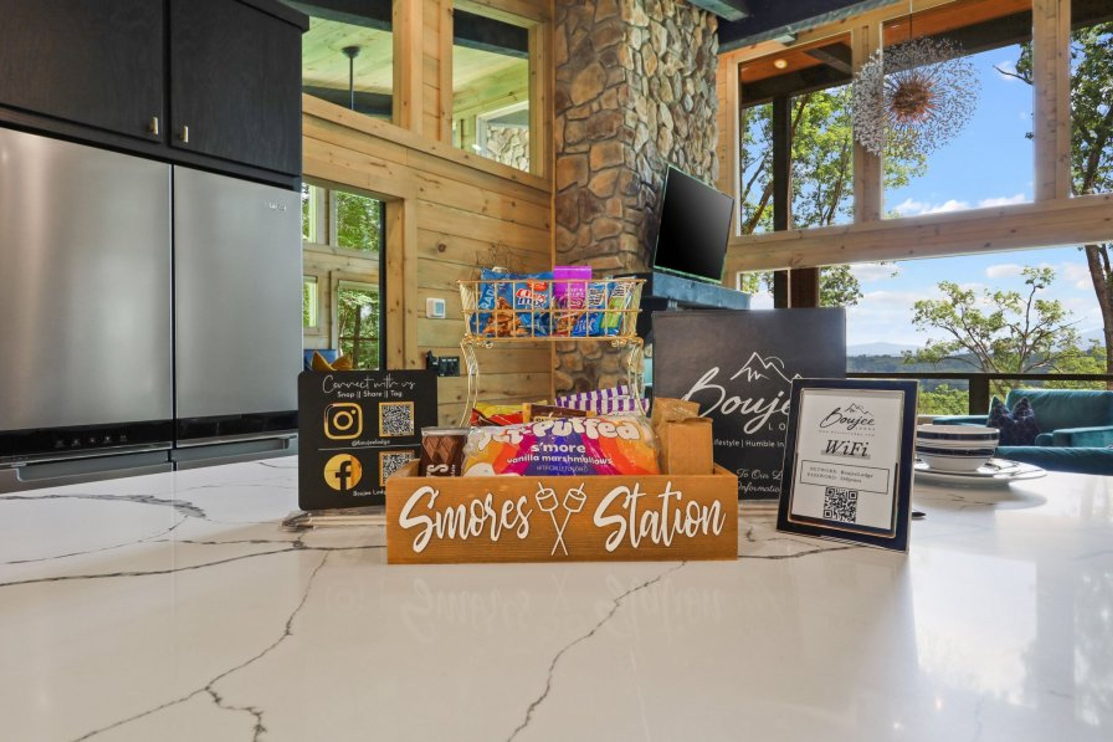 Staying committed to our 5-star standards, we are featuring the following amenities; complimentary shampoo, conditioner and body wash. Hand-made Artisan soaps, toilet paper, paper towels, trash bags, dishwasher and laundry pods. Well-appointed gourmet kitchen with custom pot filler. Firewood for each of the two outdoor fireplaces and fire pit. Refrigerated bottled water, cooking oil, spices, and foil will be stocked. We also provide a fully stocked coffee bar with Starbucks k-cups, flavored creamers, sweeteners, hot chocolate, Tazo teas, Biscotti’s, and delicious Ghirardelli’s chocolates. Wake up and enjoy your coffee with homemade waffles with our stocked Waffle Bar. Snuggle up on the swing bed and watch a movie on the outdoor projector, we got you covered with our Movie Night Box which includes popcorn, candy and chips. Enjoy the Snack Bar upon arrival after the long flight and/or drive. There will be a variety of chips, granola bars, trail mix and other tasty snacks upon your arrival. Lets not forget the locally made goodies to give you an authentic taste of Blue Ridge! USB charging outlets in every room, EV Level 2 charger, yoga mats, dumbbells, and we can’t forget your beach bags & towels for the fun filled day spent boating on Lake Blue Ridge…