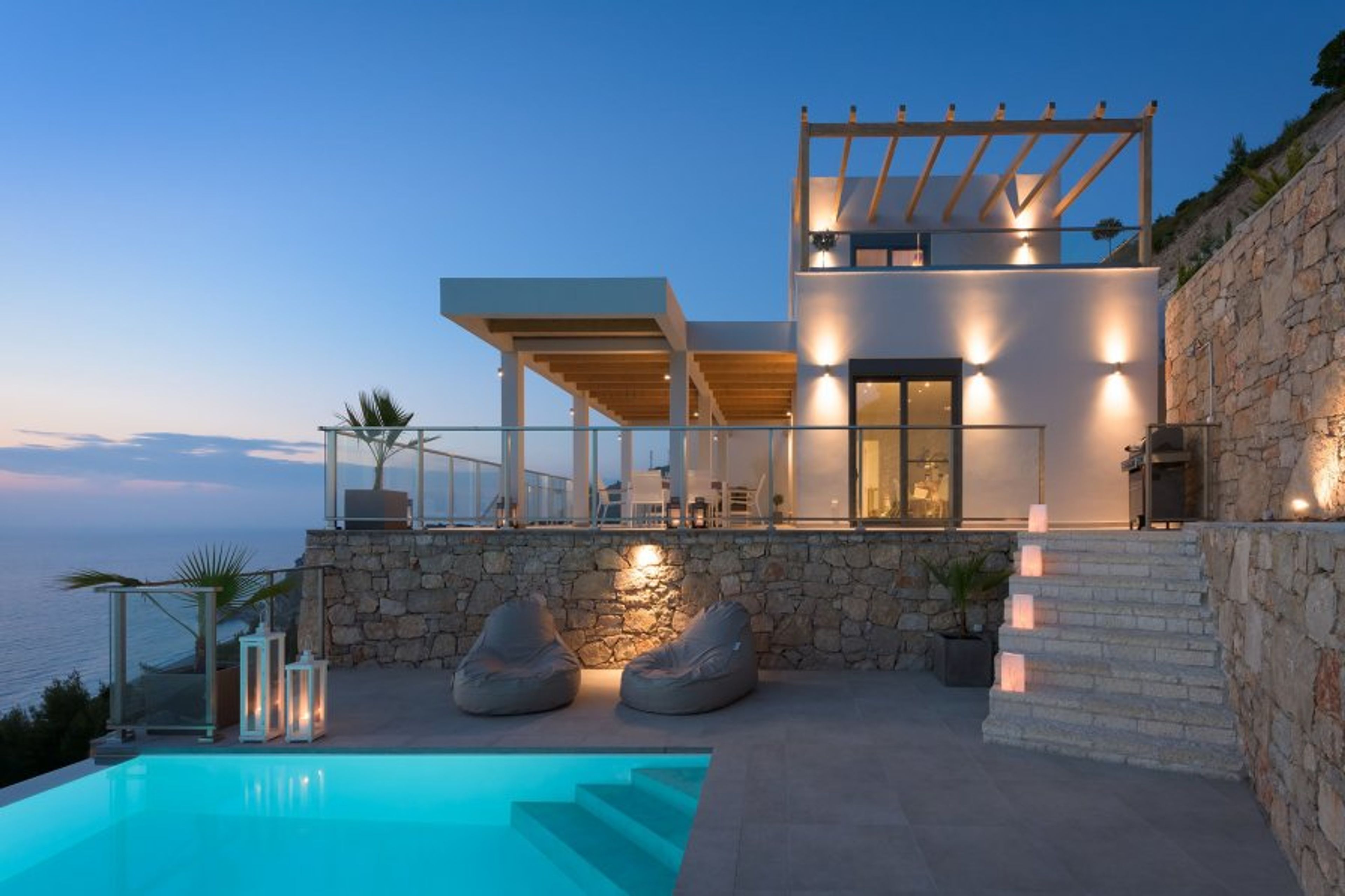 A luxury 3 bed villa with private infinity pool overlooking the beautiful Kathisma beach with stunning panoramic Ionian Sea views and one of the best sunsets you will see!