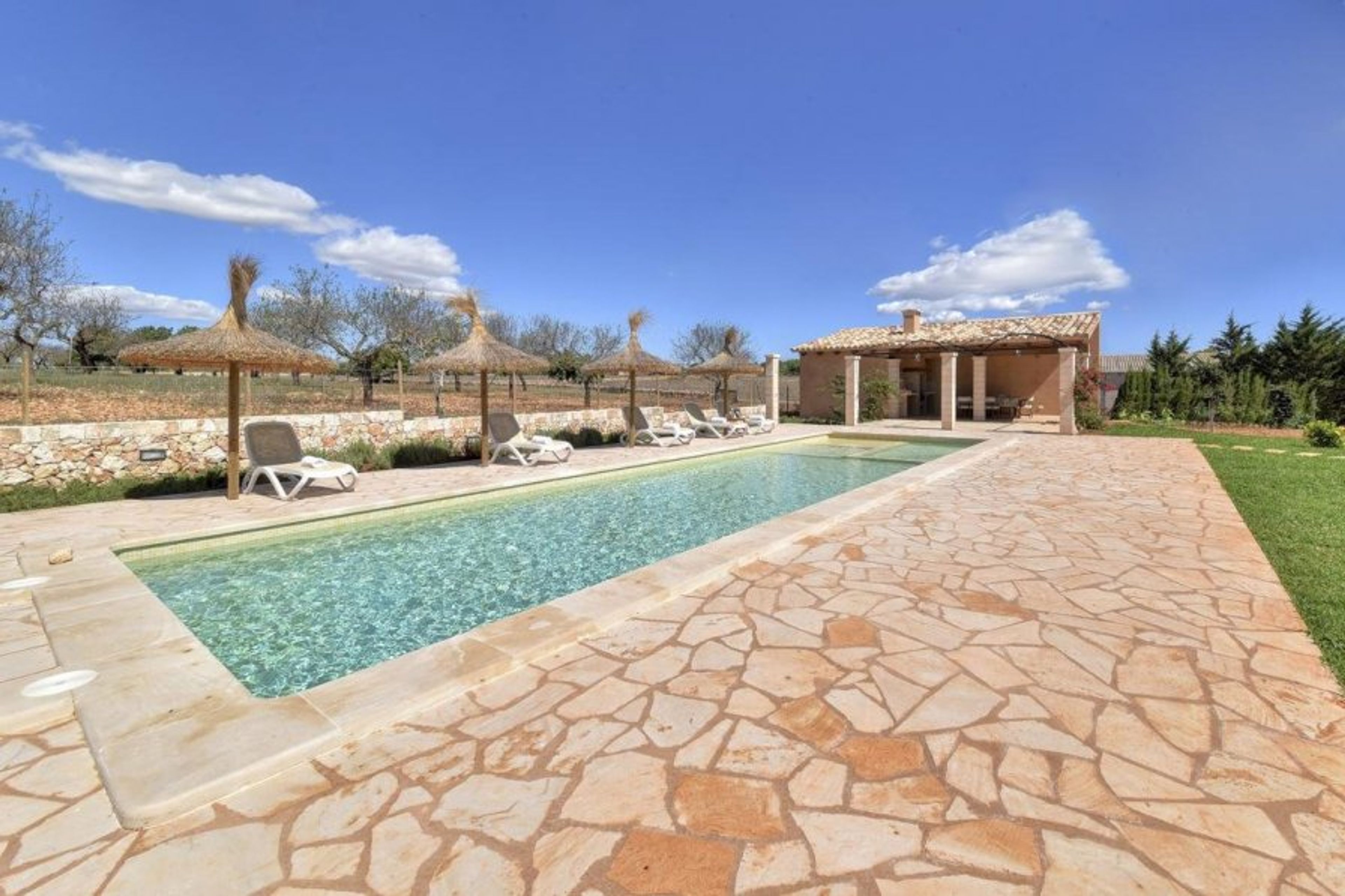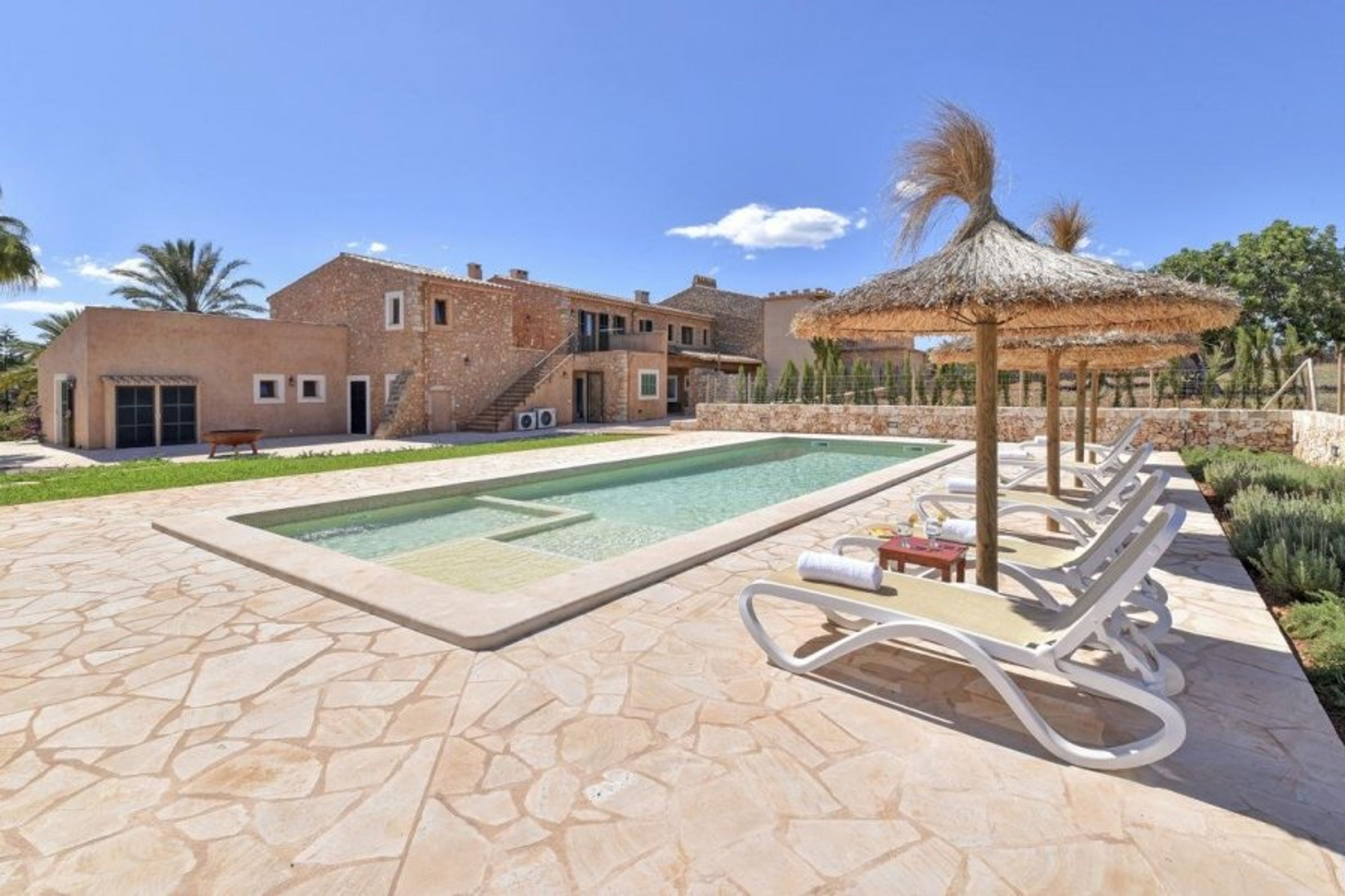 The vills is a country house with private pool to rent at the outskirts of Porto Petro, Mallorca. There are 6 bedrooms and 6 bathrooms, and it can accommodate up to 12 people