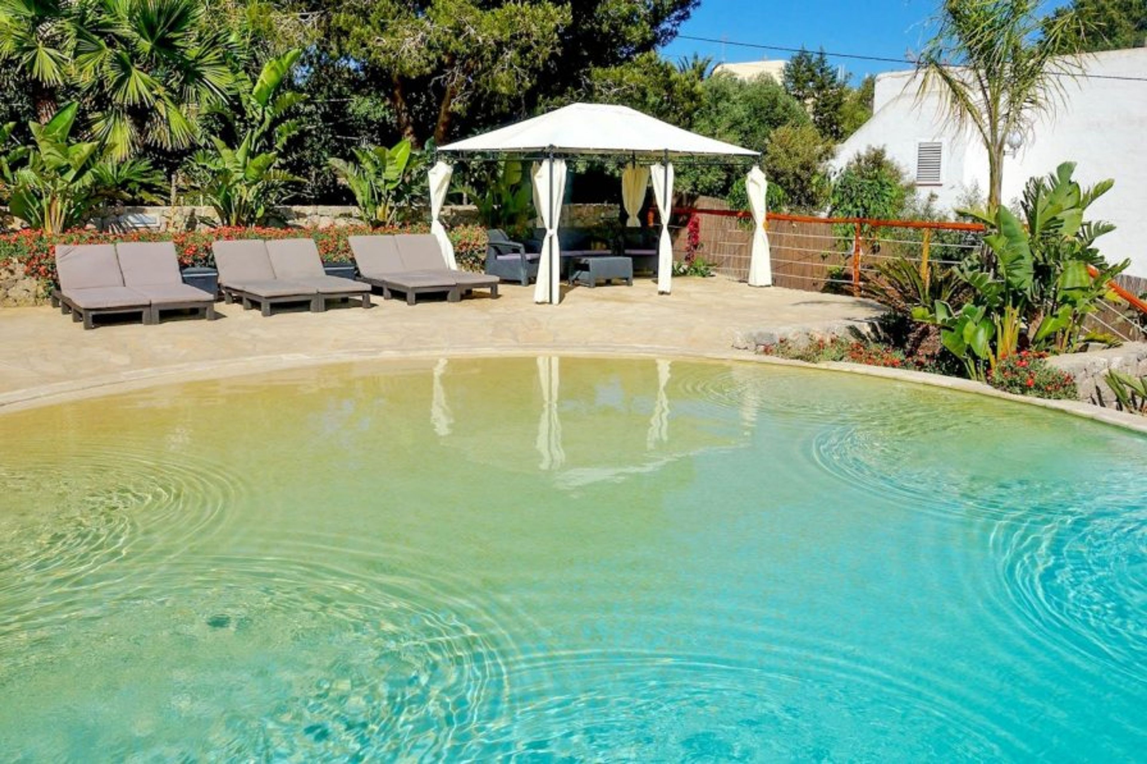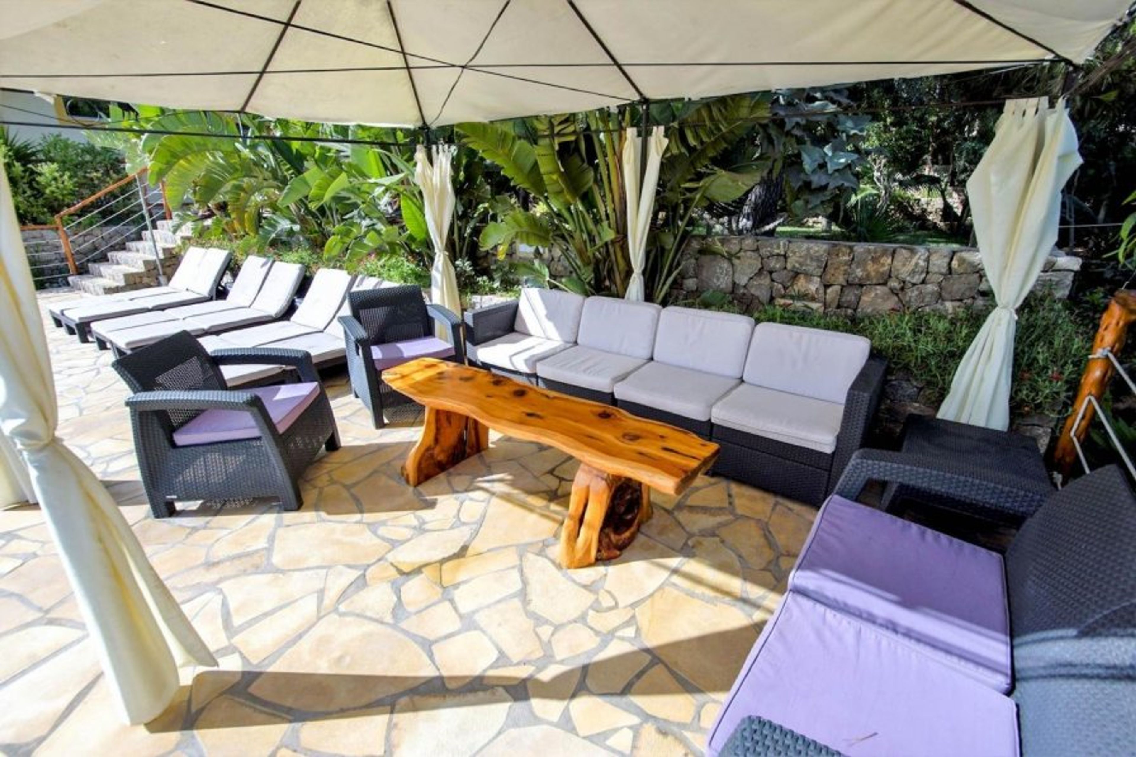The garden is enhanced by glorious plants, flowers and trees and sees steps leading down to the pool deck equipped with elegant sun loungers and a sheltered seating area. You will adore waking up each morning and swimming in the pool while taking in views over the town of Ibiza and the wider countryside. When you’re not making the most of your private pool, you’ll be in the back of the garden, quietly contemplating on the wooden bench.