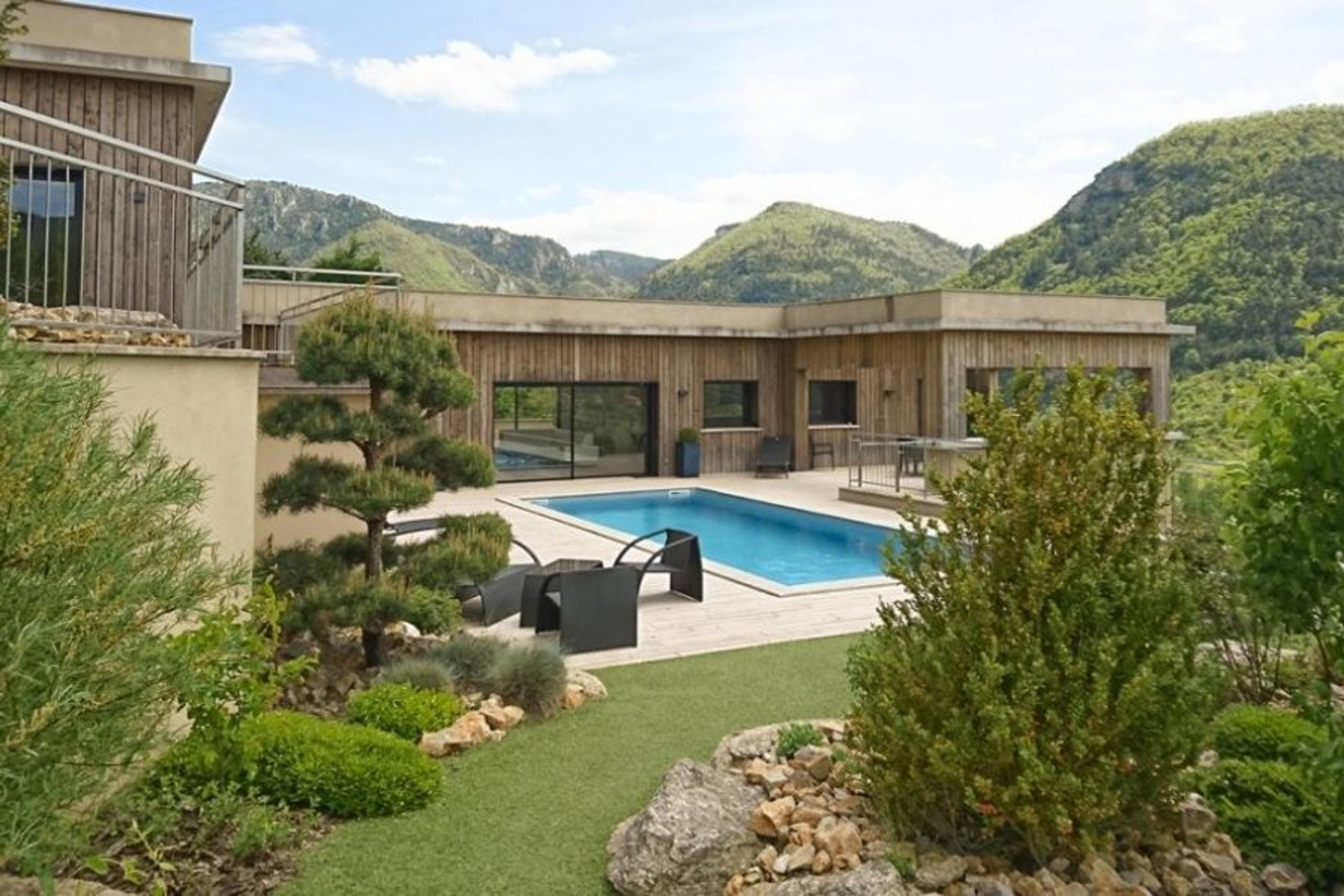 Incredible views can be seen from this stunning contemporary villa in the Grands Causses Regional Park in rural southern France.