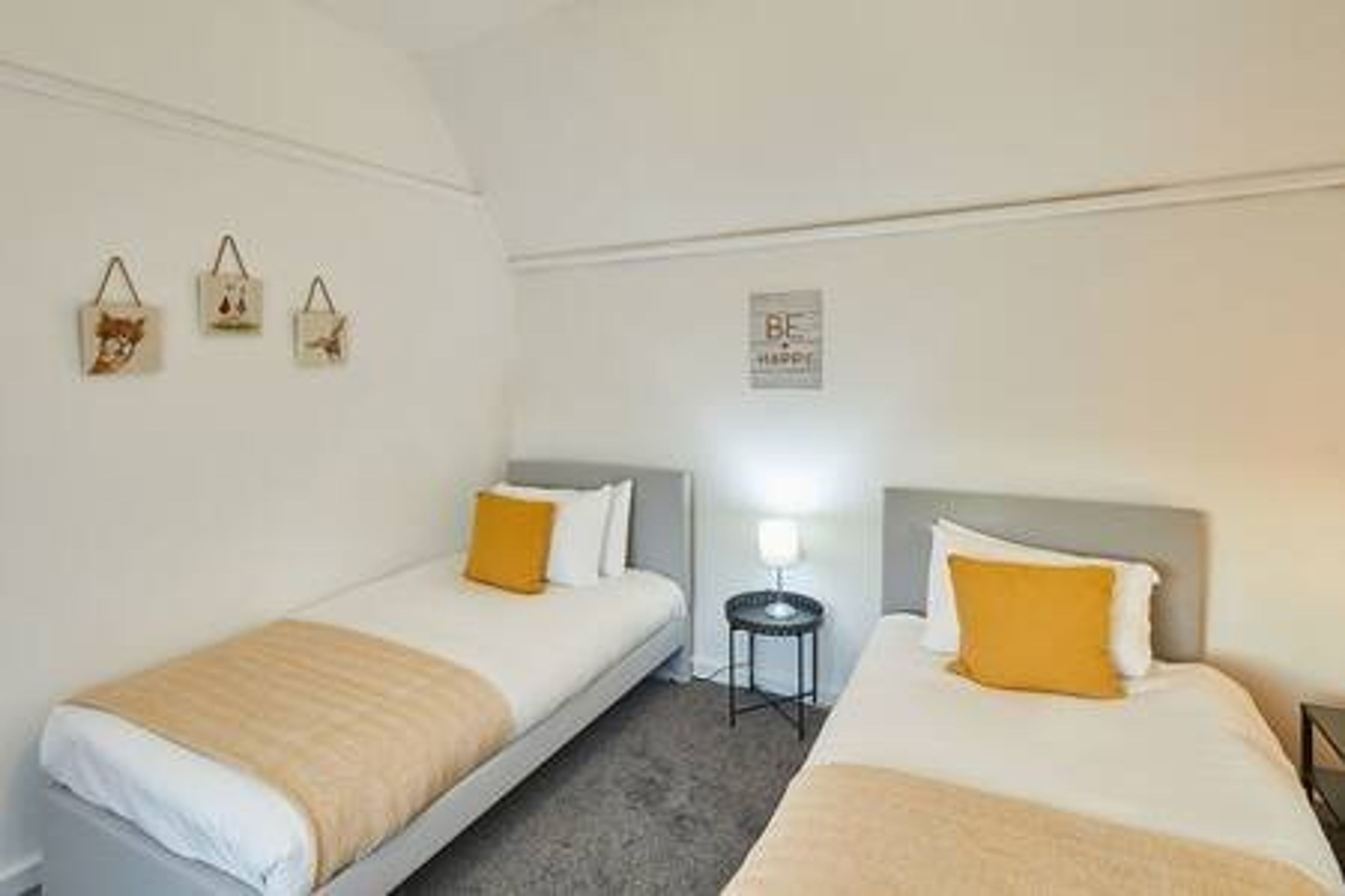 Take the stairs up to the first floor and you’ll find two bedrooms. The master bedroom has a comfortable double bed and the second bedroom is a twin. Both beds boast plush bedding and premium bed linens for a comfortable night's sleep.