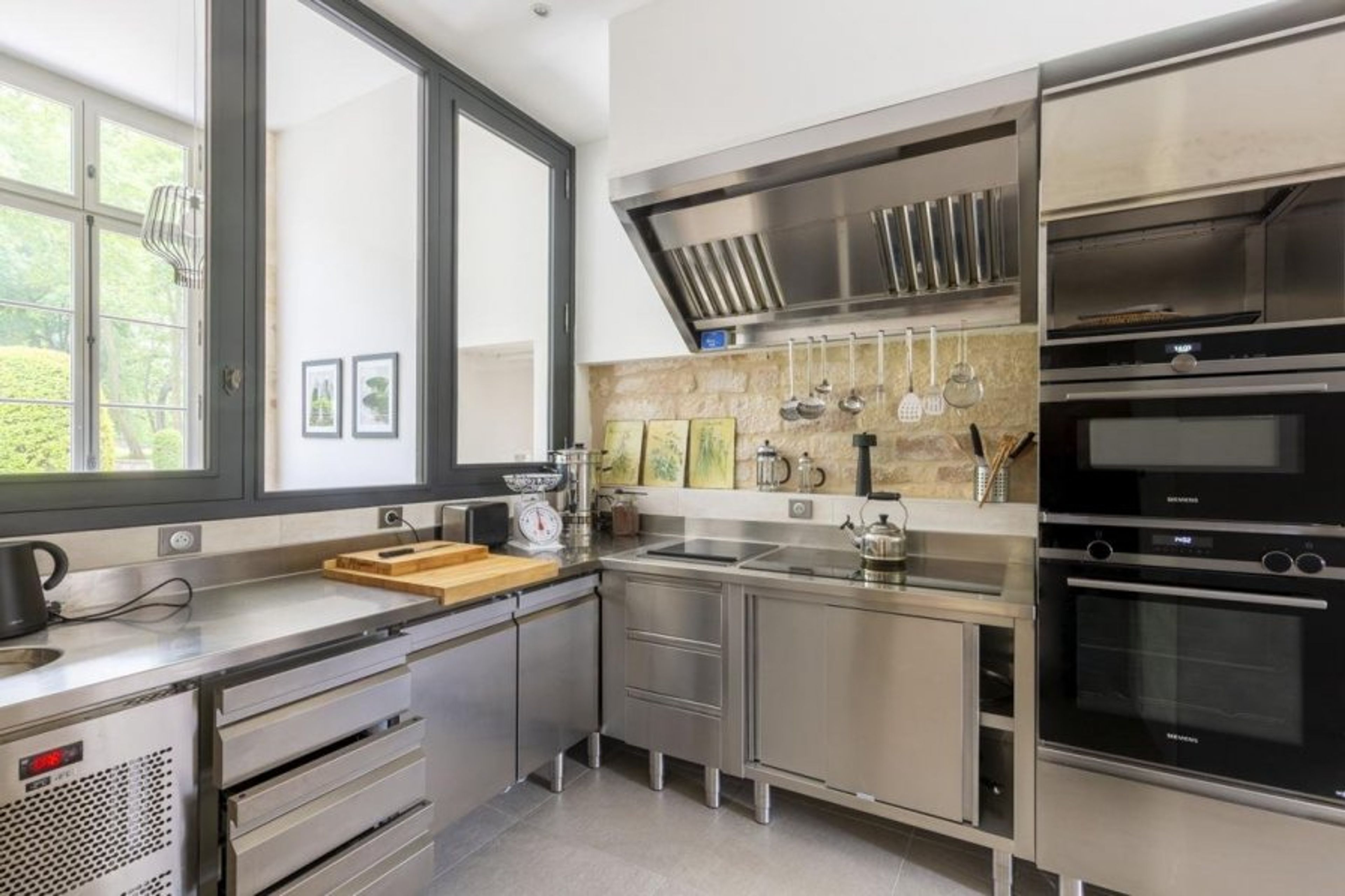 The charming palais sleeps up to 14 guests and includes a home-cinema lounge, library, and elegant kitchen with a Lacanche oven and appliances.