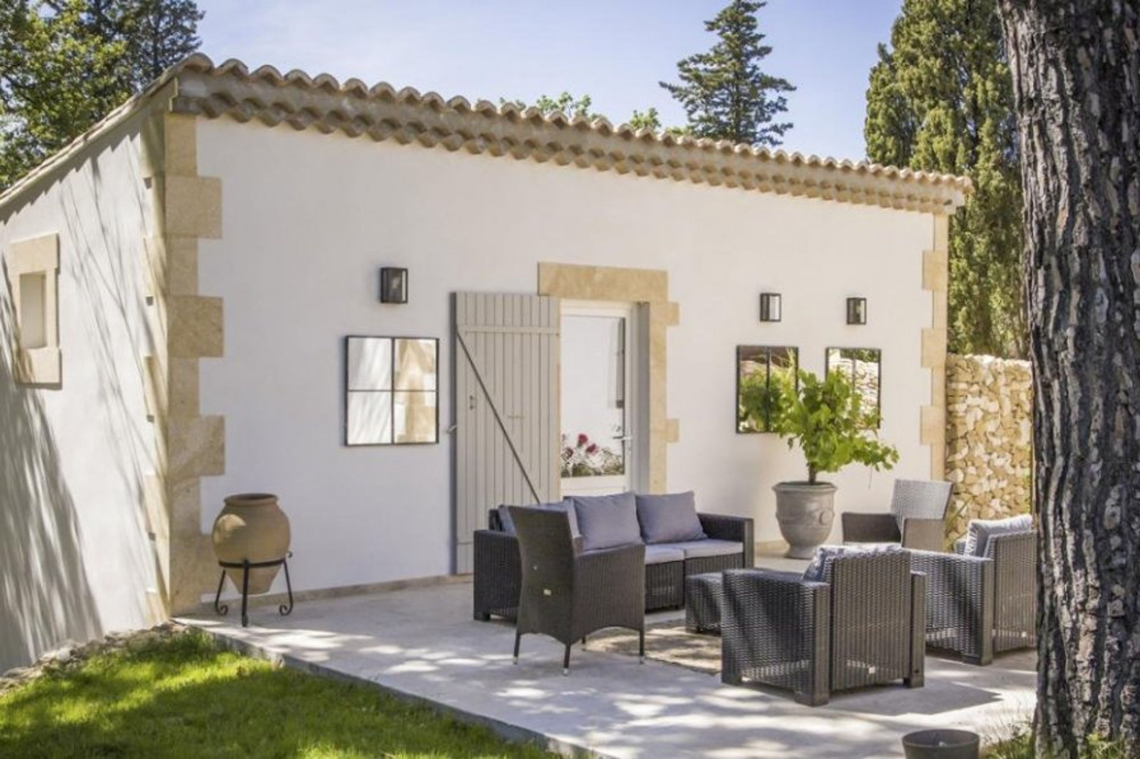 Relaxing on the terrace you are able to catch a glimpse of the Alpilles mountain range over the tall trees and stone walls that surround the property.