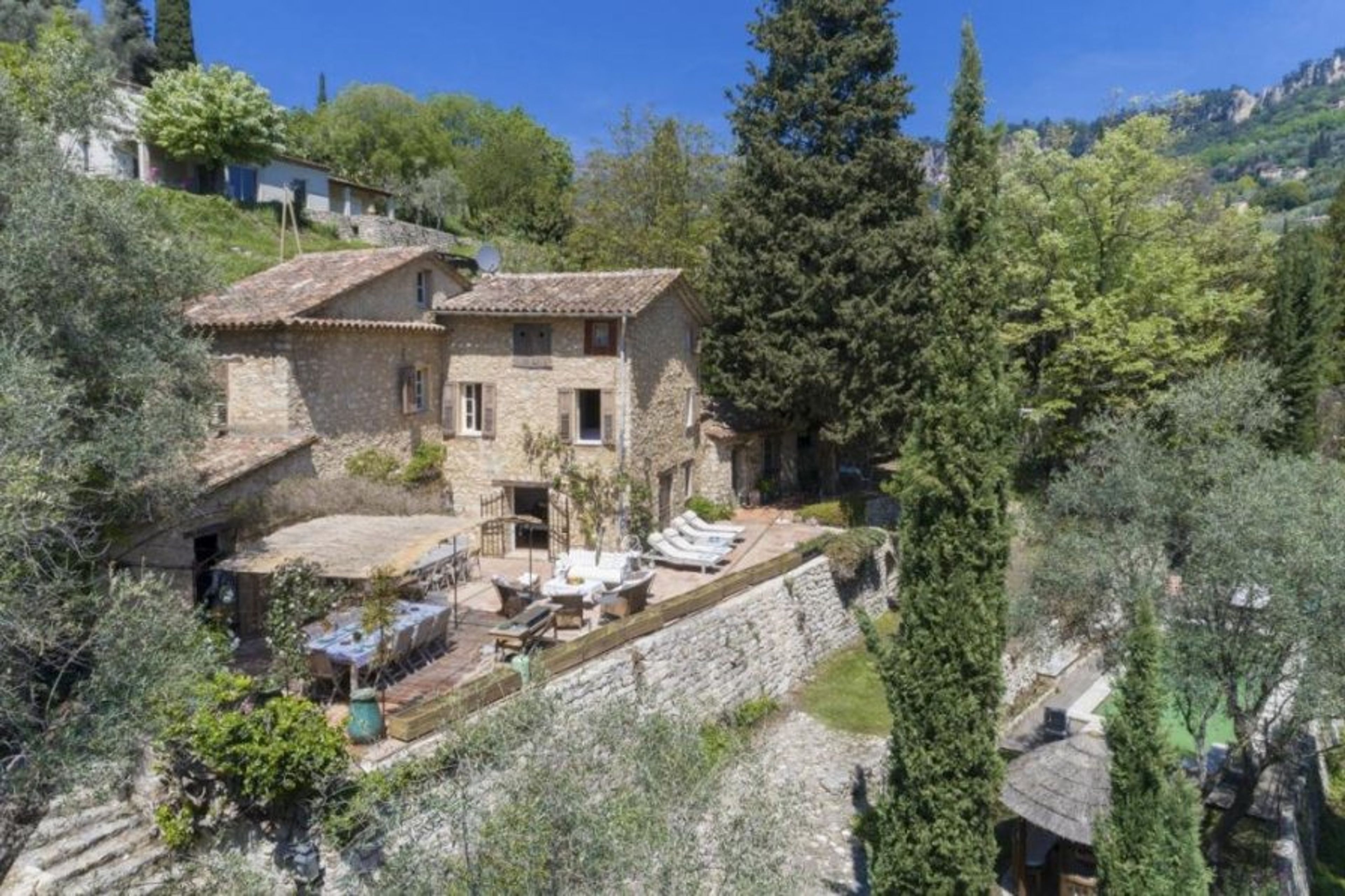 This villa is in a glorious location in a valley just a short drive from the delightful town of Grasse and only 20km from Cannes and the French Riviera. Listen out for the sound of the river and its waterfall just below the house in this wonderful setting.