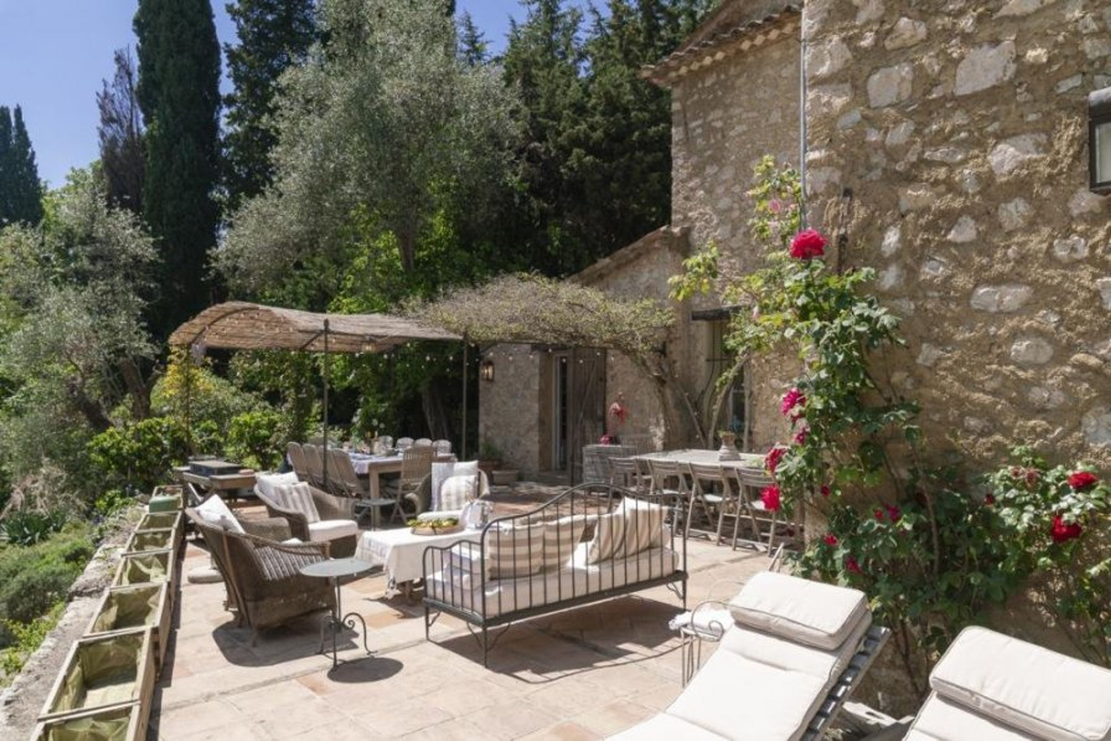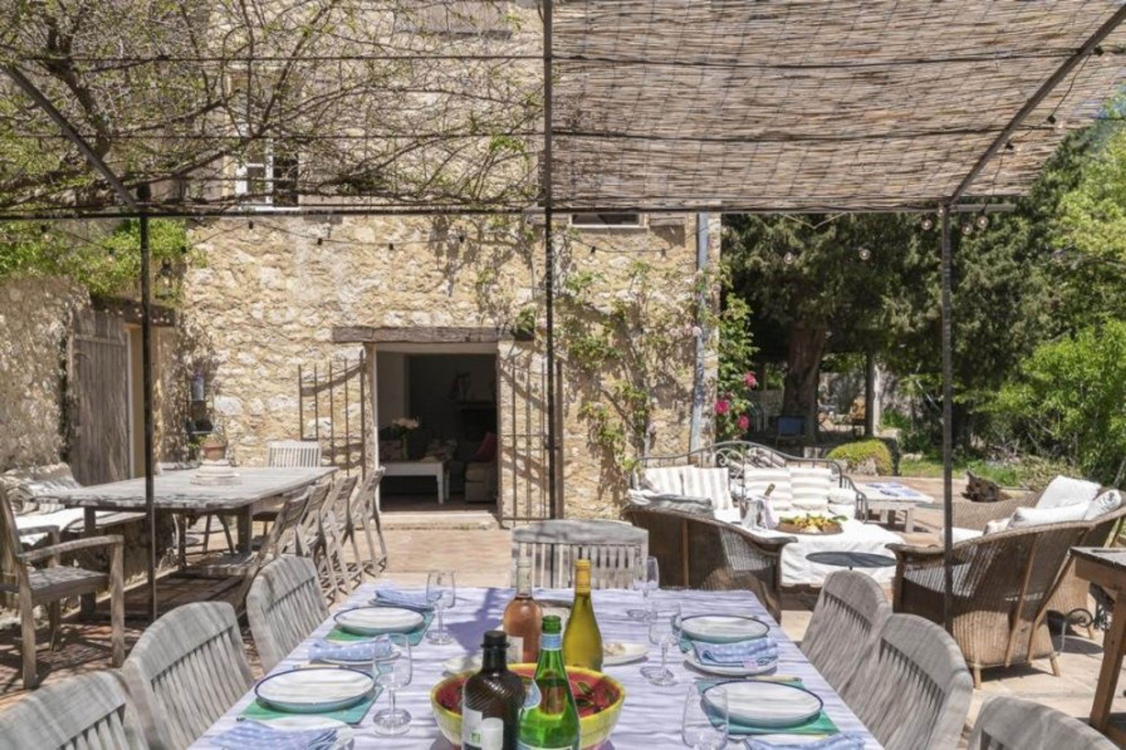 The stunning bougainvillea perfectly complements the traditional stone of the house, providing a welcoming shade in the summer on the beautiful terrace.
