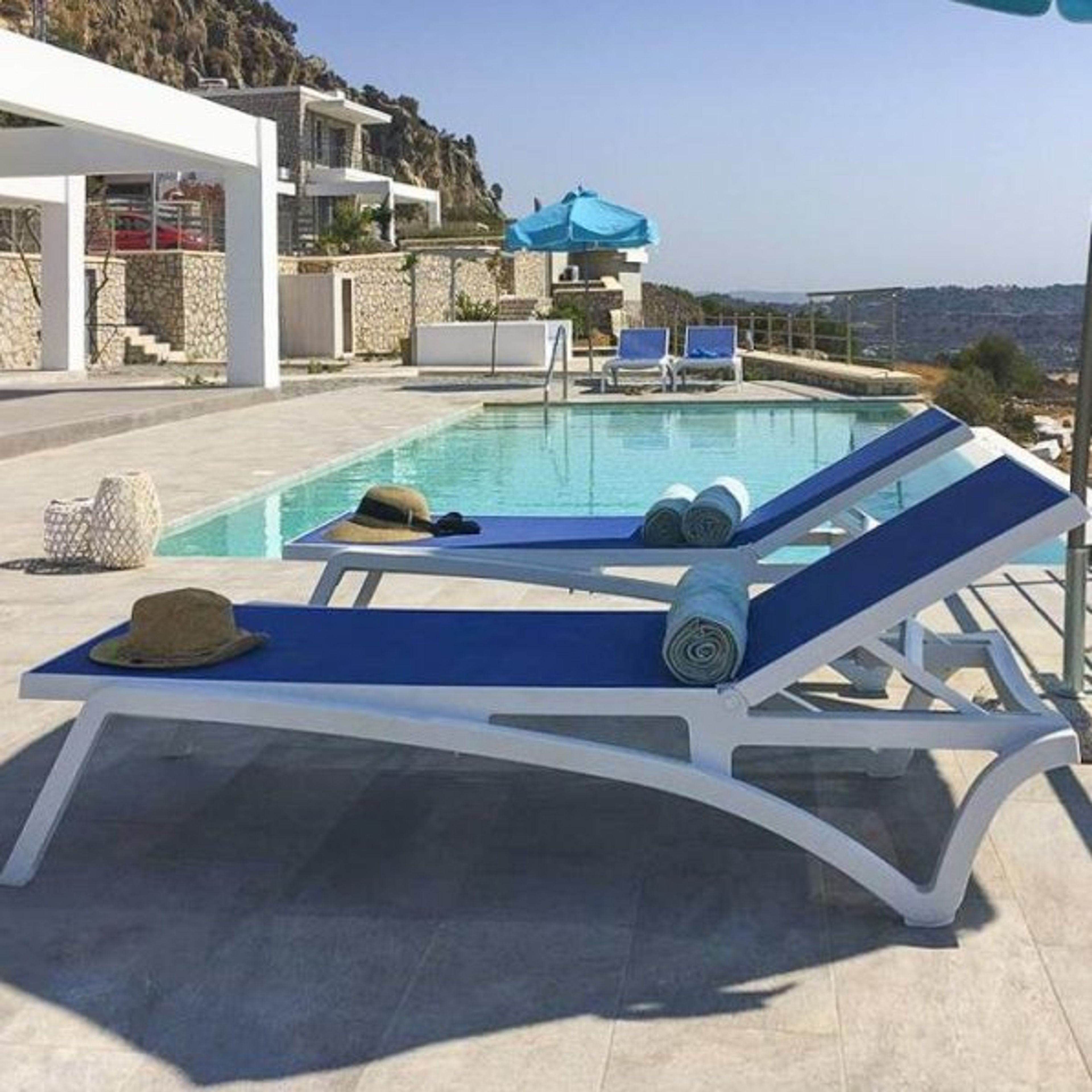 The sleek, modern furnishings and simple architecture make the contemporary style obvious as soon as you enter. The colour scheme, which combines white with splotches of blue and turquoise, highlights the effect of the far-off ocean's dazzling surface.