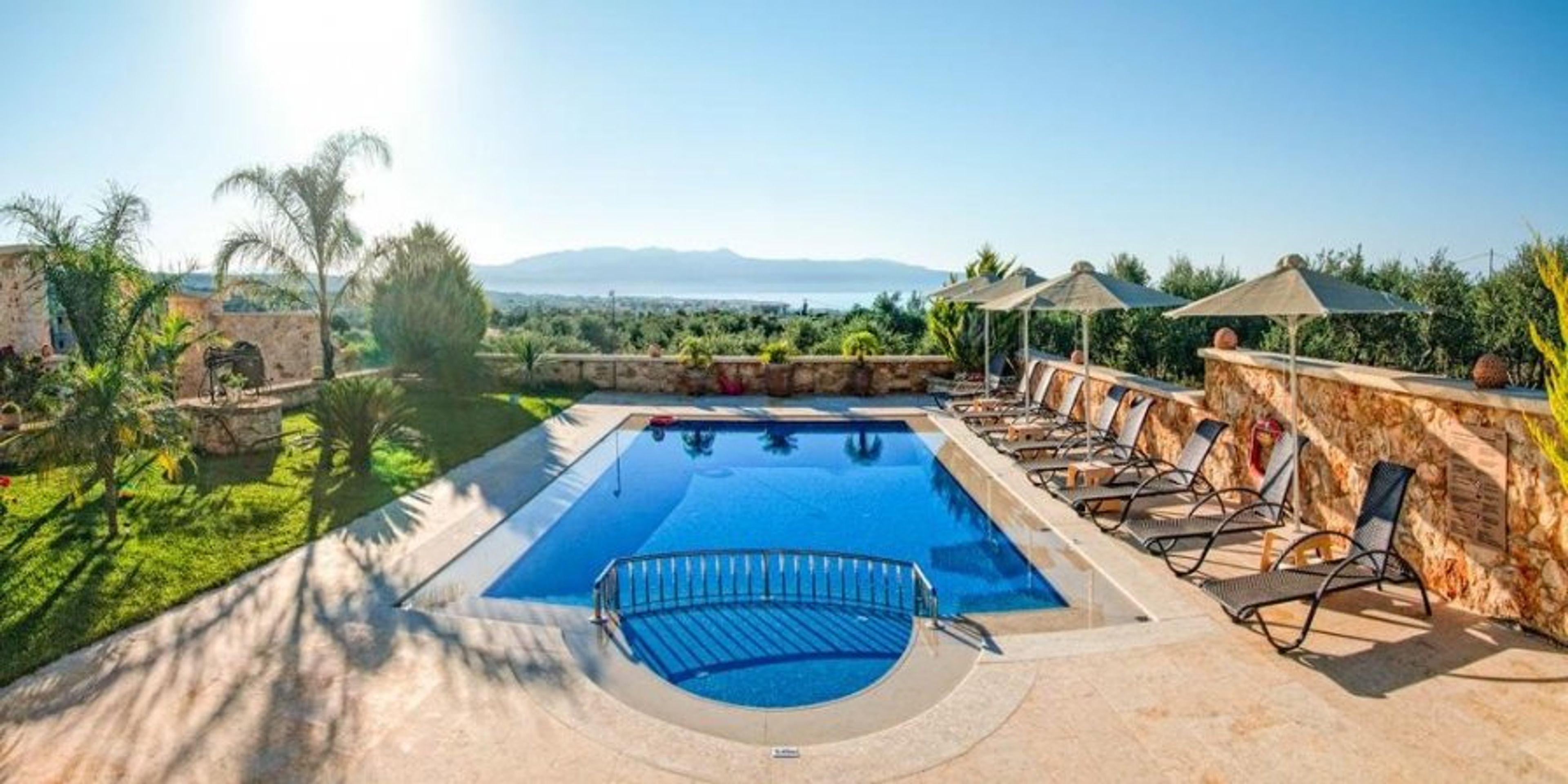 Located on a hillside above the charming beach village of Kontomari, this spectacular home offers almost infinite views across the Cretan Sea to the Kissamos Peninsula and beyond.