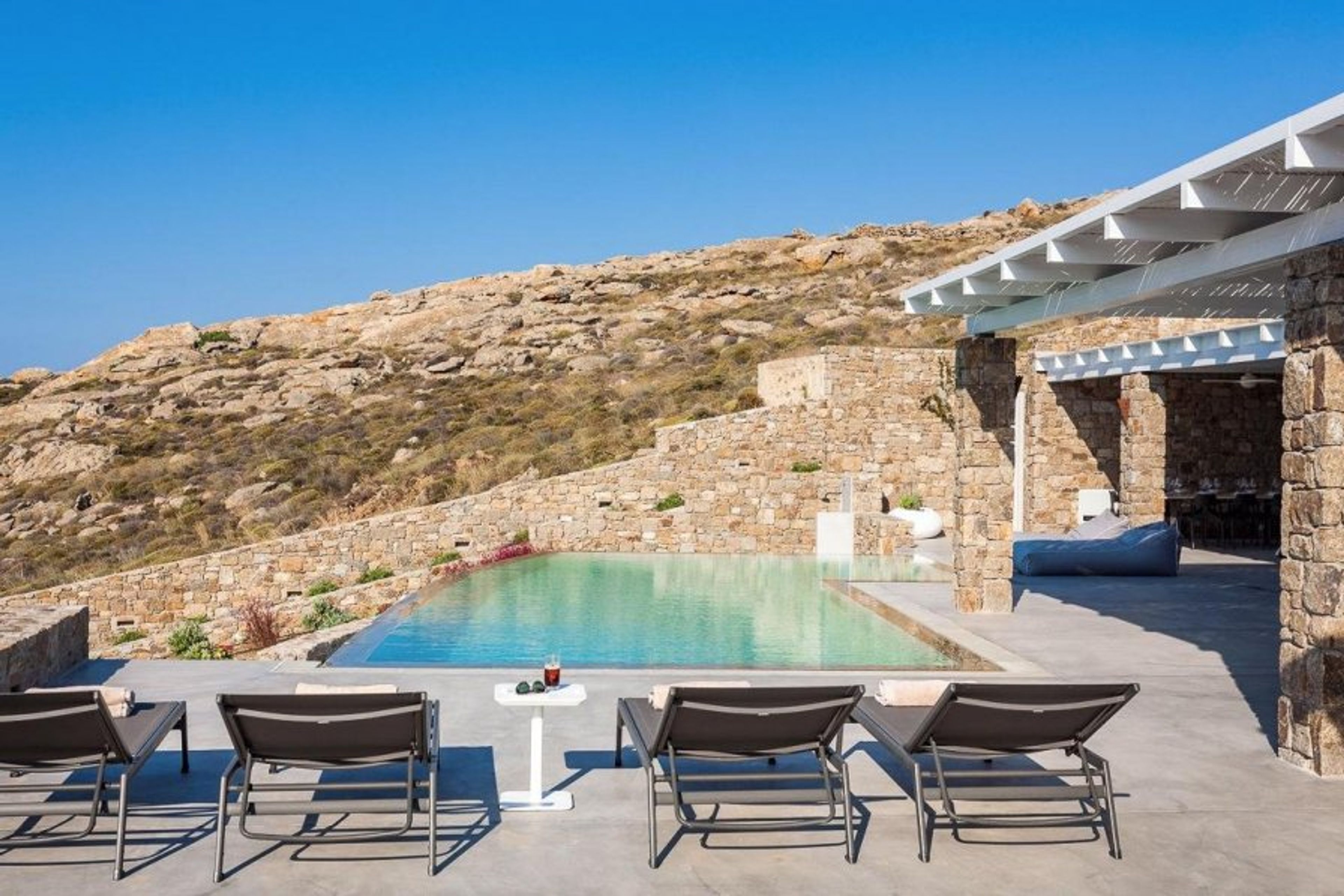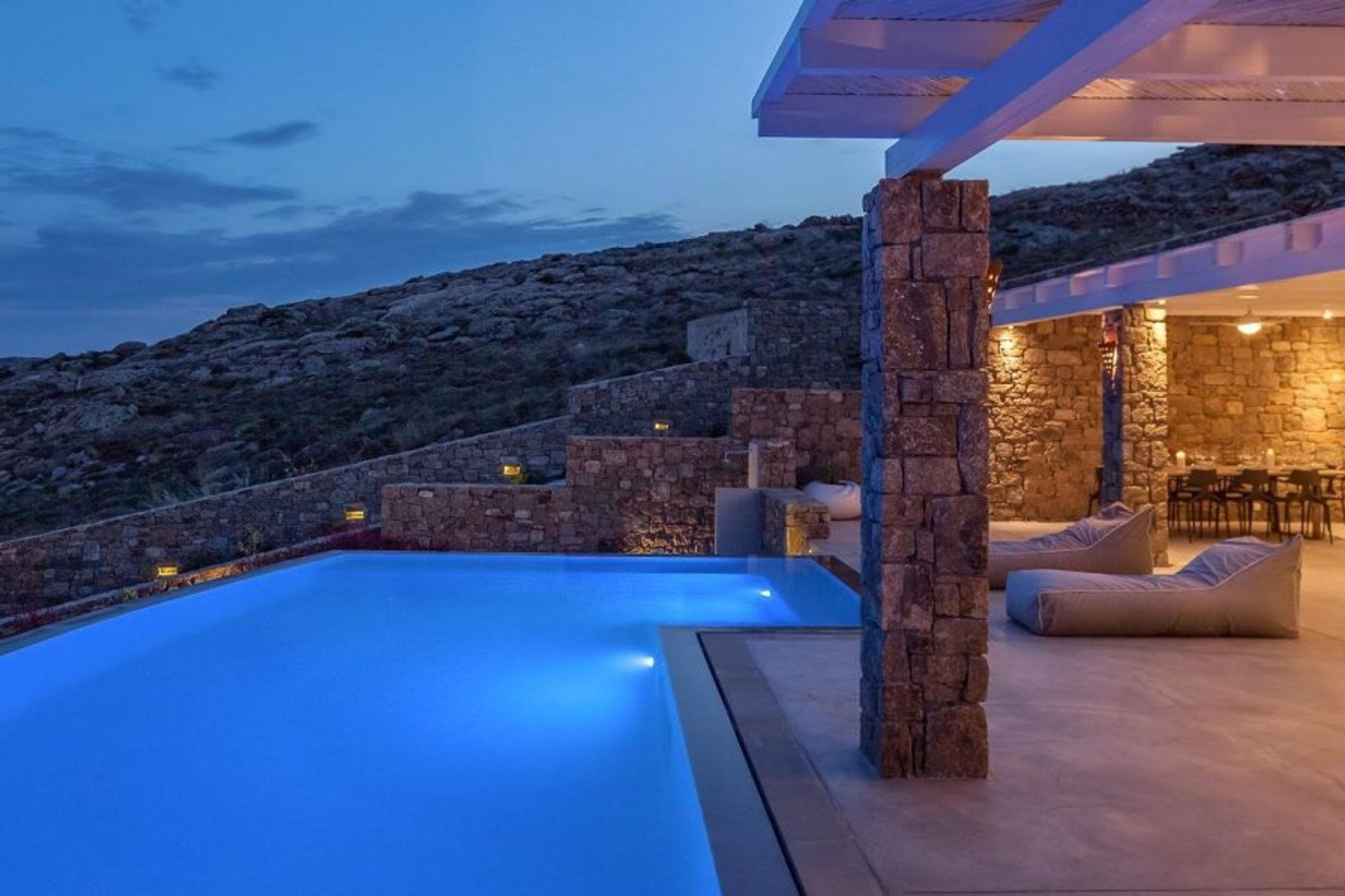 The home is incredibly comfortable and opulent with a minimalist design, using warm honey-colored stone and classic Mykonian architecture in a fully modern approach.