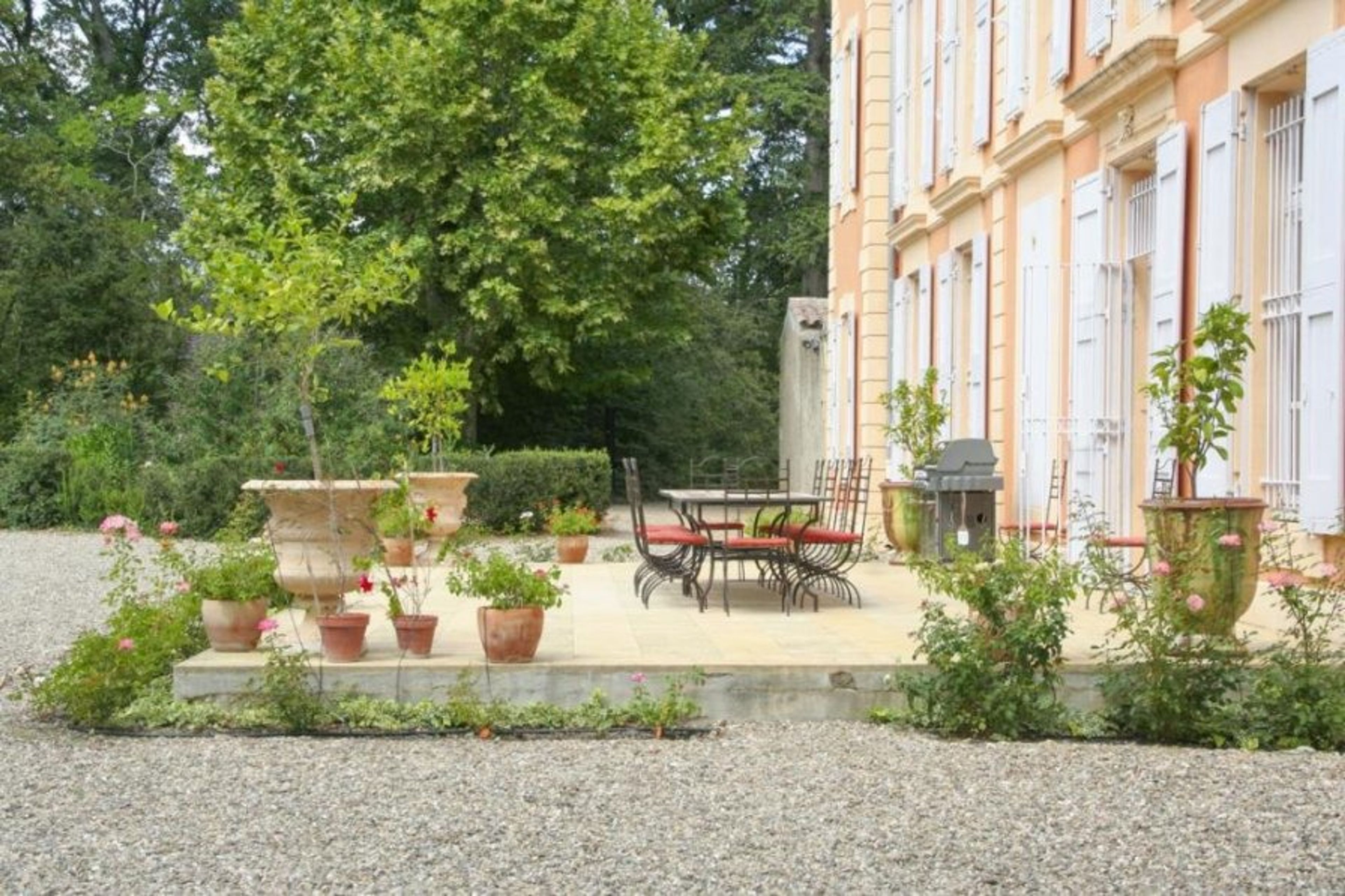 In the elegant dining room has an ornamental fireplace centre-piece and an 18th century hand-basin in Caunes marble where dinner can be eaten facing the park.