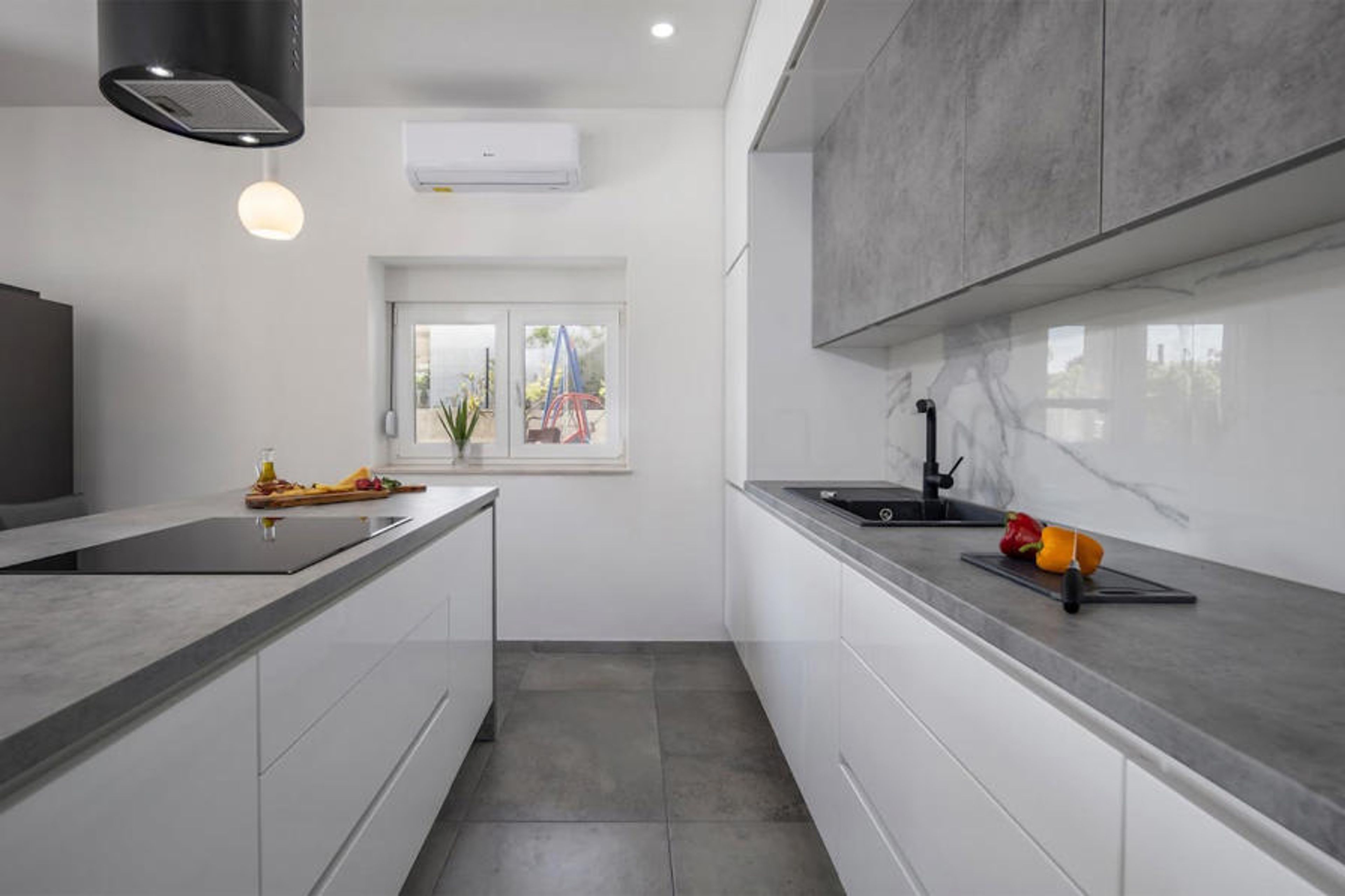 With its bright rooms and modern furnishings in subtle colors, the house is the ideal setting for a great time with the family in an exclusive setting. Make yourself comfortable on the sofa in the living room after a wonderful day of vacation, play games in the activity room, eat together and review the experience together in the evening.