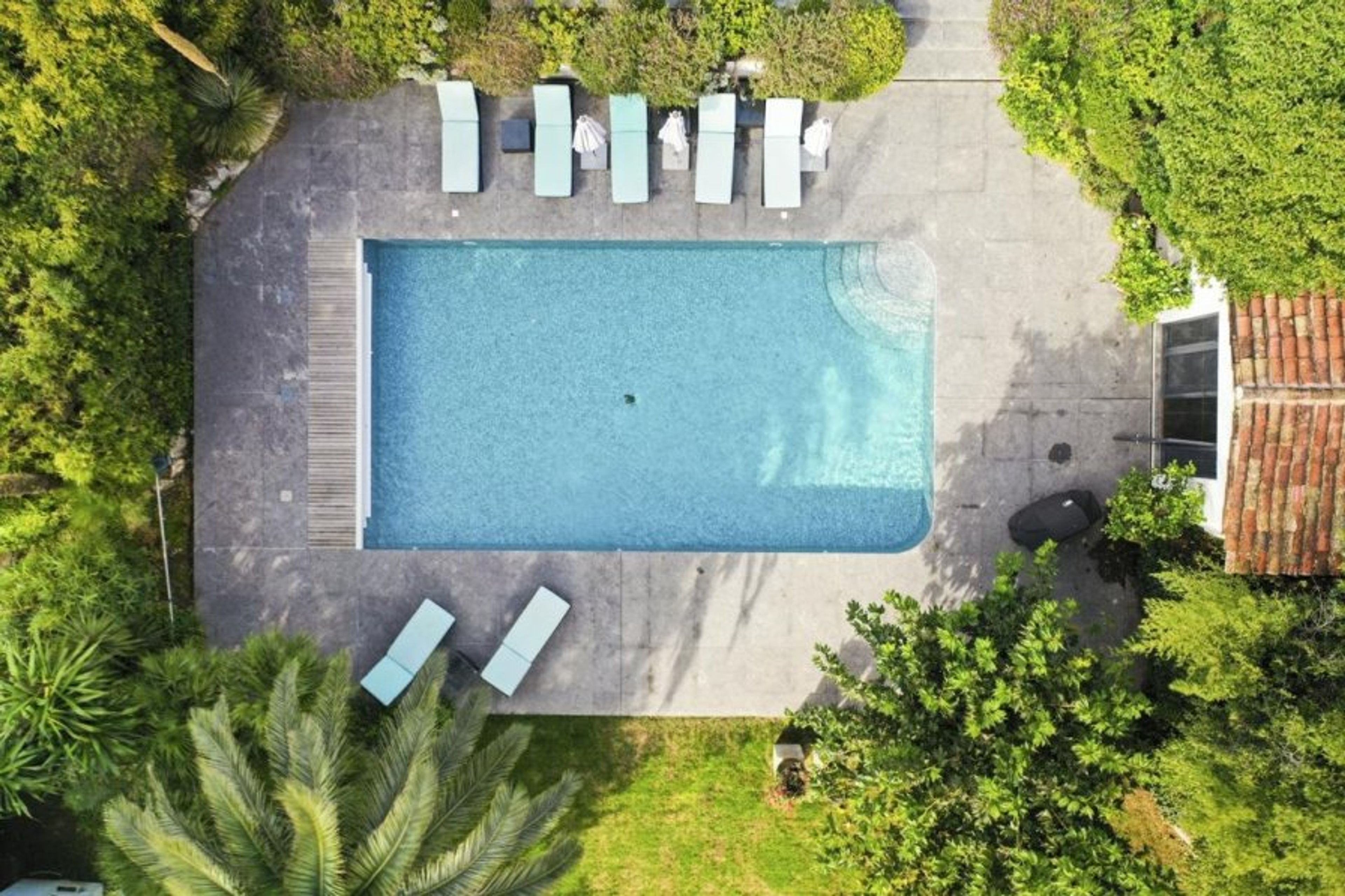 It is a beautiful setting for al fresco dining, swimming in the inviting pool, or lounging on the gorgeous terrace.