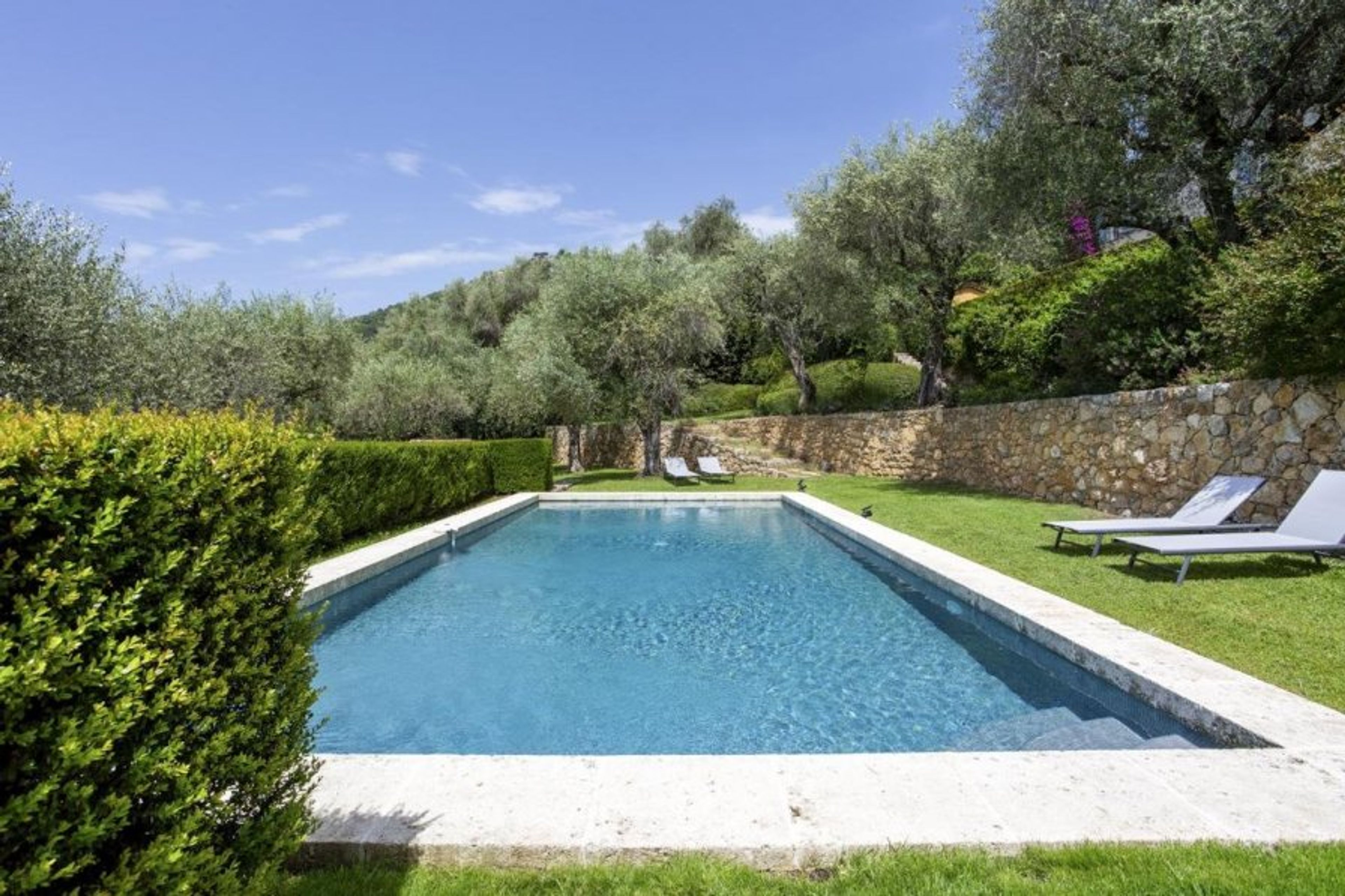 Perched on a terraced hillside of olive trees, close to an enchanting village much loved by artists, the villa enjoys the most magical setting in the Côte d'Azur hinterland near Grasse.