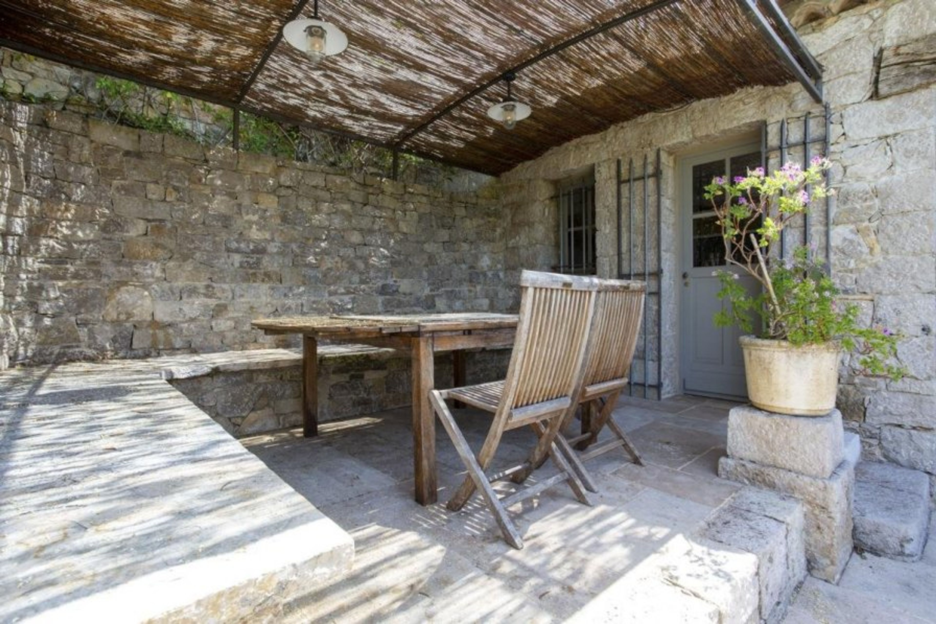 Feel the historic charm of this gorgeous abode which offers beautiful accommodation for twelve guests. The 19th century house is a delight with pretty blue shuttered windows and south-facing aspect. Step inside and it’s just as lovely with carefully selected antique furnishings and characterful features alongside modern comforts such as a sound system, cable TV and a wonderfully equipped country kitchen. Two of the doubles are en suite, including the romantic master bedroom, whilst the two bedrooms on the top floor share a beautifully decorated bathroom. Downstairs, French windows lead out to a stone terrace and a gorgeous pergola for tranquil breakfasts of coffee and croissants.