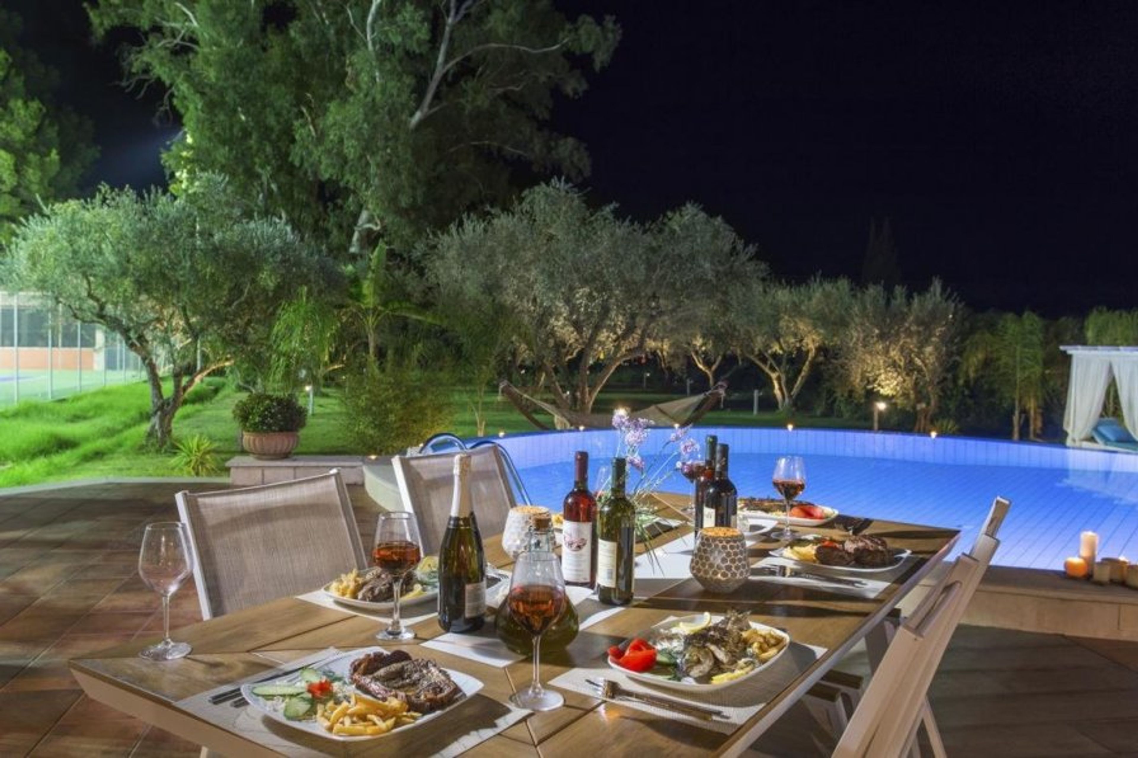 It features a magnificent 100 square metre infinity pool with open-air hydrotherapy as well as a shallow pool for kids. Luxury lounge chairs surround the pool, where you may relax, read, and top off your tan while on vacation. A wonderful view can be enjoyed while dining al fresco in the shade on the covered terrace. For delightful dinners around a gorgeous, hand-crafted wooden dining table, it has a built-in barbeque. You can enjoy stunning sunrises, colourful sunsets, and stargazing here together with the estate's enchanted ambiance. The shared tennis court has excellent lighting columns so you can play at any time of day, and there is equipment available. You are also free to use the villa's bicycles to travel along the 800-meter trail that winds through the entire vineyard for cycling and running. Playing on the lawns and gathering fruit from the orchard are two activities that kids really enjoy. In the vegetable garden, there are lovely, old olive trees as well as organic veggies. Wine tastings from the vineyard and olive oil samples from the estate's olive grove are also open to visitors.