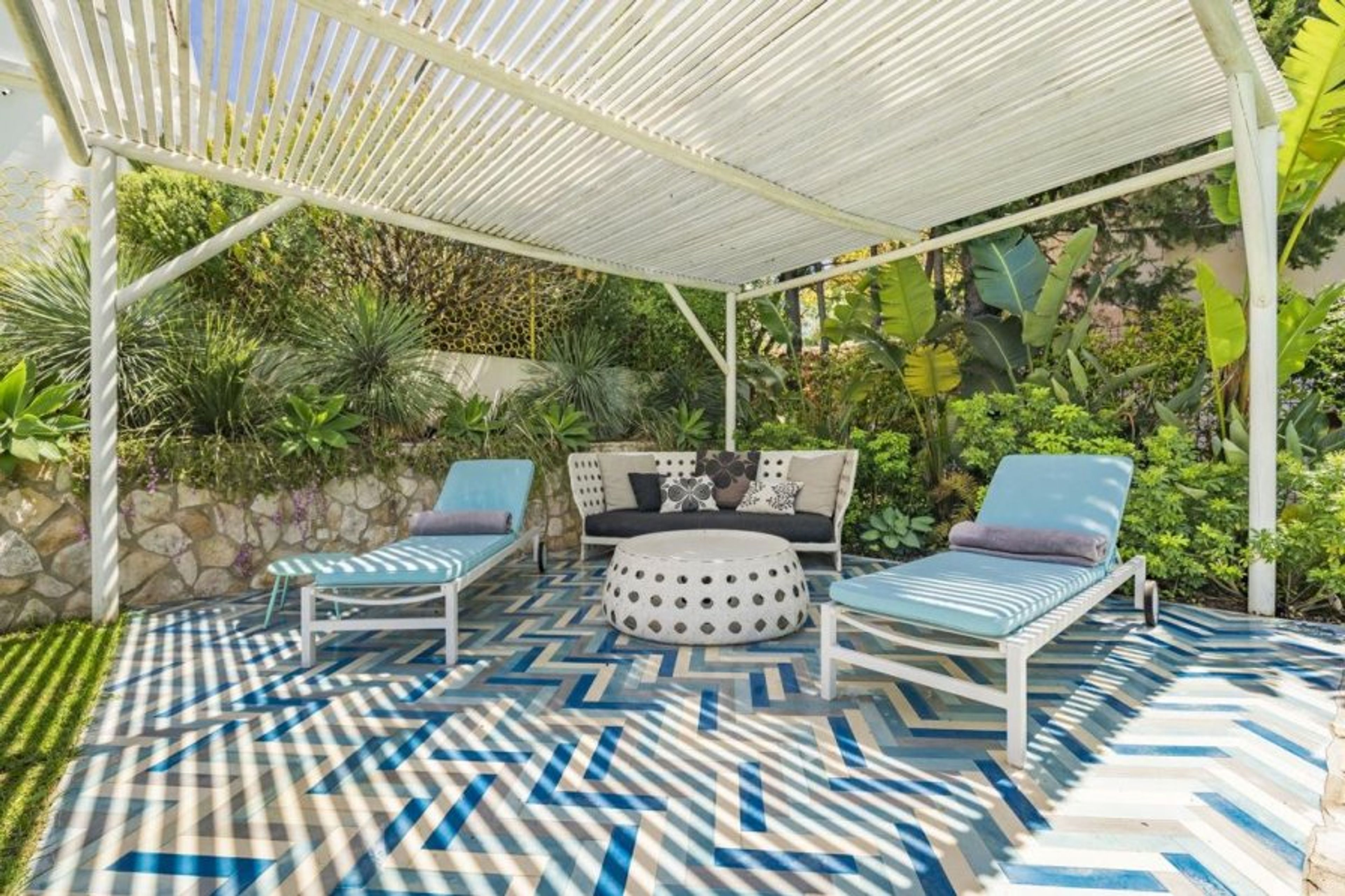 Relax in the shade of the al-fresco lounge overlooking the most glorious garden and swim in the tranquil swimming pool surrounded by Mediterranean plants, palms and olive trees. Enjoy a sundowner on the upper terrace as the sun sets to the west before heading inside to soak up your elegant surroundings.