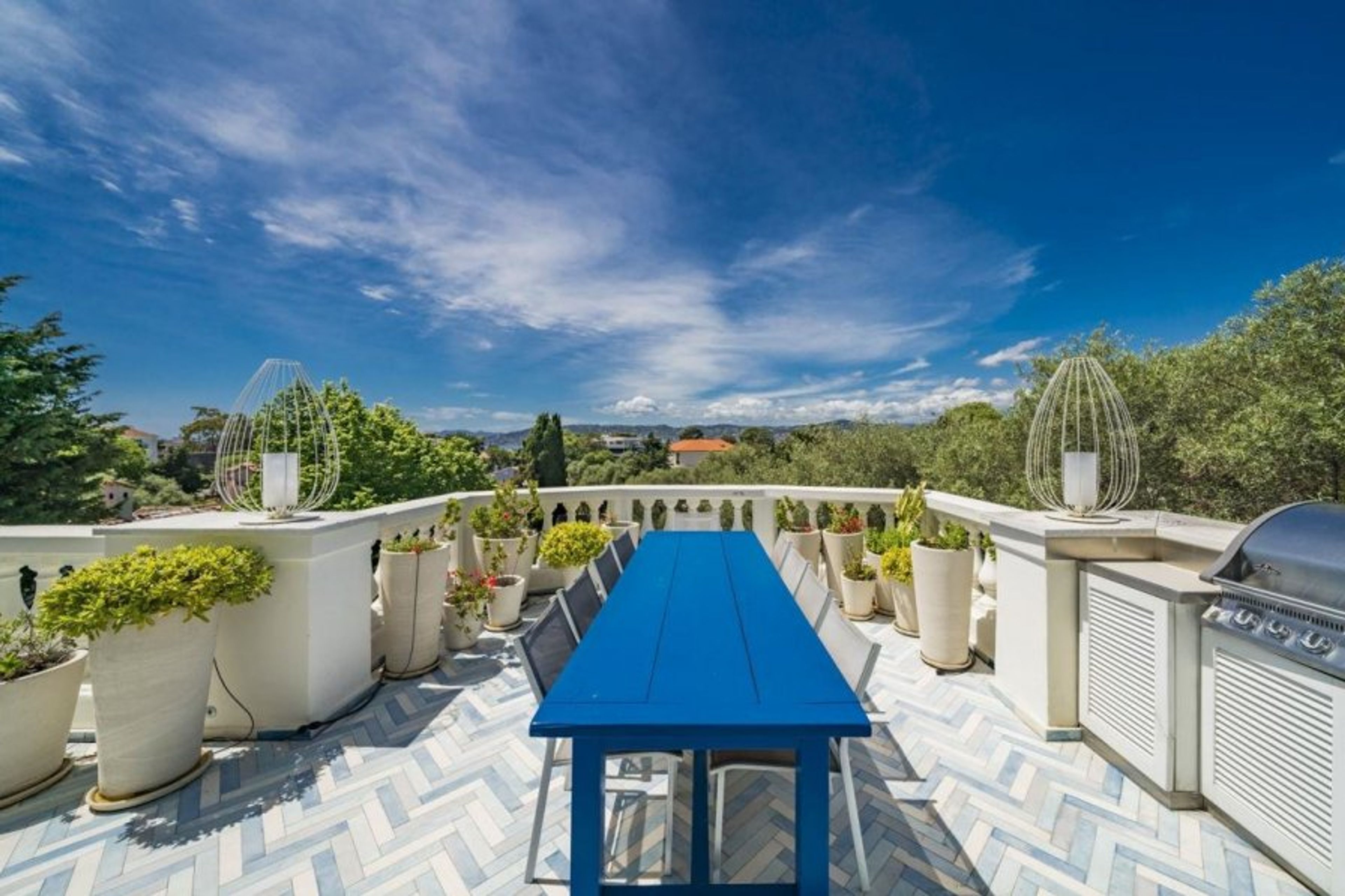 Reminiscent of La Belle Époque, the interiors have been gracefully designed with such characterful style alongside contemporary flair. The attention to detail is outstanding whether you are gazing towards the sea and mountains from the upper lounge and roof terrace or dining al-fresco on the beautifully tiled terrace with its smart barbecue.