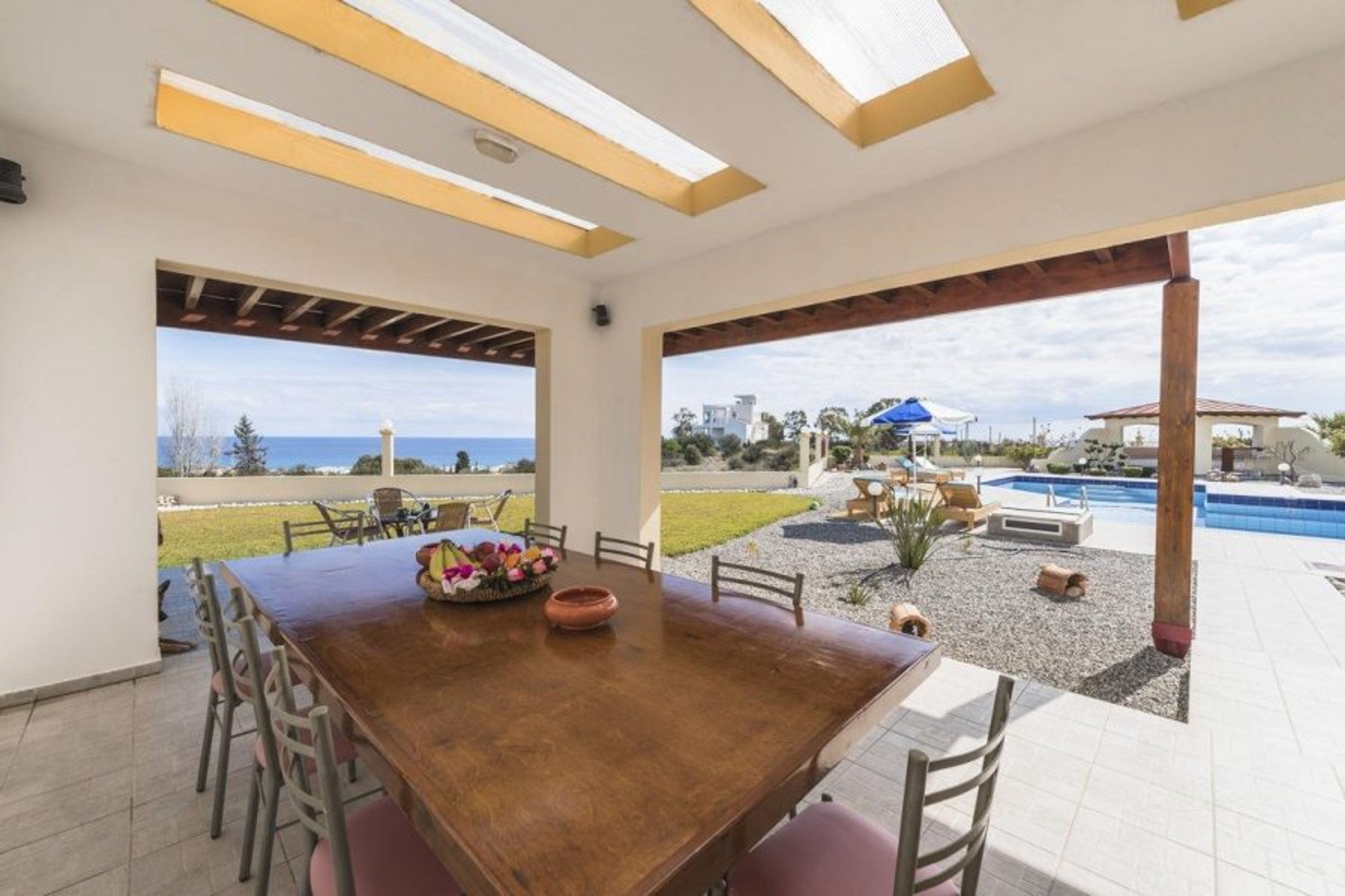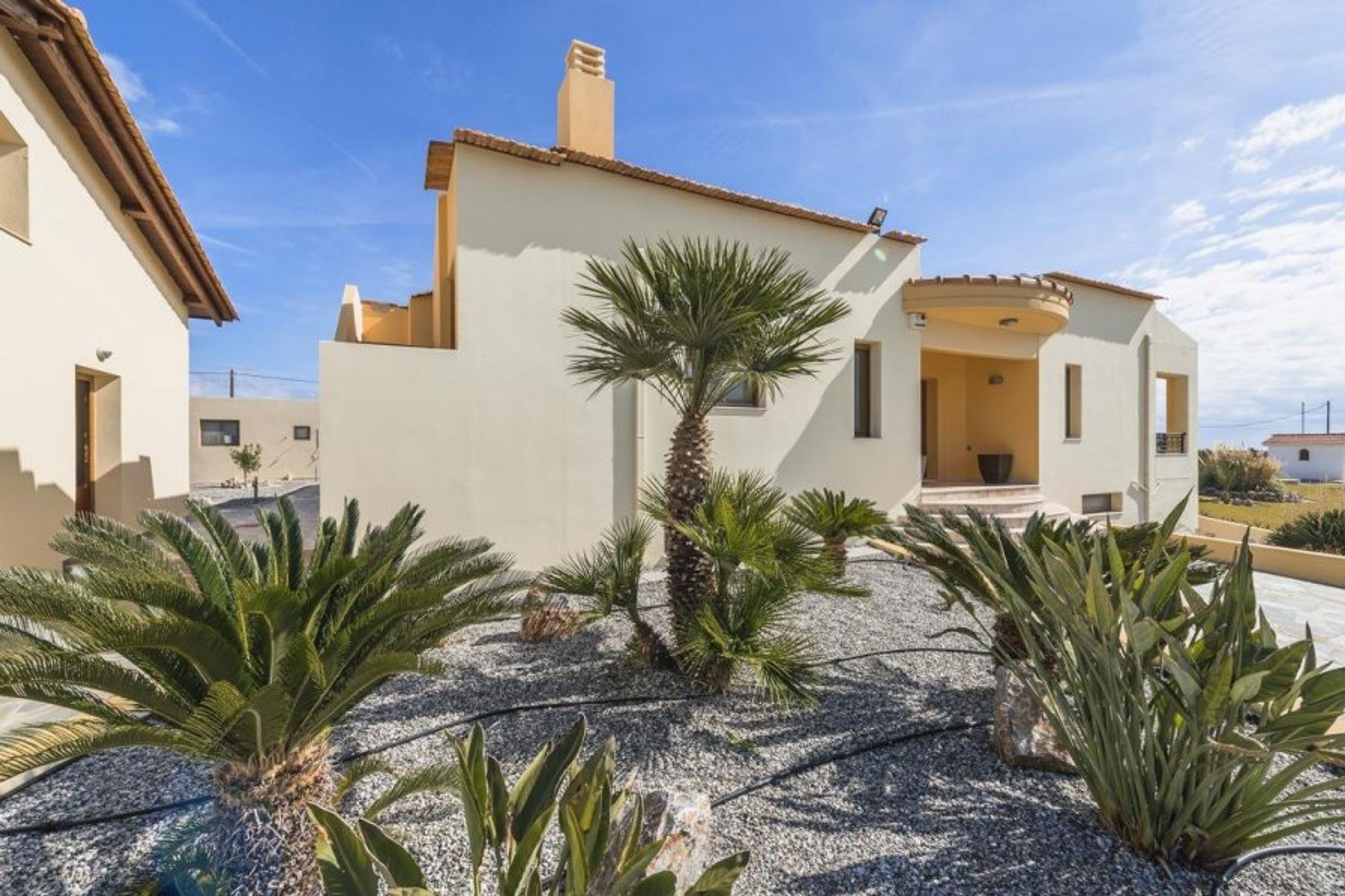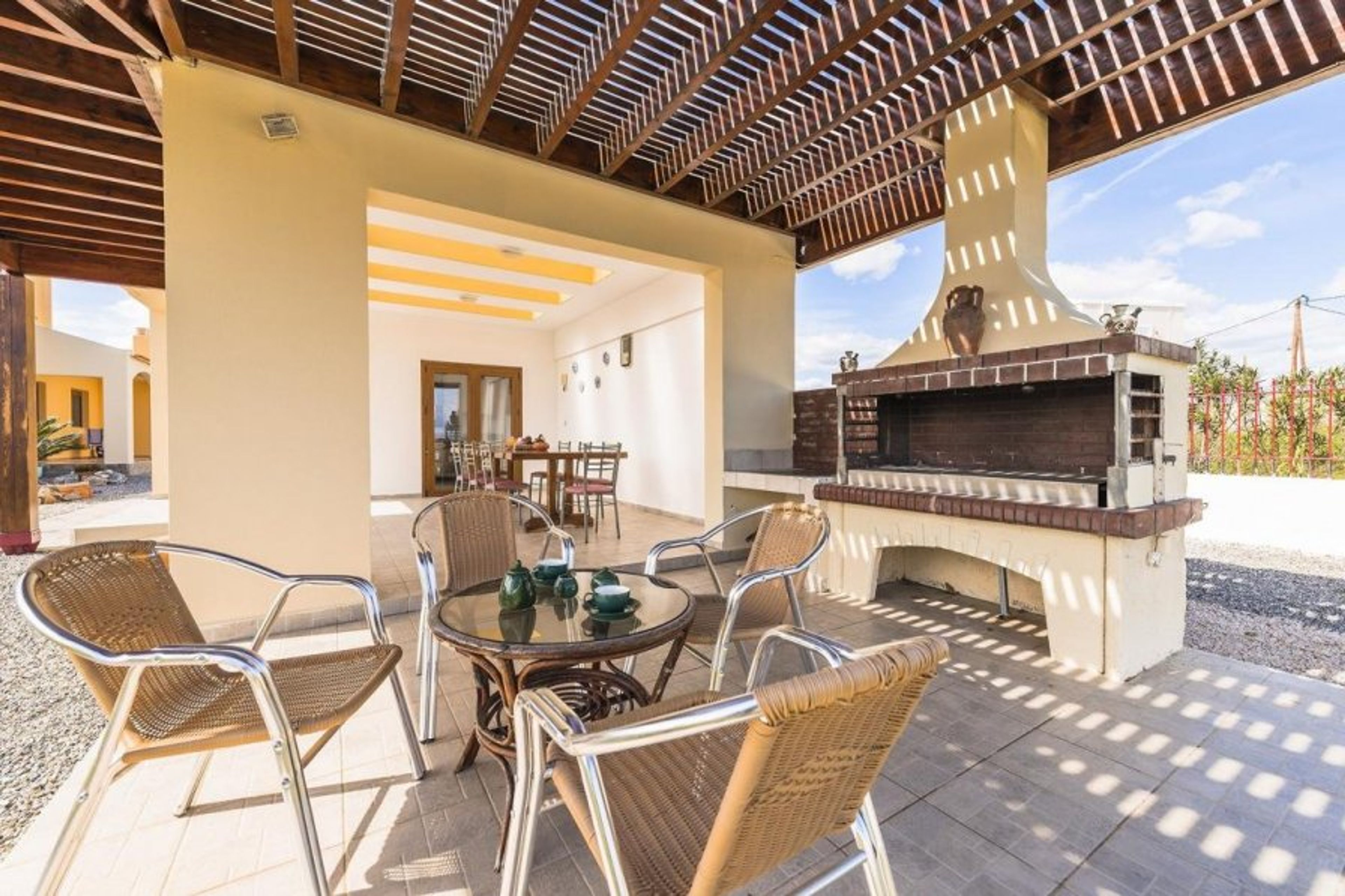 A large covered patio with a dining table and chairs is close to a magnificent barbeque, which is ideal for entertaining any guests. The surrounding hills and seaside vistas will undoubtedly enhance the event. The villa has a genuine Greek flavour thanks to the little chapel on the grounds.