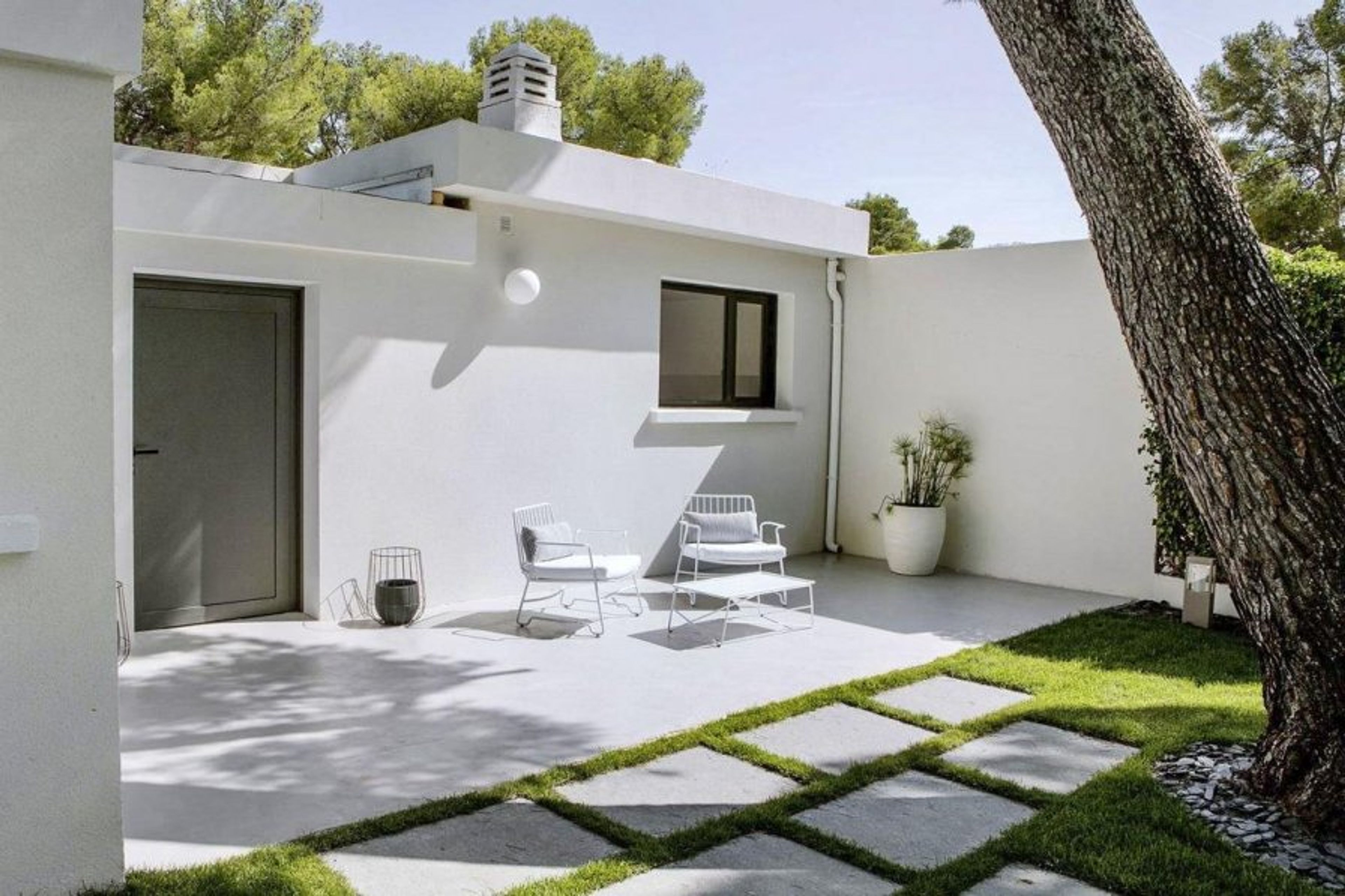 Nestled amongst mature pine trees, close to a few other homes, you will discover this gorgeous villa. With striking, minimal lines, the whitewashed home really stands out from the crowd. Inside, the house has been beautifully decorated in a contemporary style and is filled with natural light and well-thought-out furnishings.