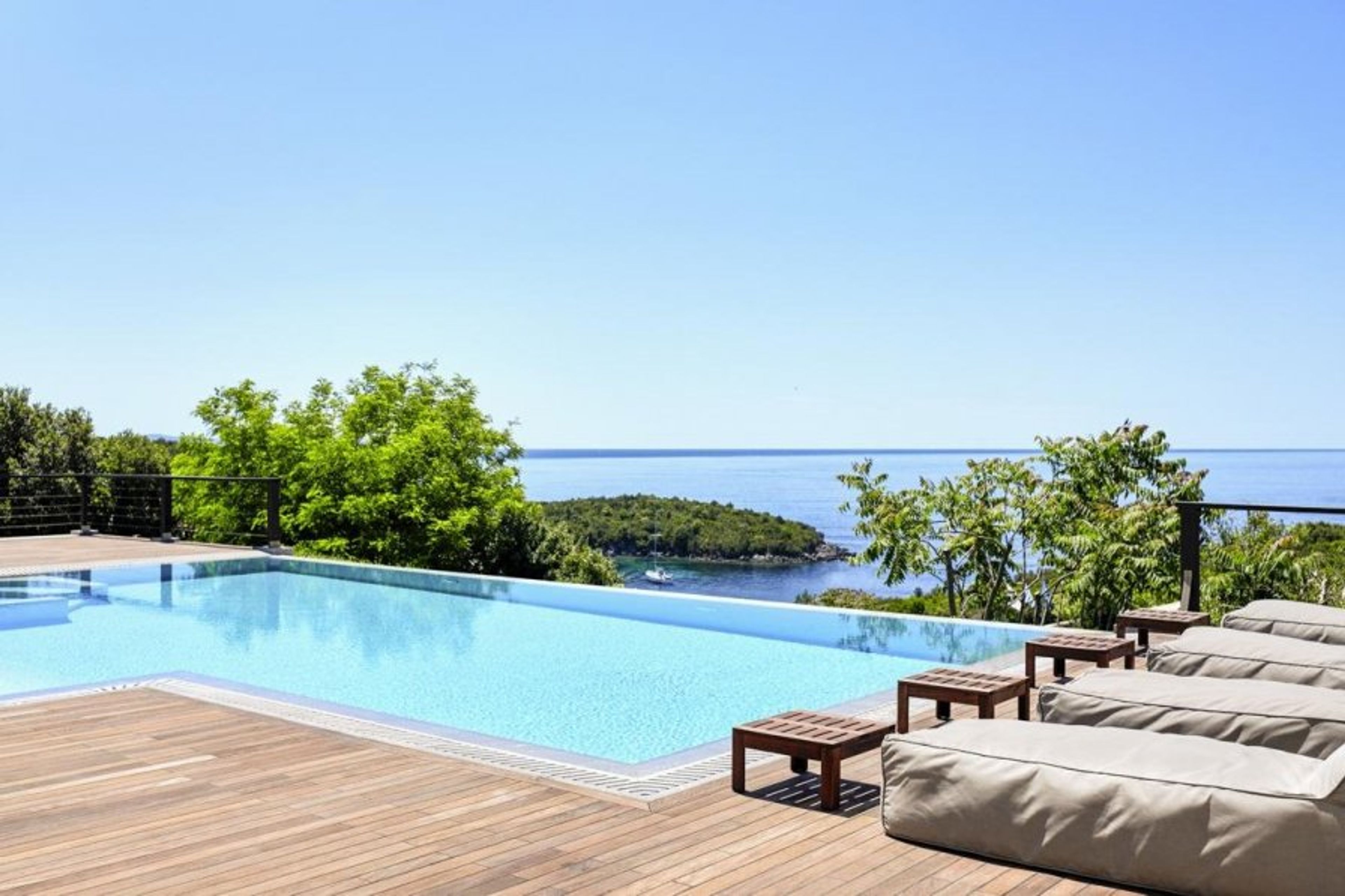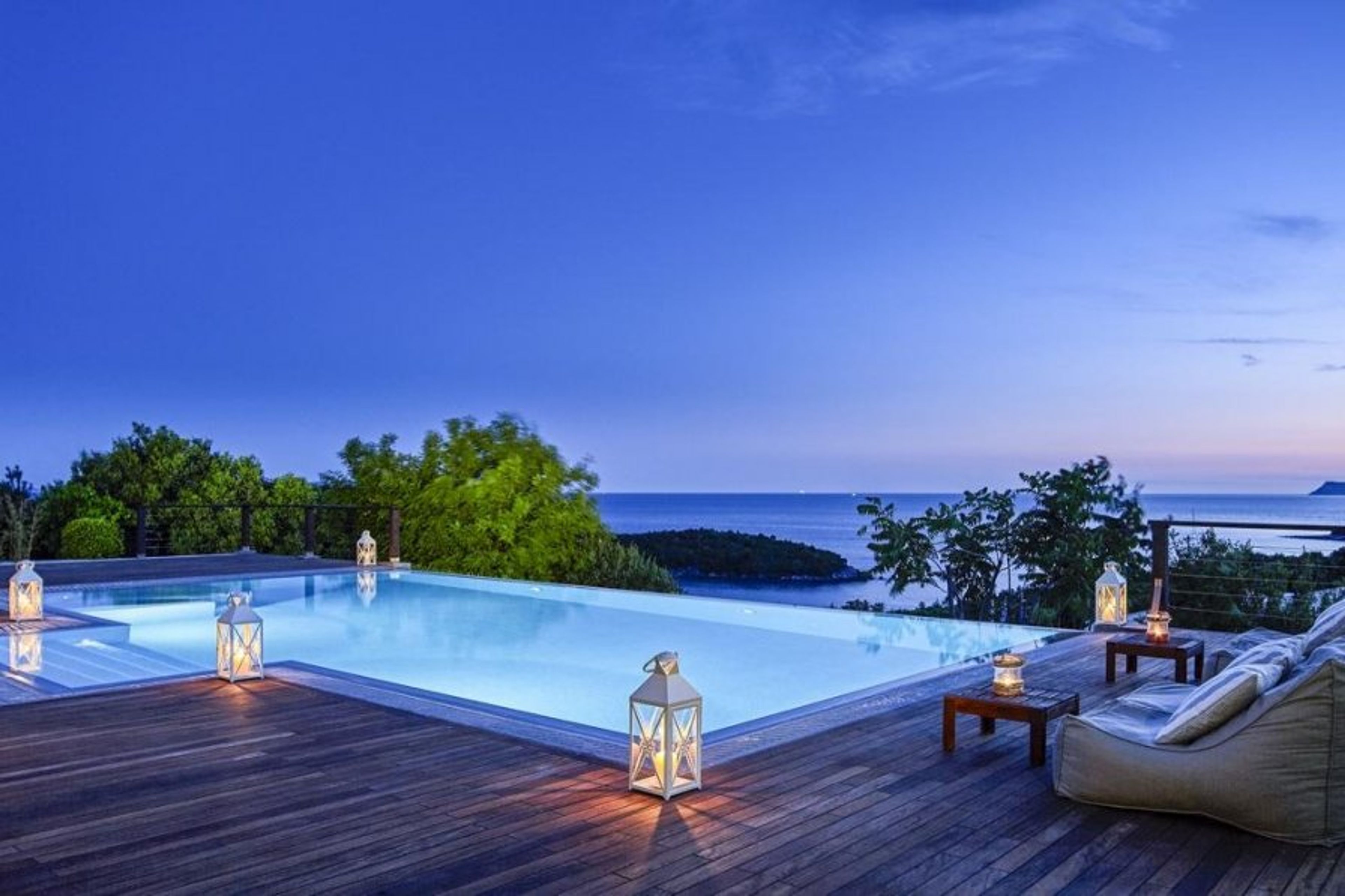 The five-bedroom Villa, which is perched on a quiet, vegetated slope, offers breathtaking views of the Sivota region of the Ionian Sea.
