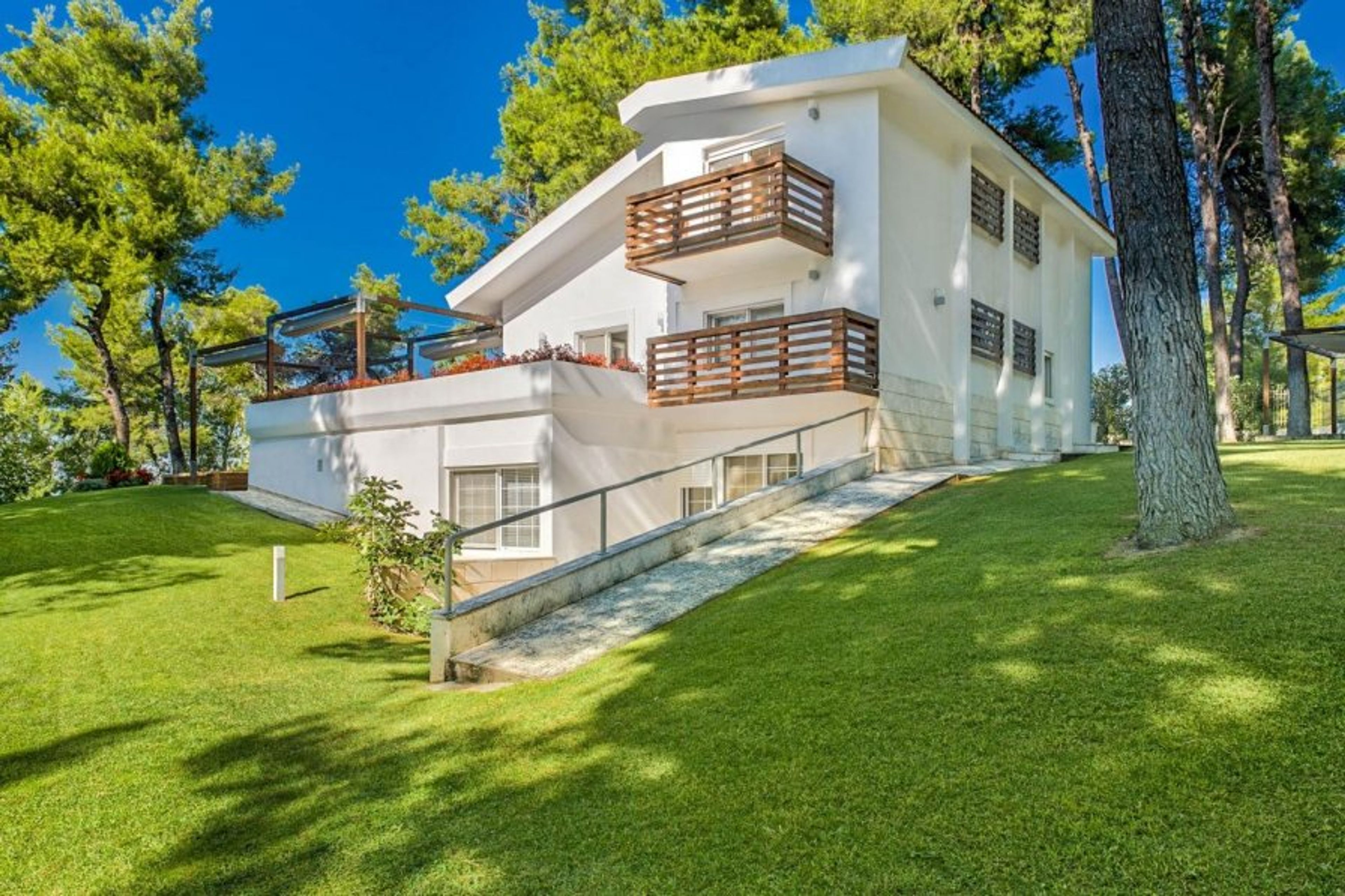 The villa is located 65 kilometres from Thessaloniki International Airport and one mile from the nearest beach and the prestigious Sani Marina.