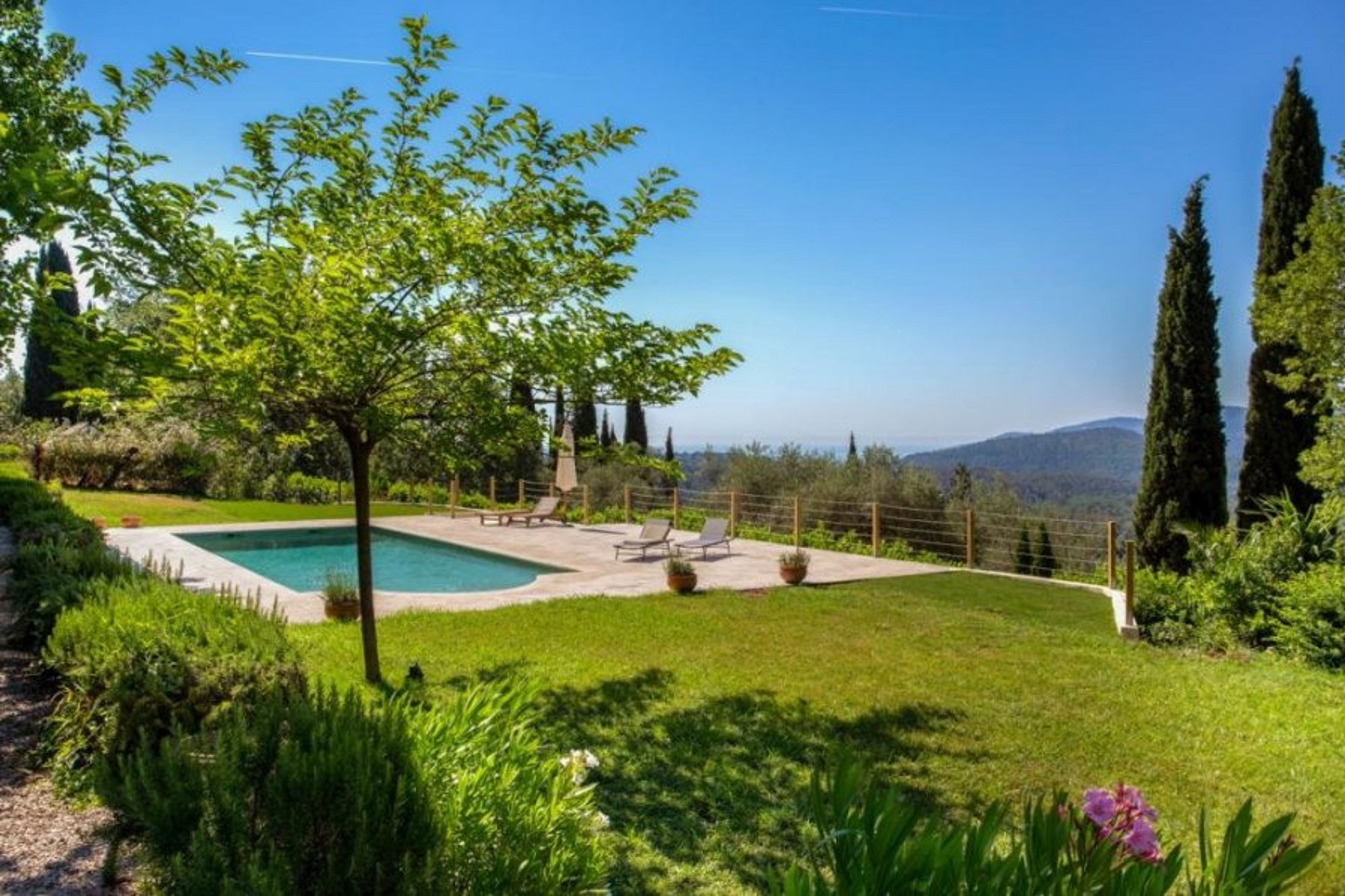 The graceful lounge is so spacious with historic books and antique pieces whilst French doors open to the upper terrace for the most glorious views as far as the Mediterranean.