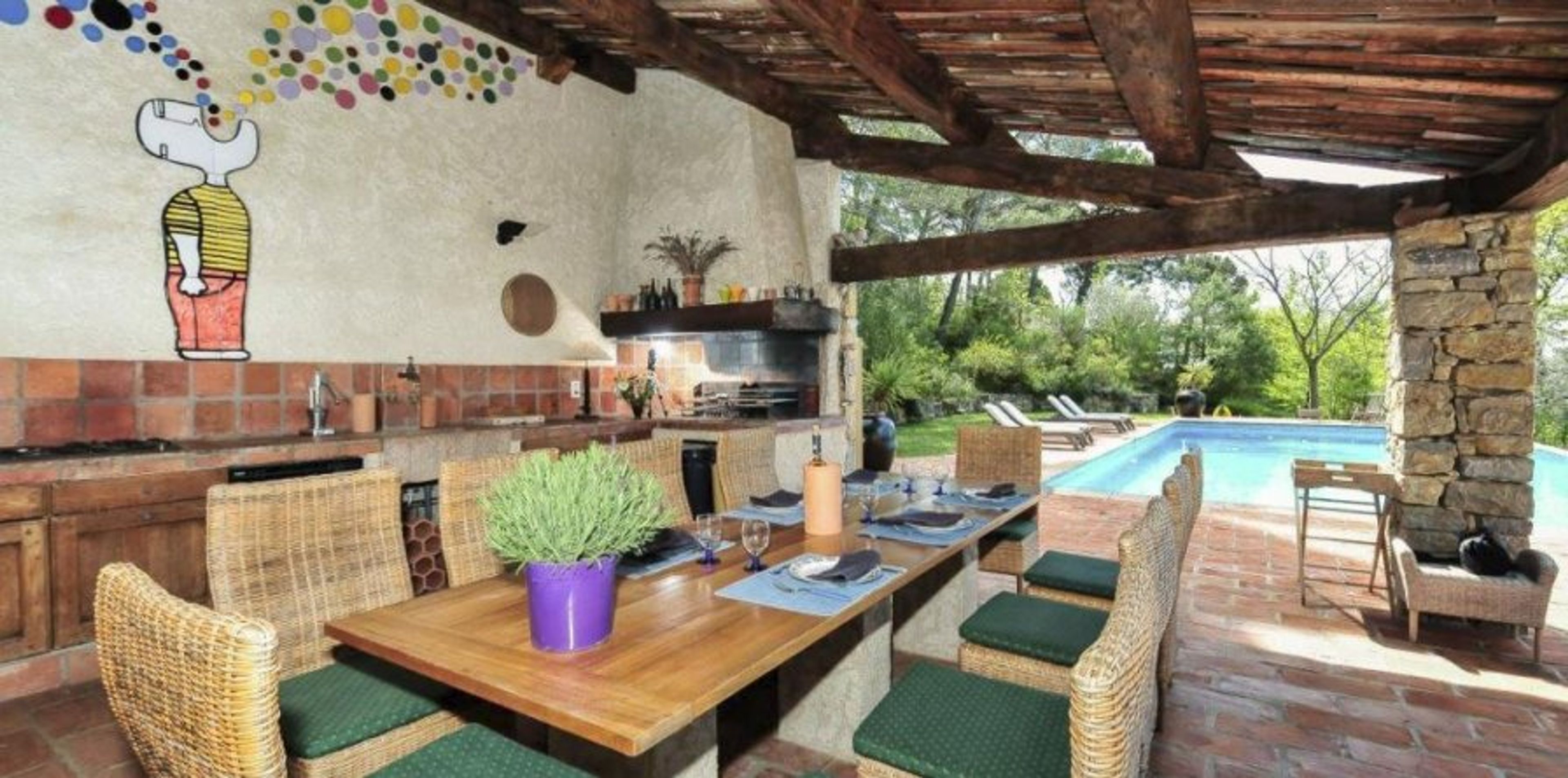 This home, which Cosmic Villas is happy to offer, is a cozy and quaint Provençal farmhouse with four bedrooms, a welcoming living area, and a sizable garden with a swimming pool.